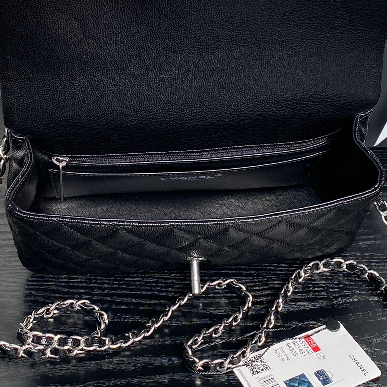 Tags: Black Grained Calfskin Bag, Chanel CF Mini Bag, Luxury Mini Handbag, Silver Hardware Chanel Bag, Top Handle Designer Bag
