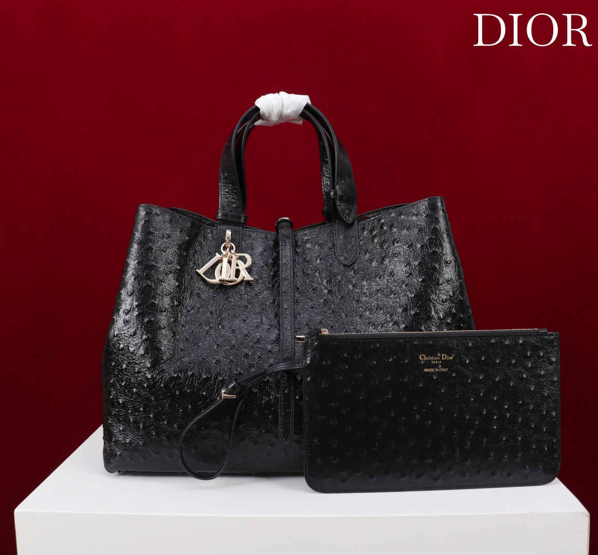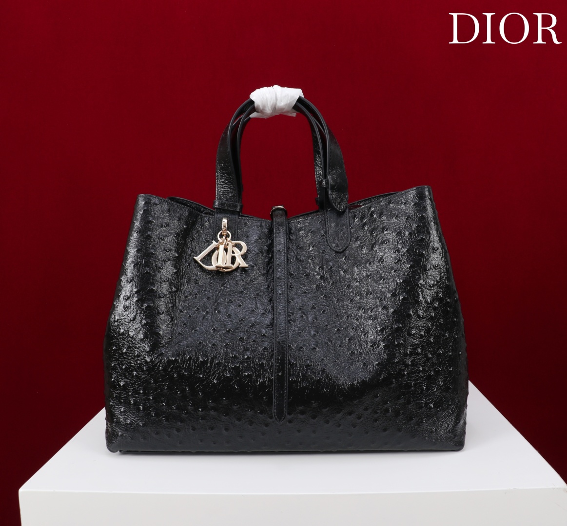 Tags: Designer Tote Bag, Dior Toujours Bag, Large Leather Handbag, Luxury Tote Bag, Ostrich Leather Tote