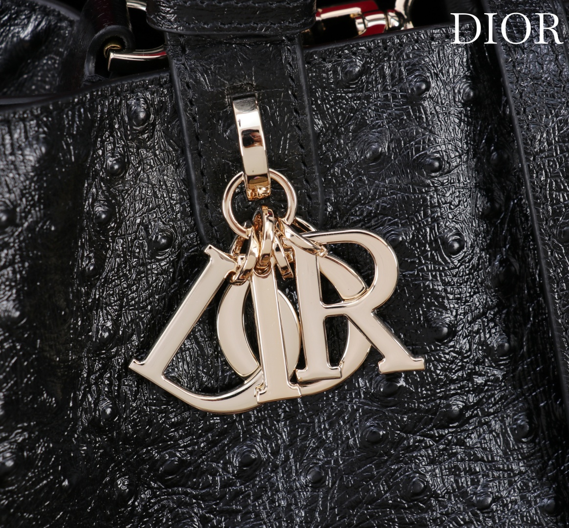 - Details: D.I.O.R. charms, adjustable handles, removable pouch
