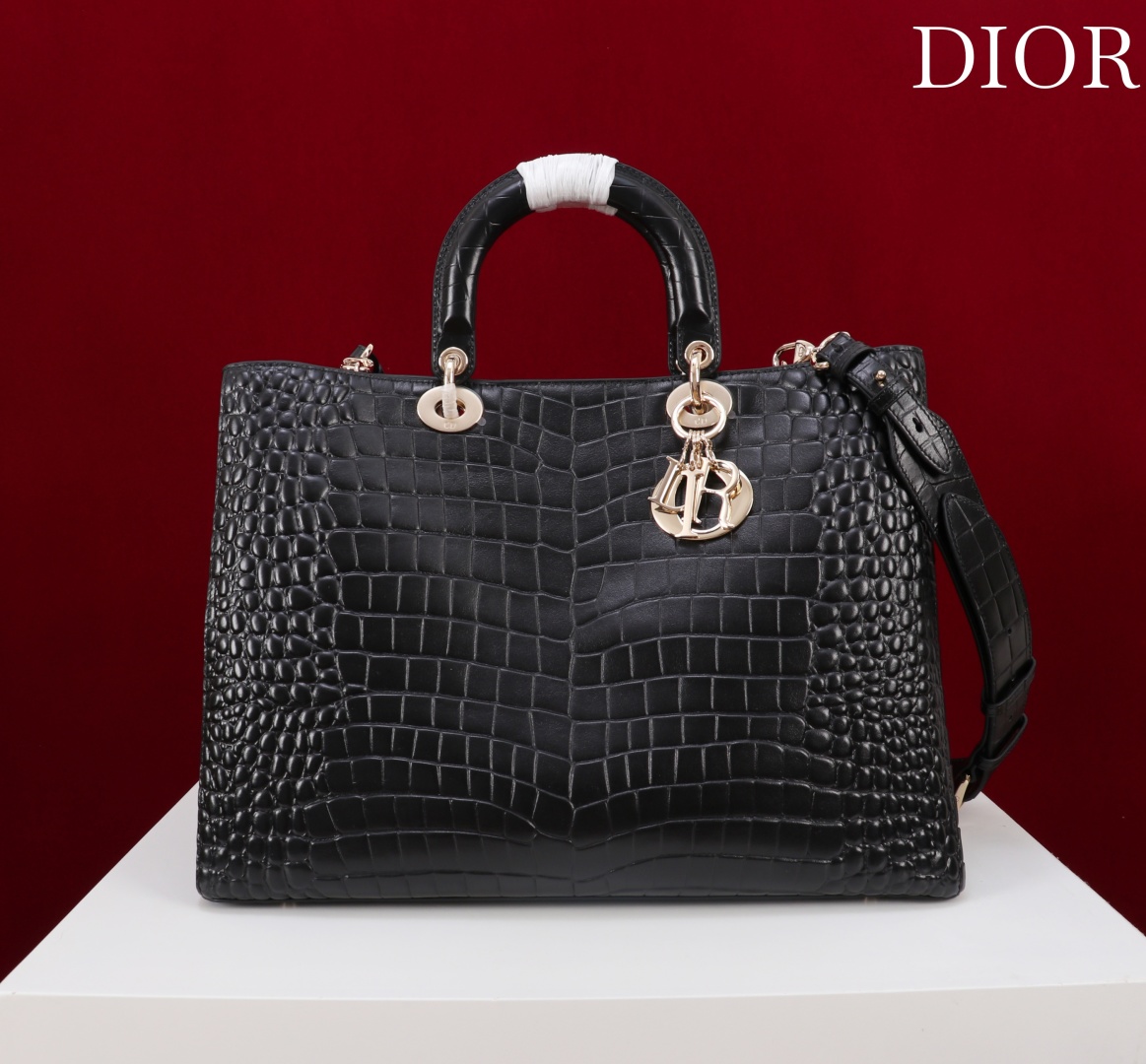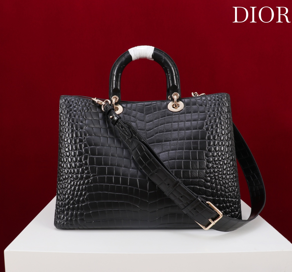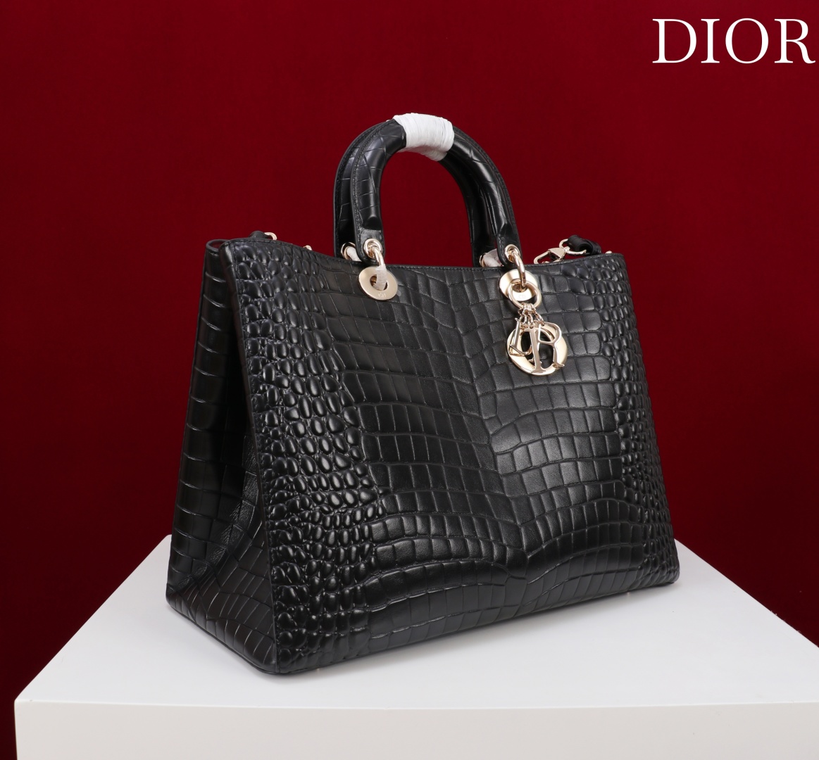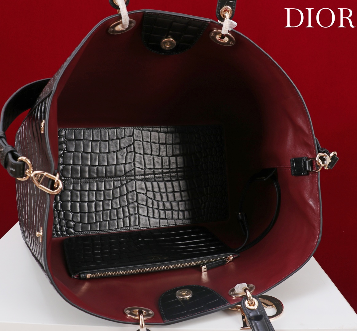Tags: Black Leather Bag, Crocodile Embossed Handbag, Designer Tote Bag, Dior Toujours Bag, Large Handbag, Luxury Handbag