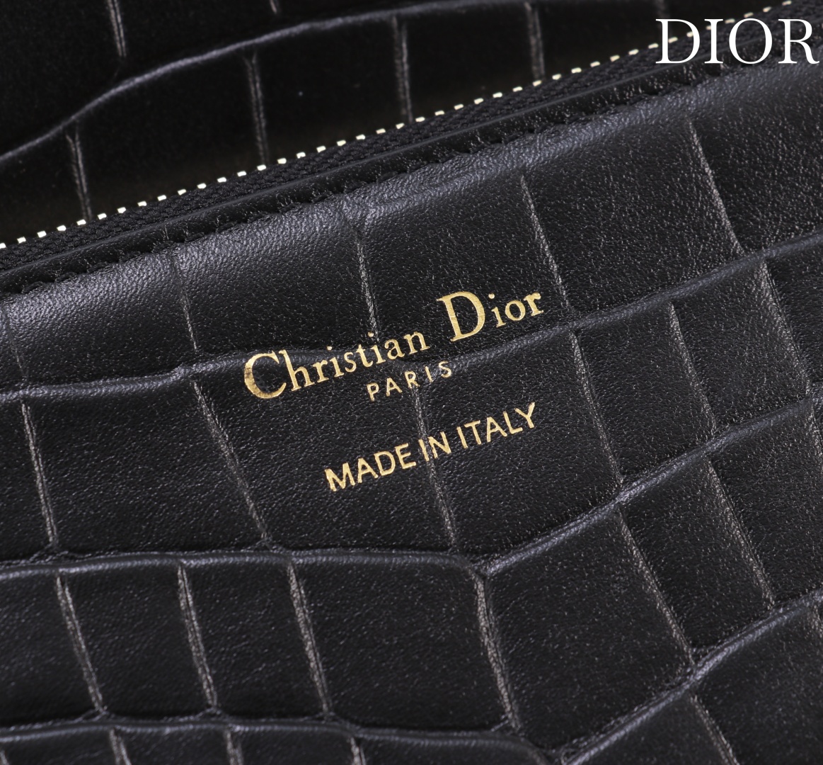 Dior Toujours Large Handbag in Black Crocodile Embossed Leather with Pouch
