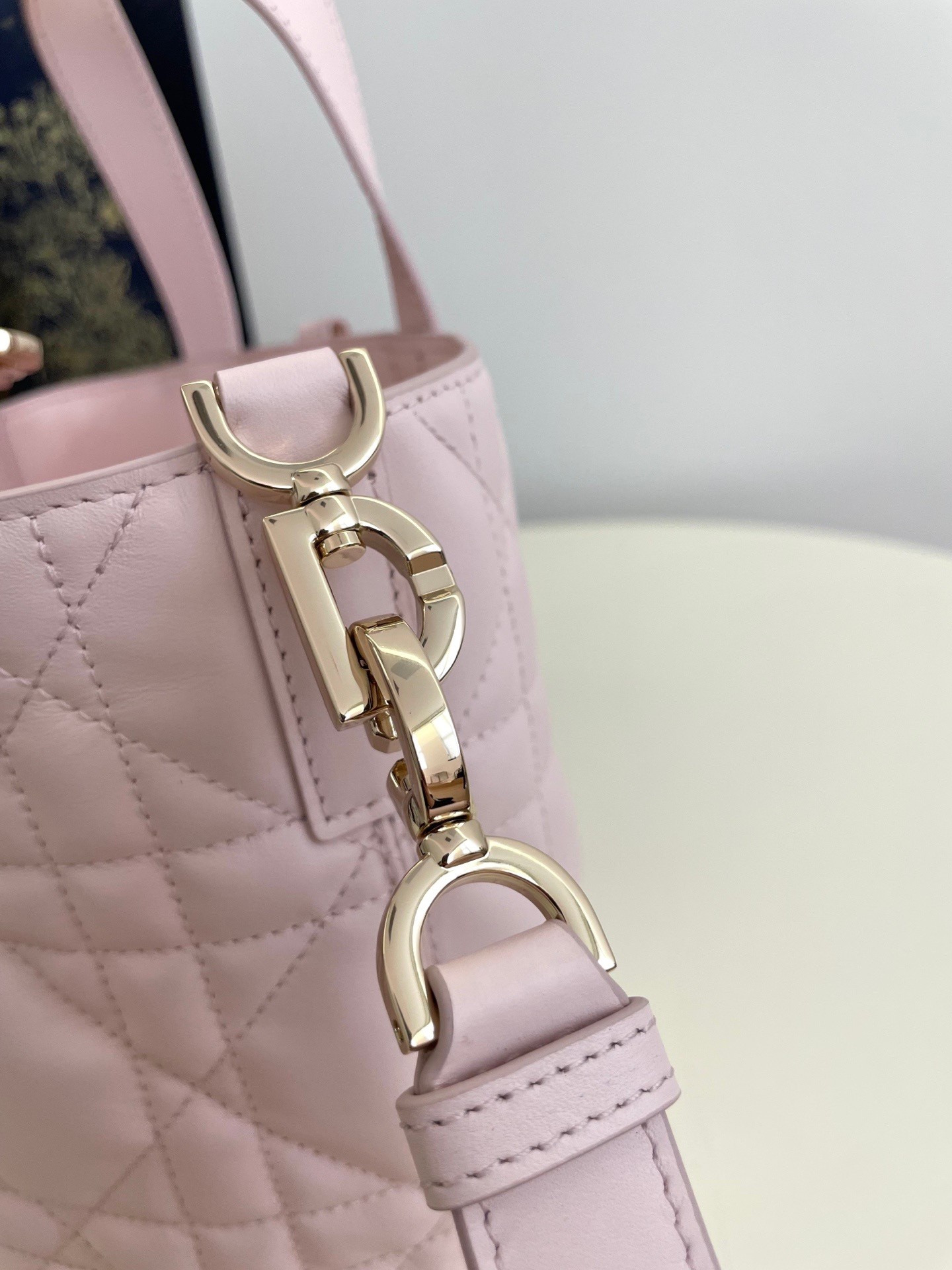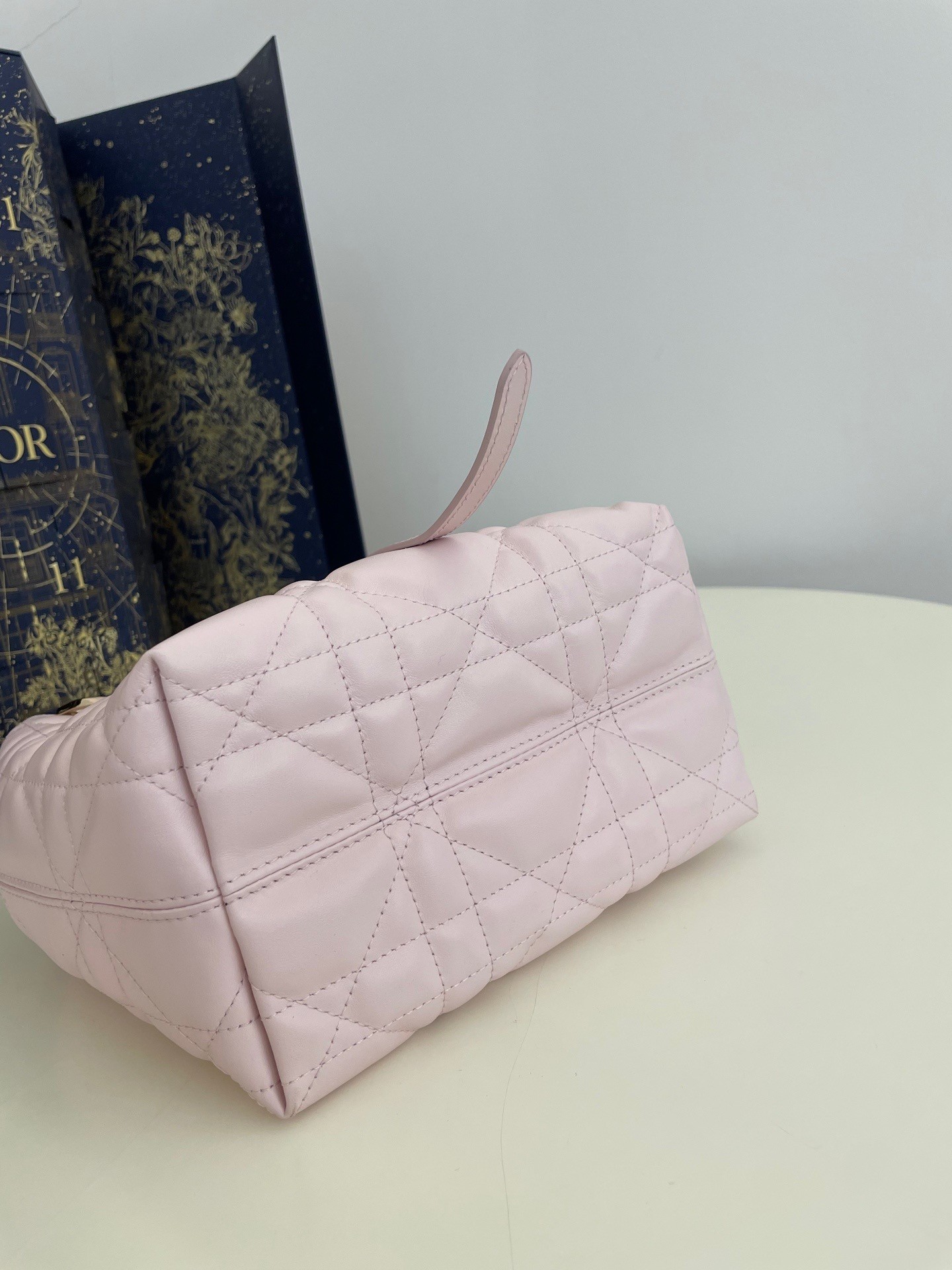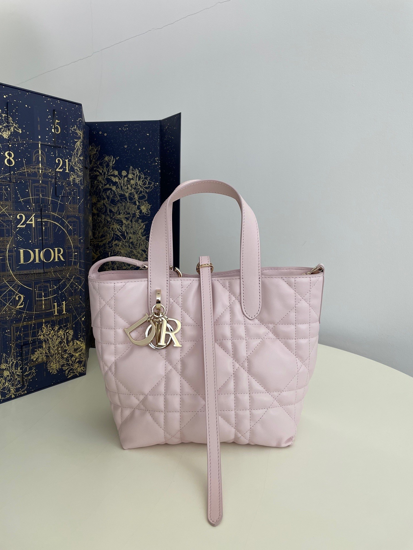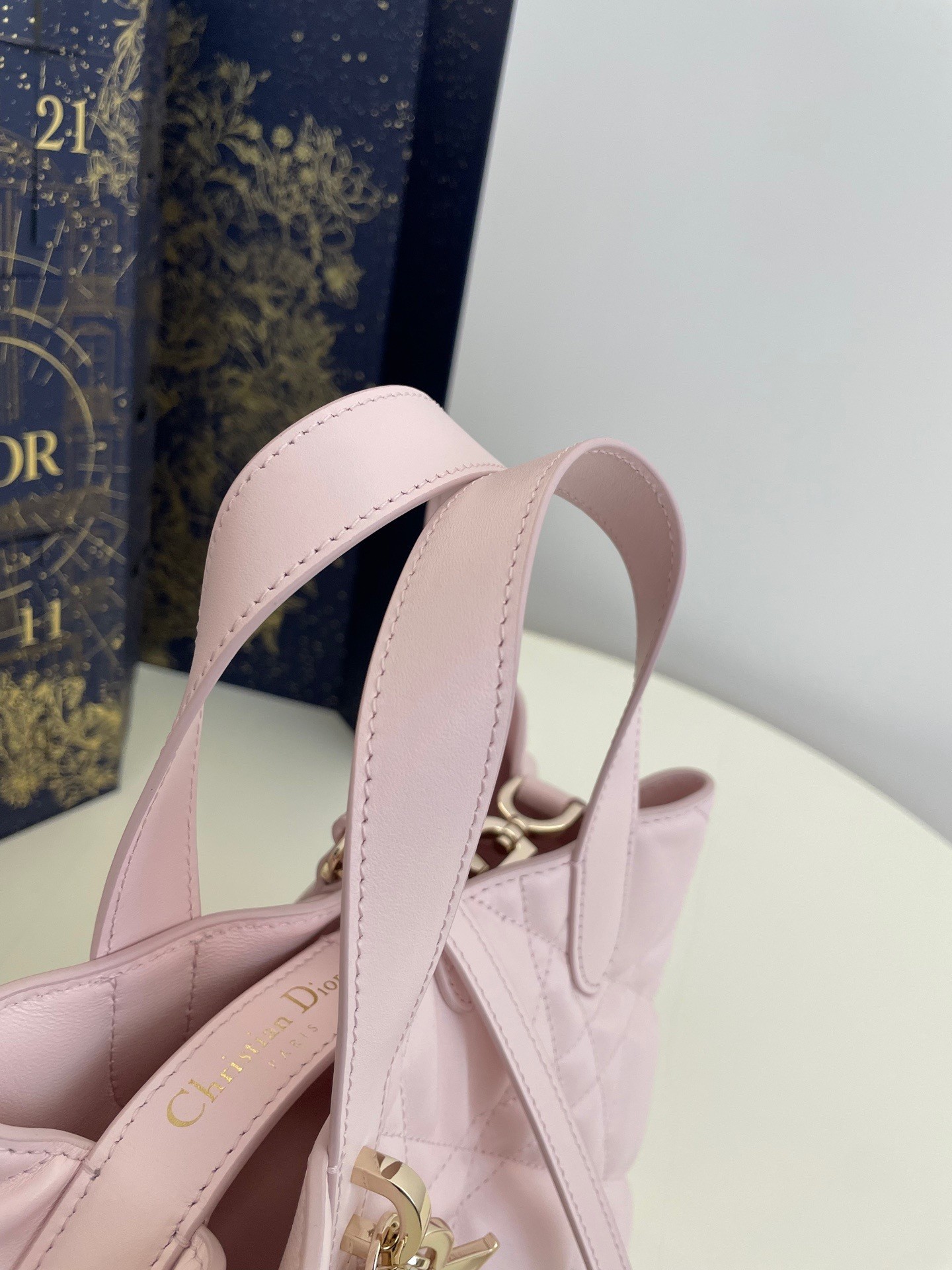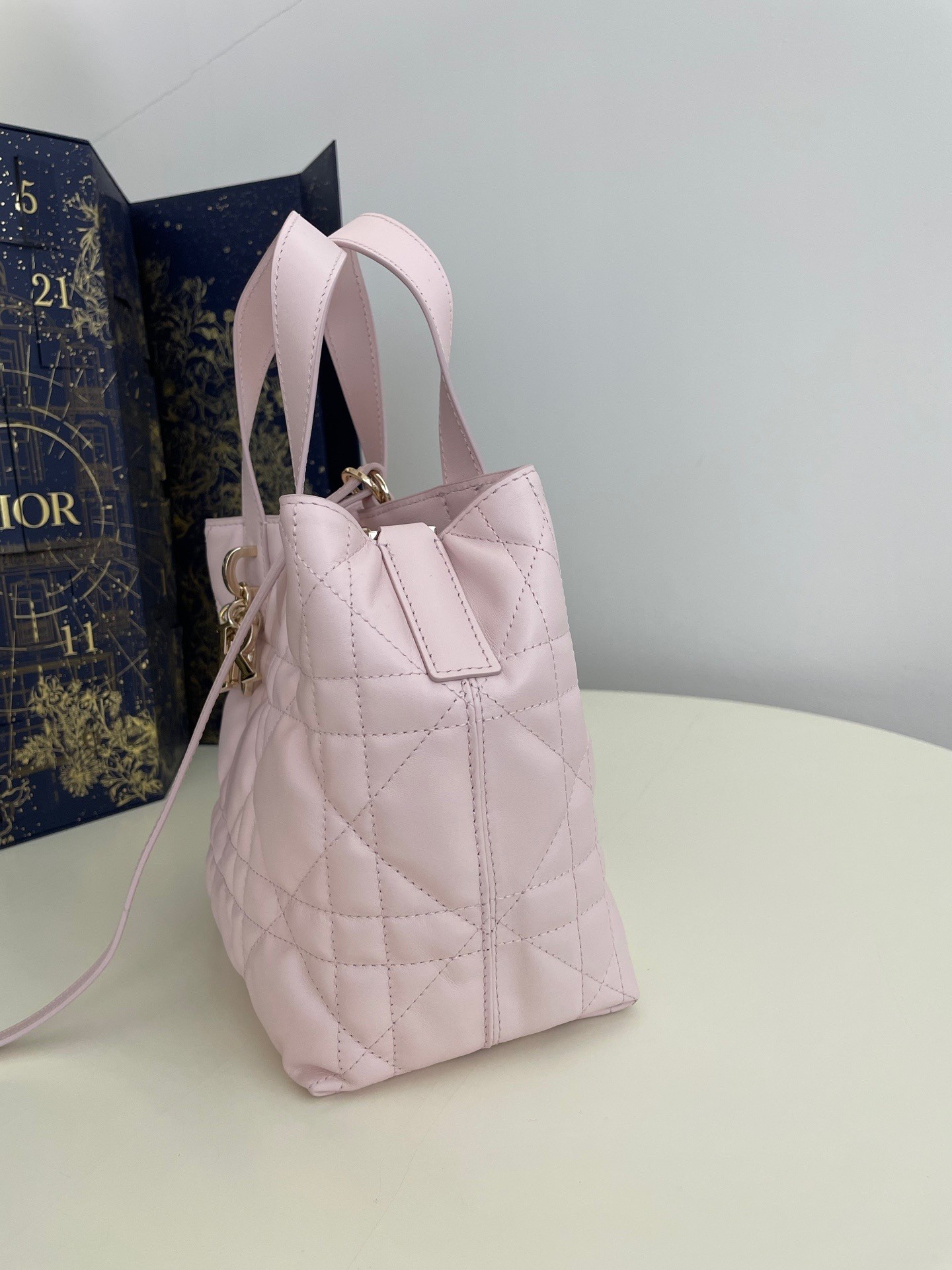 Dior Toujours Small Pink Quilted Leather Basket Bag with Shoulder Strap