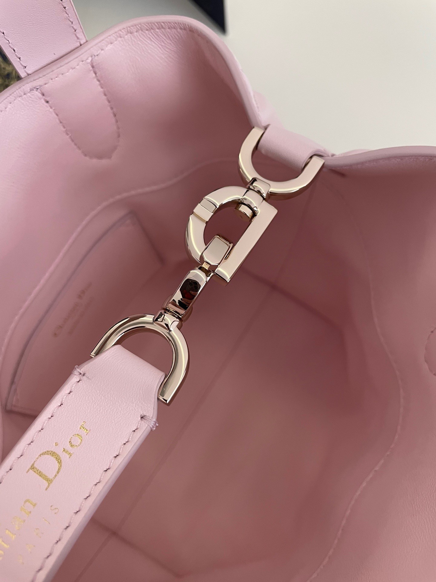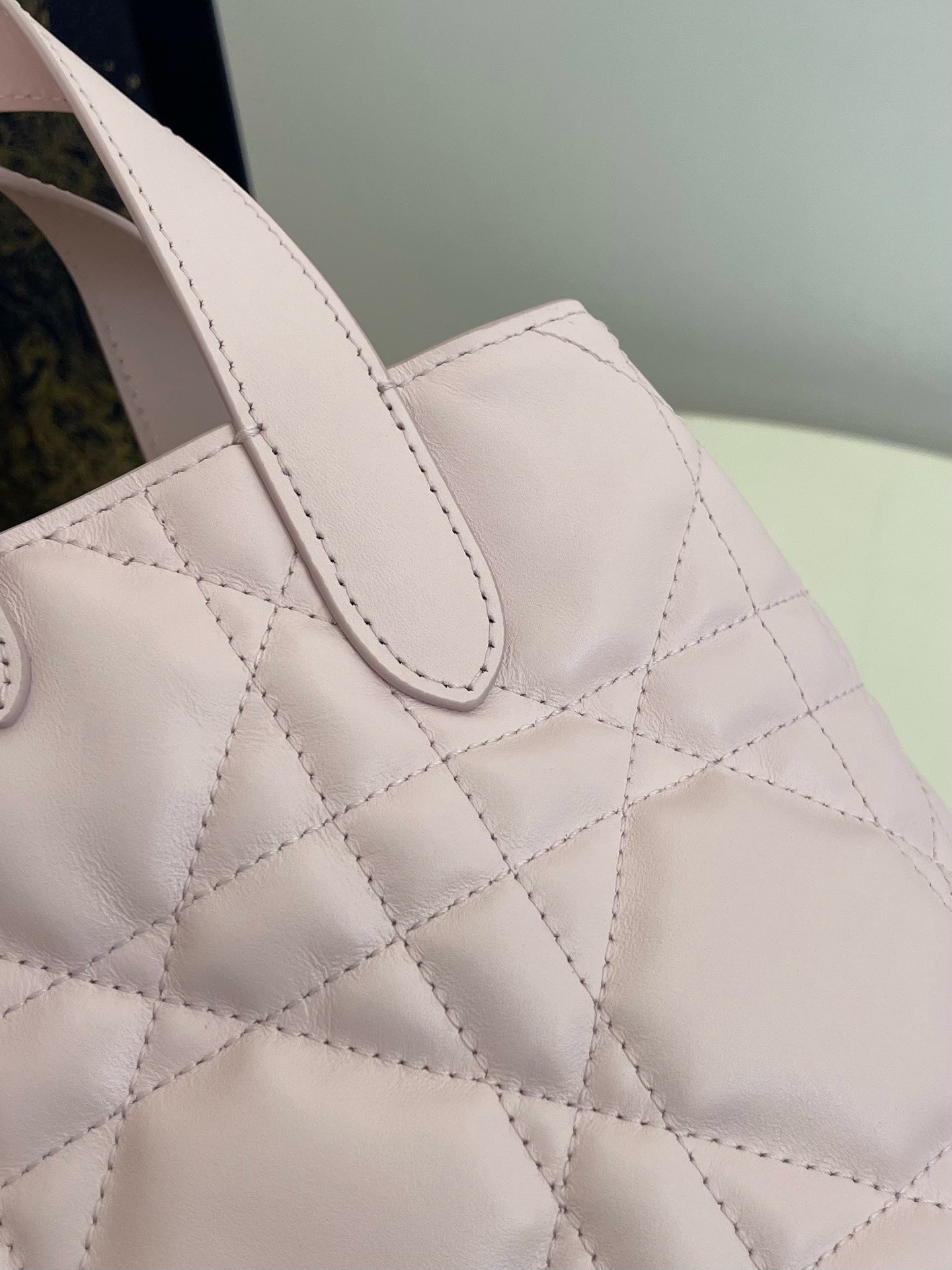 Introducing the Dior Toujours Small Pink Quilted Leather Basket Bag, a blend of elegance and practicality. This bag embodies sophistication with its delicate color and iconic design.