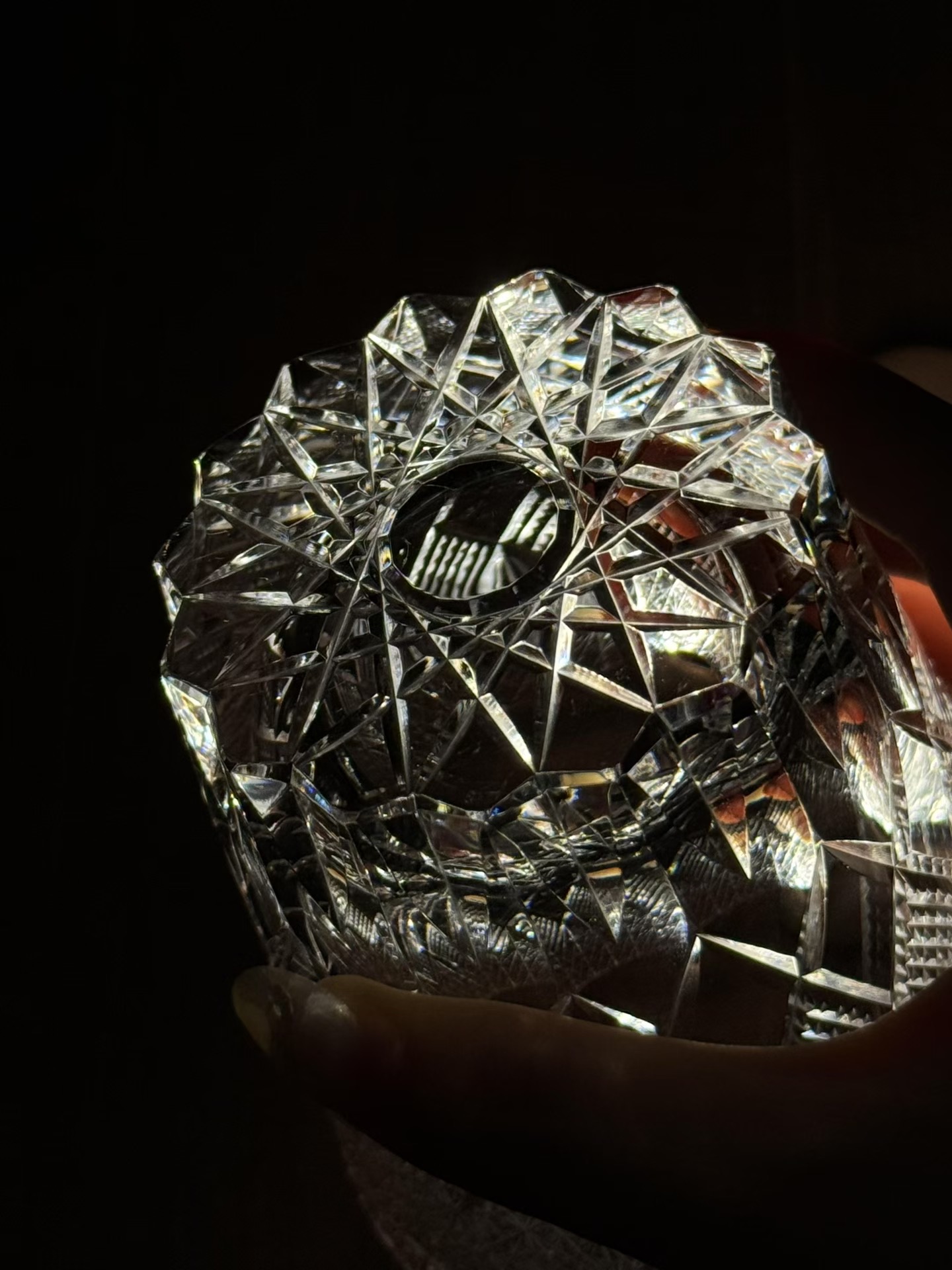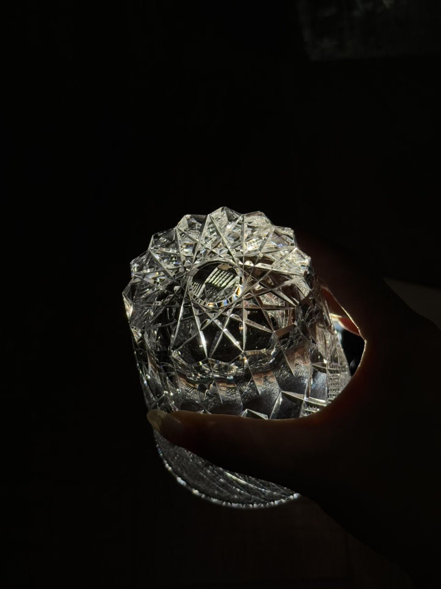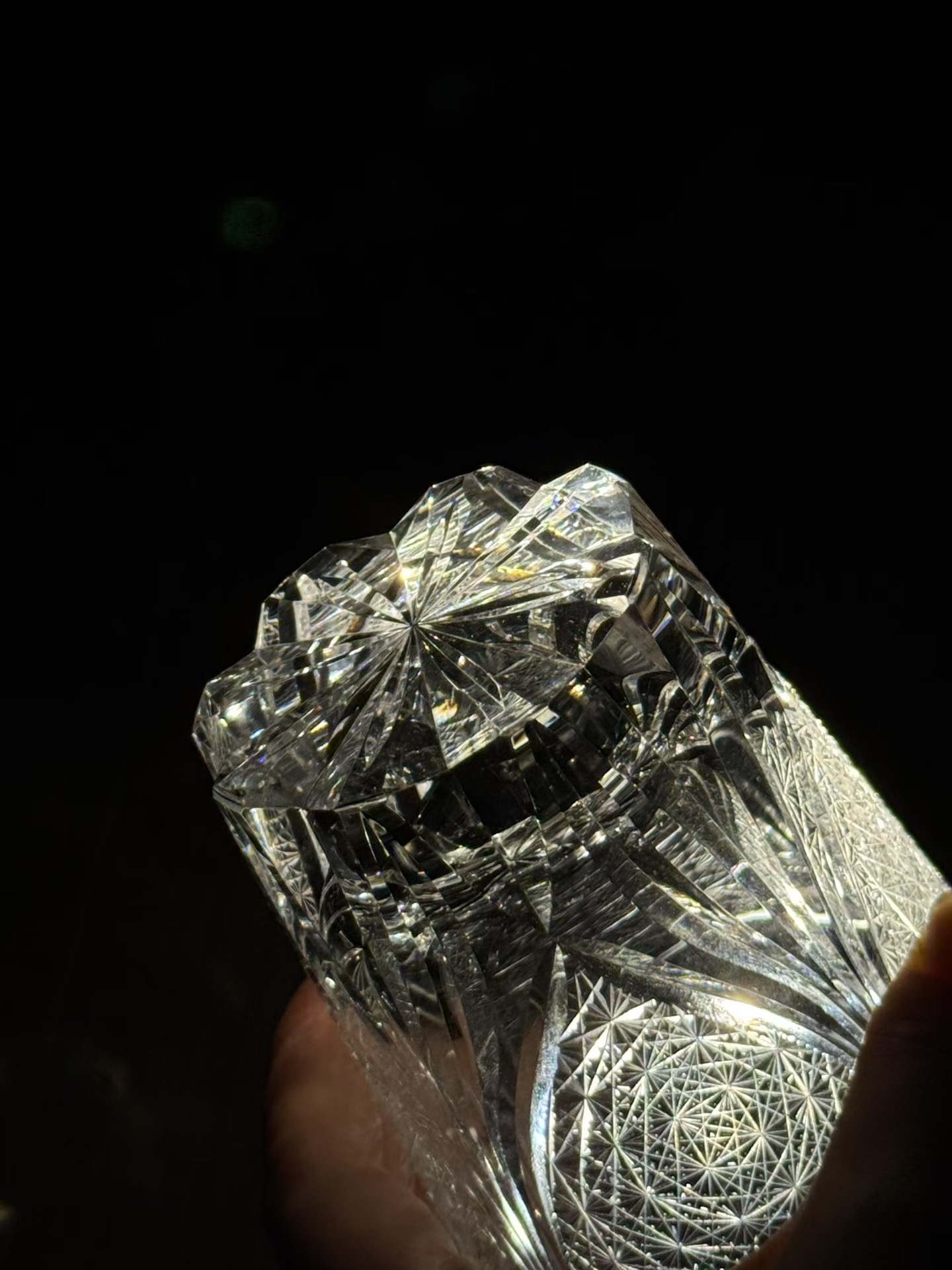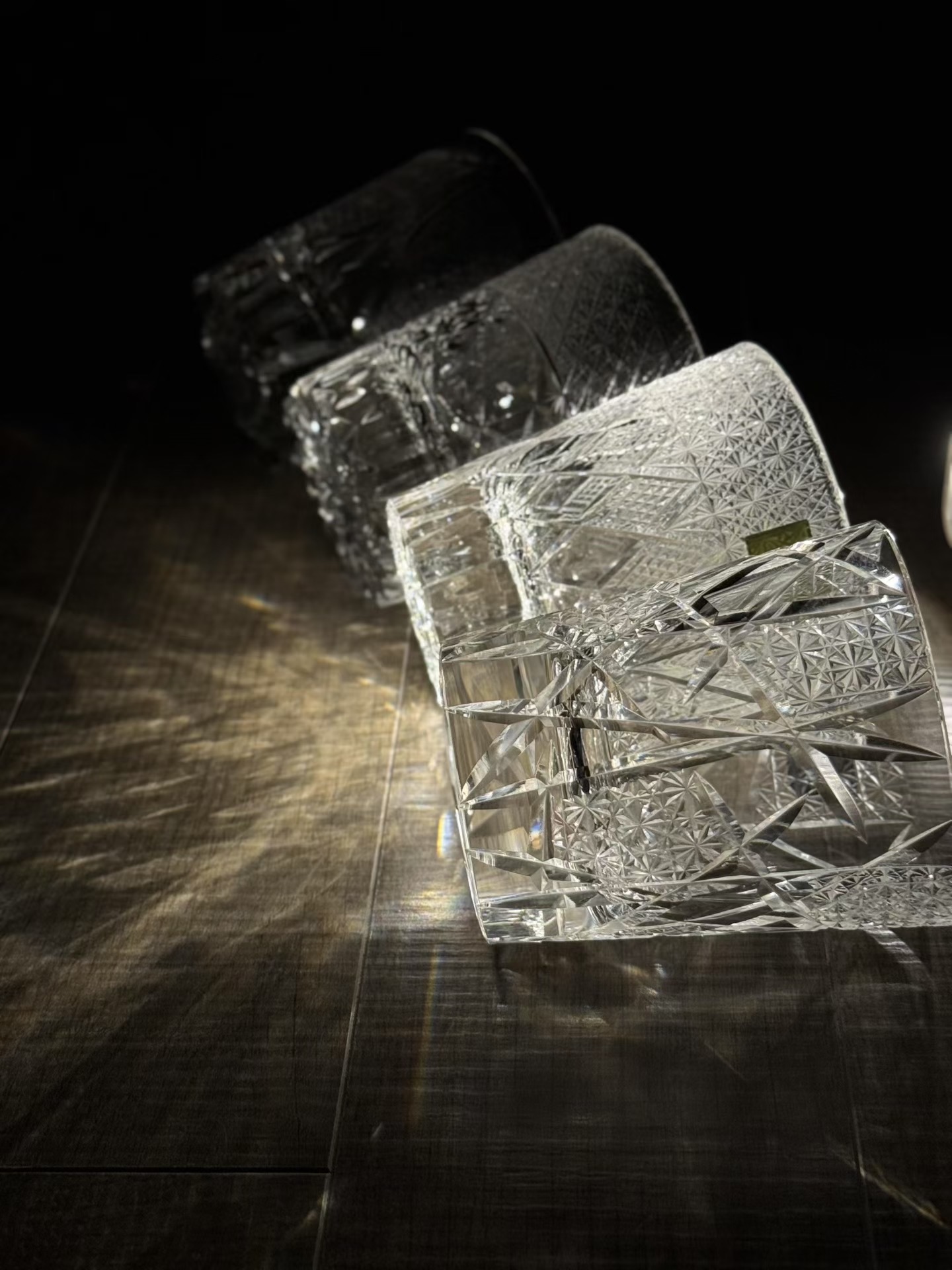 These glasses are absolutely stunning! The cut design is so intricate and the way they refract light is mesmerizing. They have a nice weight to them too, which makes them feel very luxurious. I would definitely recommend these to anyone looking to elevate their drinking experience.