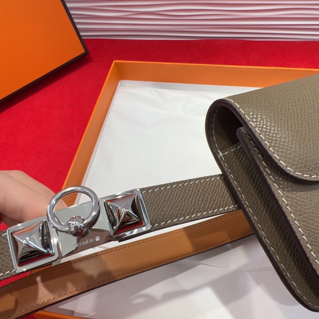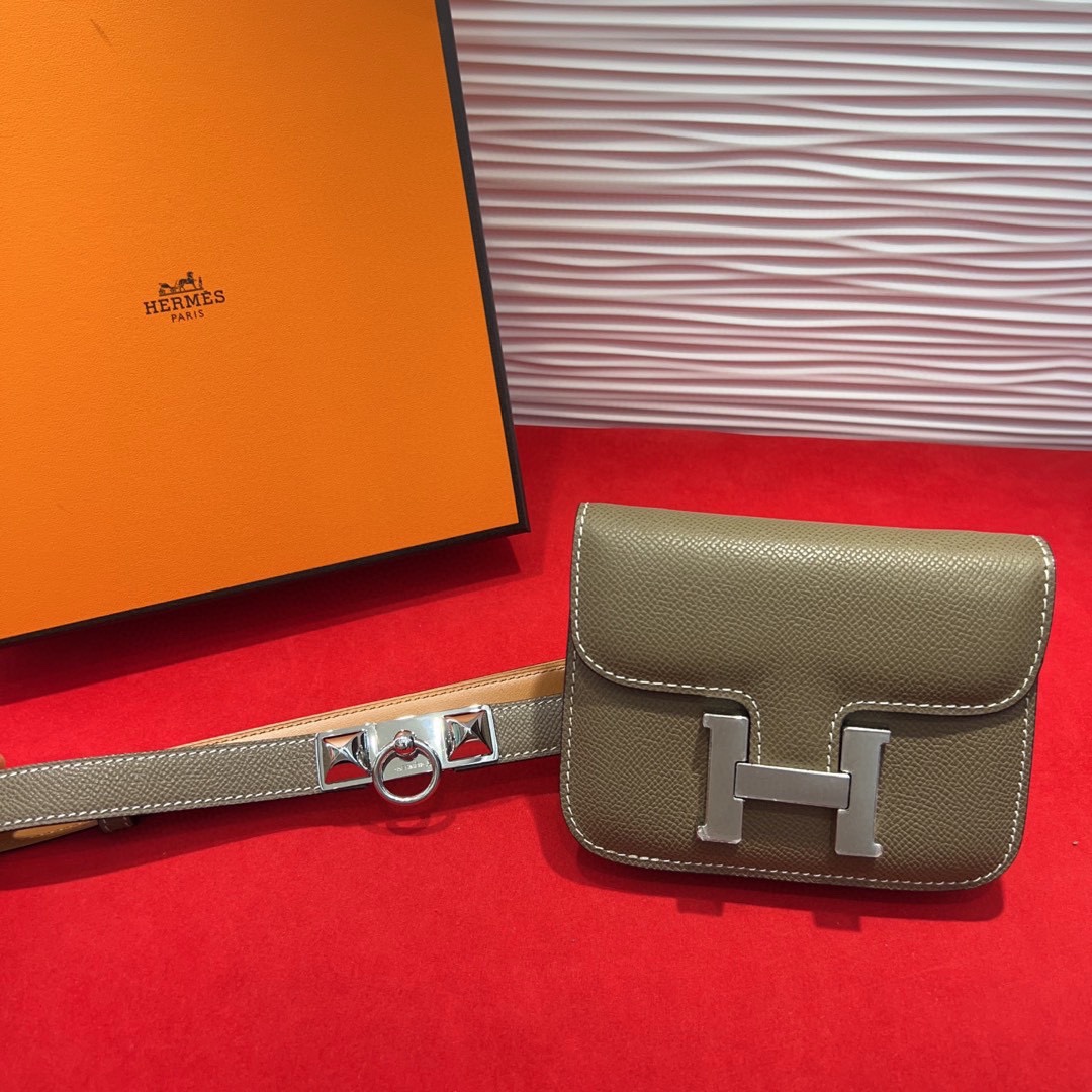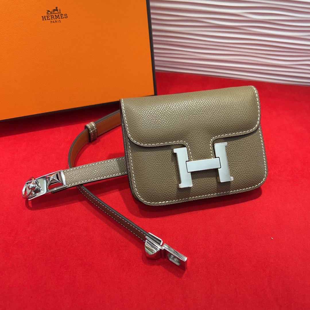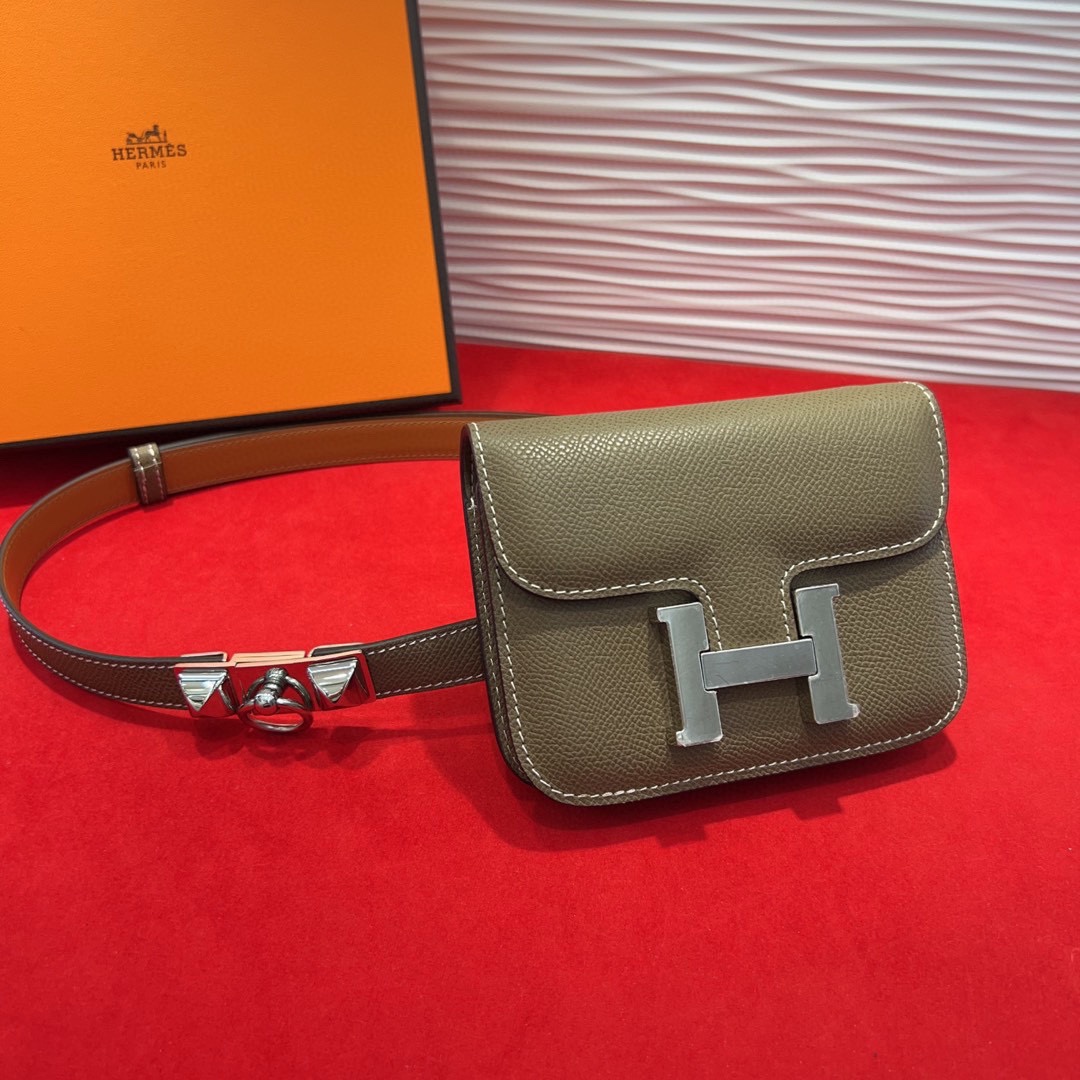 Hermes Inspired Women's Leather Belt Bag with Hand-stitched Detail