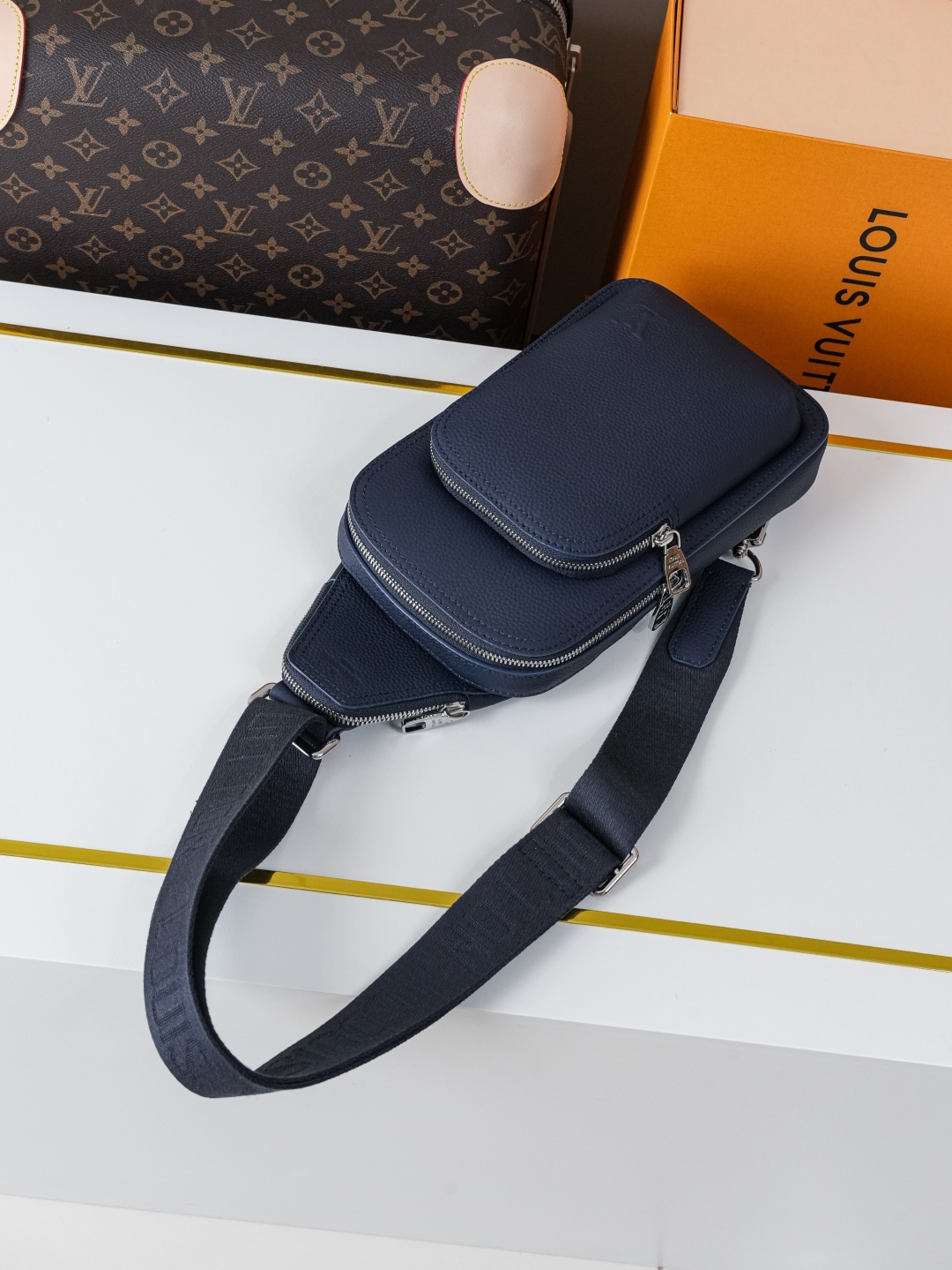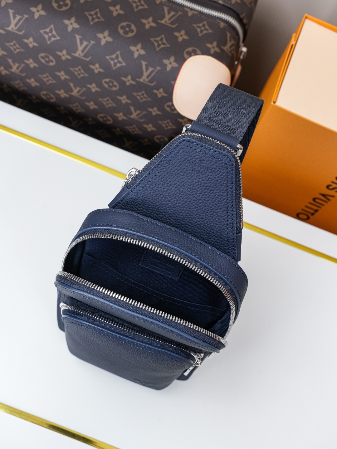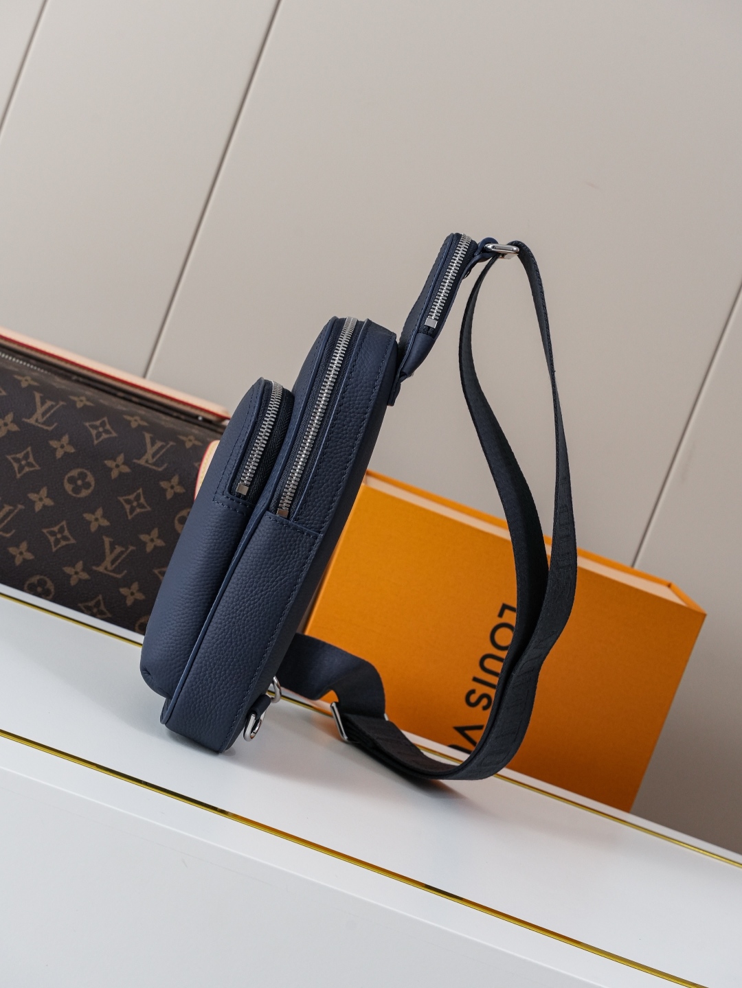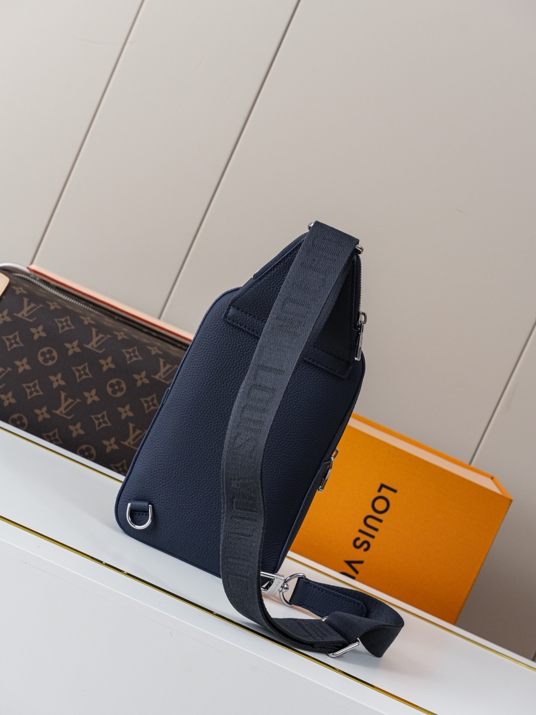 Tags: Avenue Slingbag PM, Blue Leather Crossbody, Designer Sling Bag, Louis Vuitton Sling Bag, Luxury Men's Bag, Waxed Calf Leather Bag