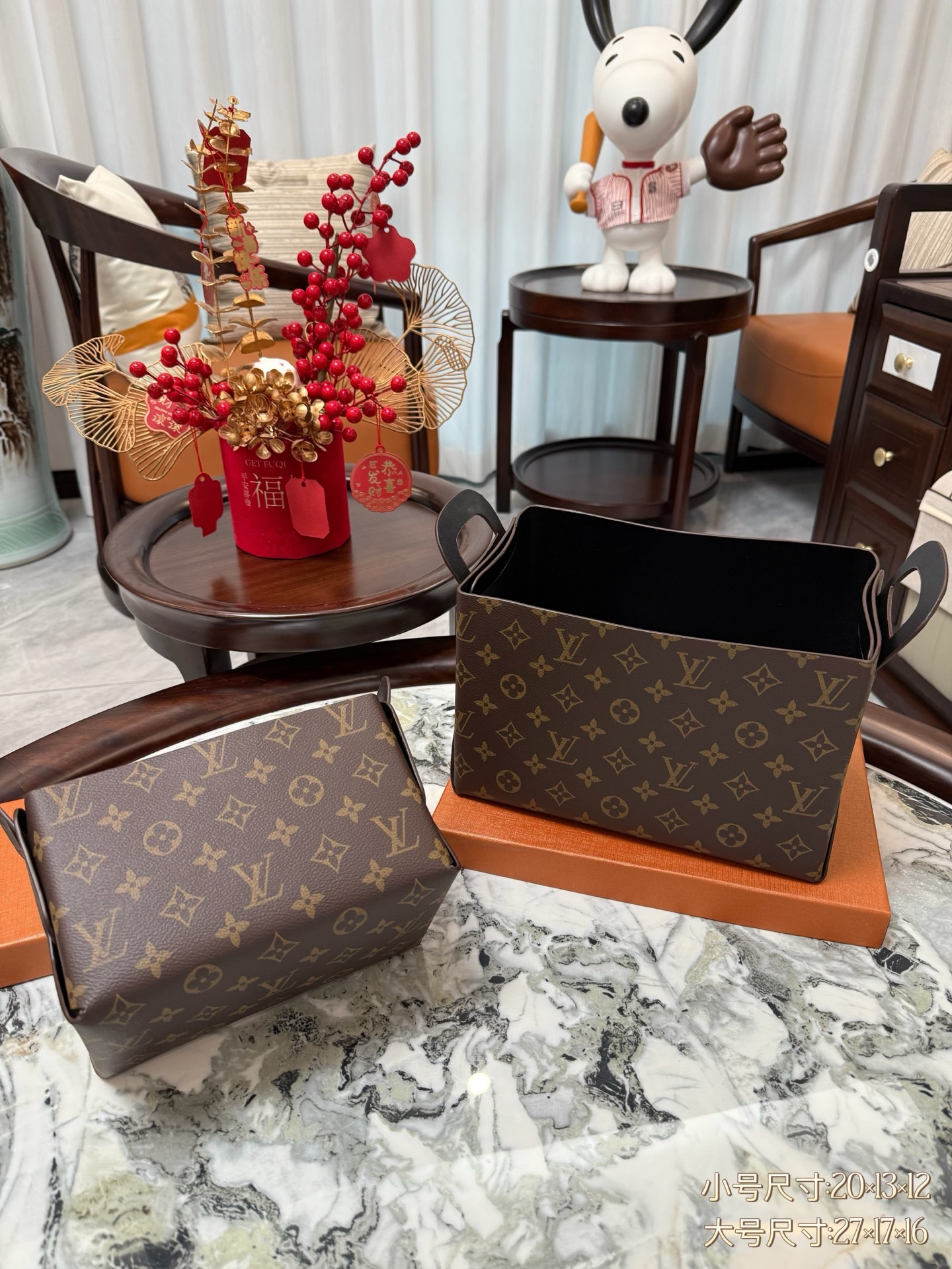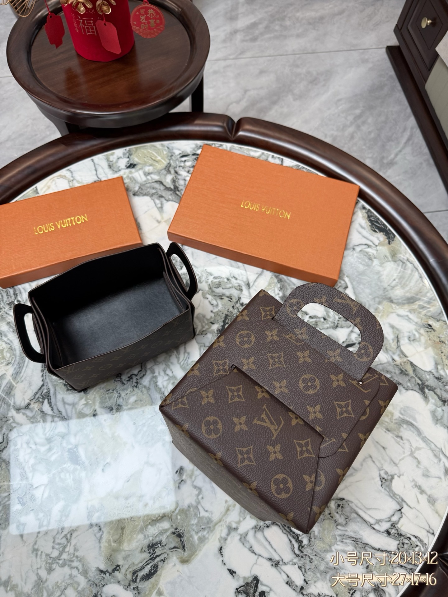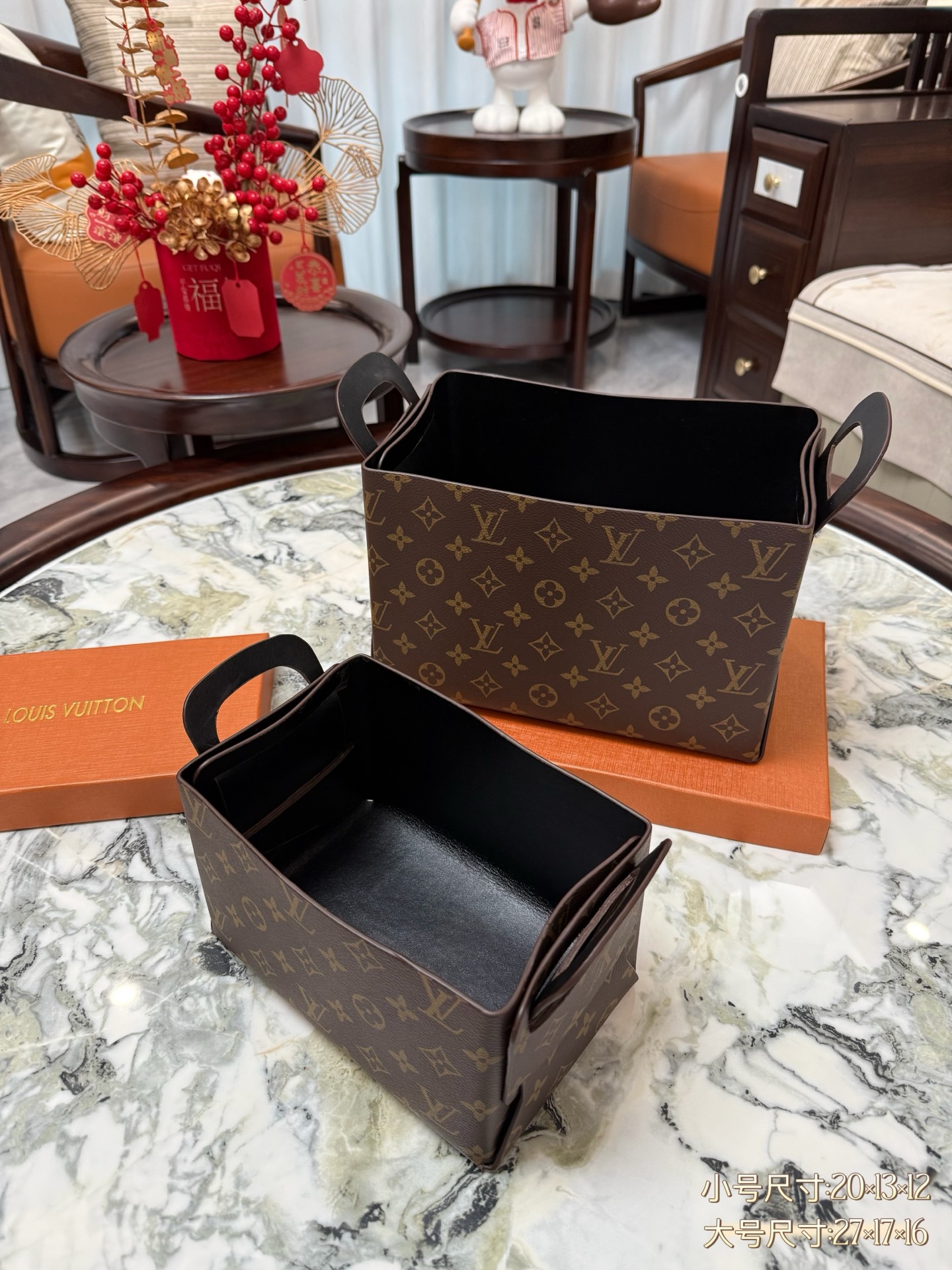 These luxurious storage boxes are crafted from high-quality materials and feature the iconic Louis Vuitton monogram. The set includes two sizes, perfect for organizing a variety of items.