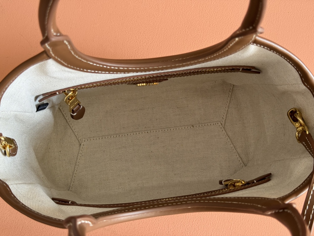 - Linen lining with two zippered pockets