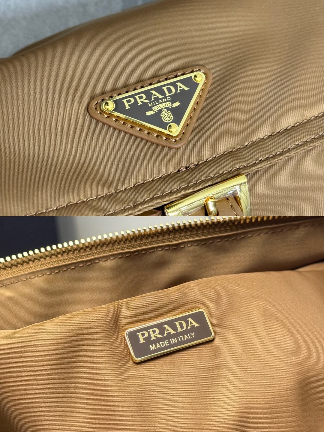 - Hardware: Adorned with the iconic enameled Prada triangle logo, adding a touch of elegance.