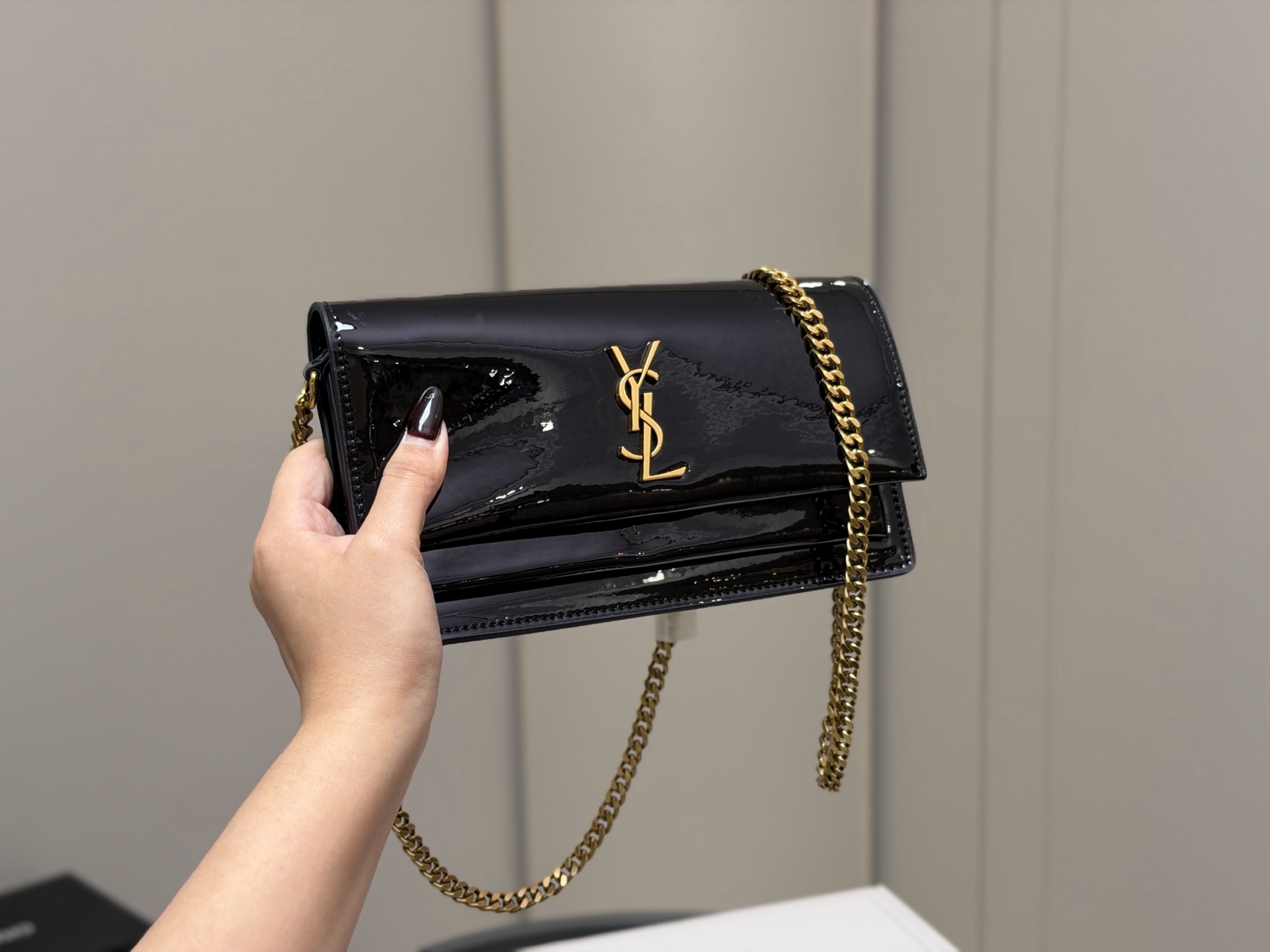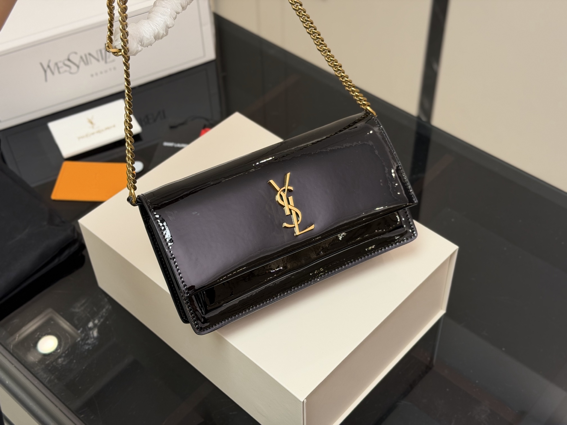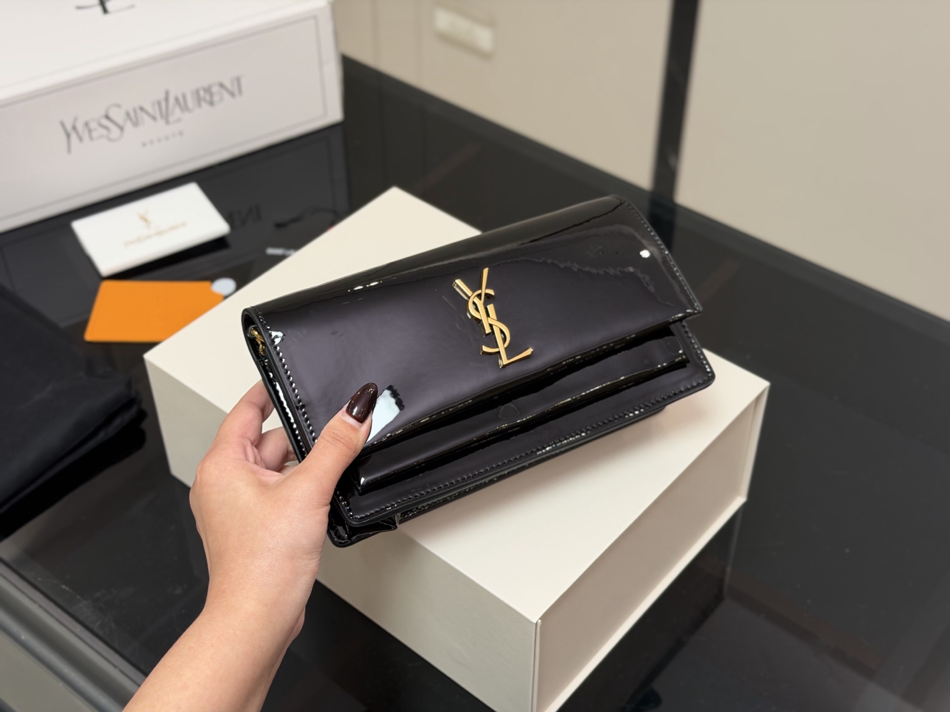 Tags: Black Patent Leather Bag, Designer Clutch, Evening Bag, Gold Hardware Bag, Saint Laurent Bag, Ysl Sunset Bag
