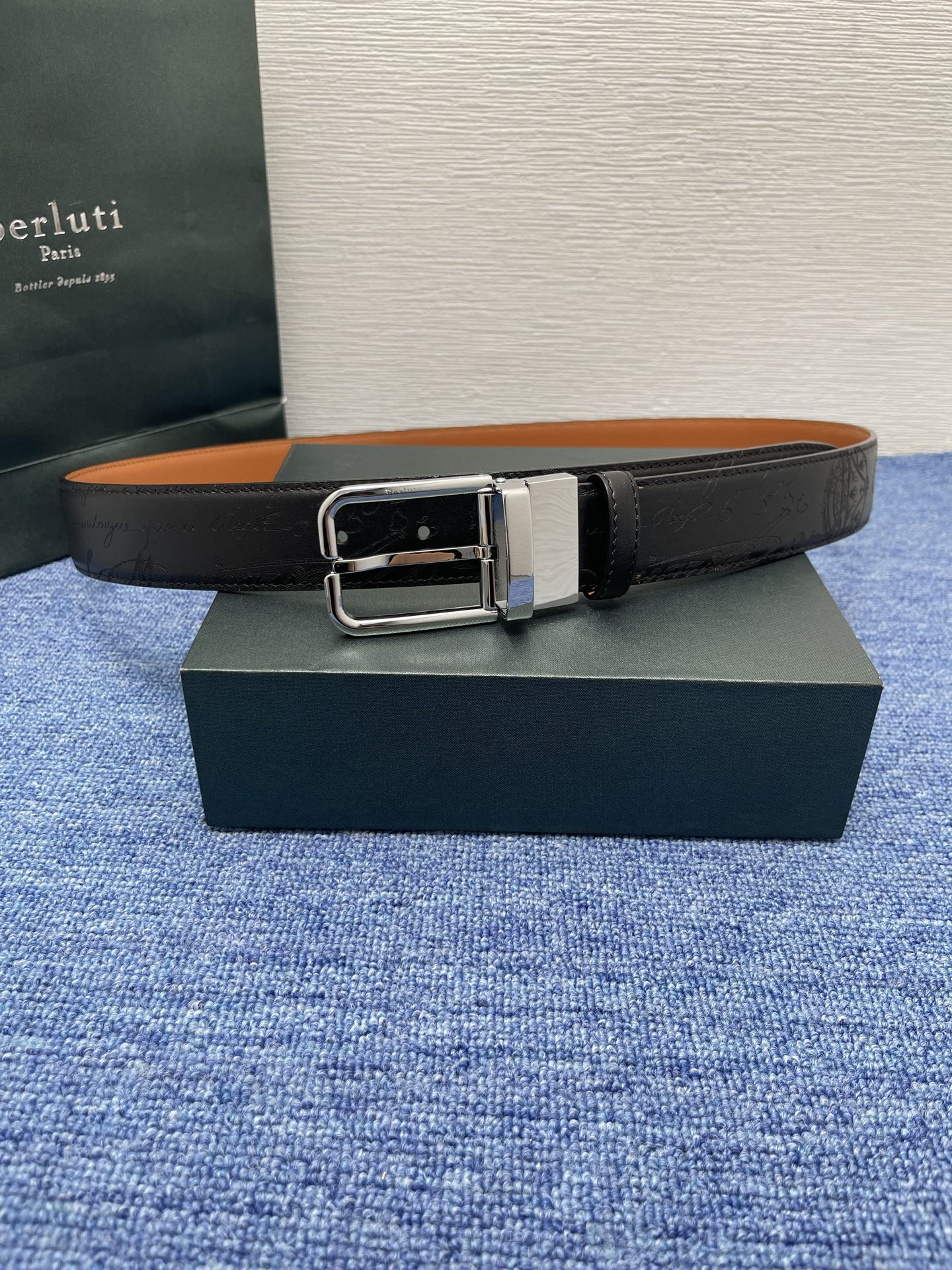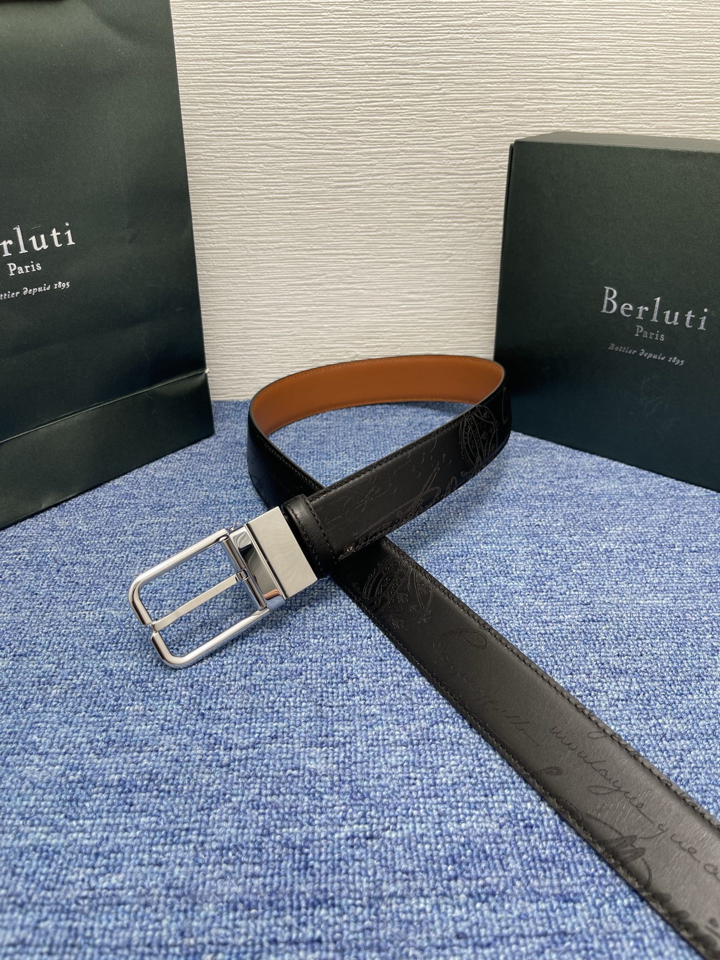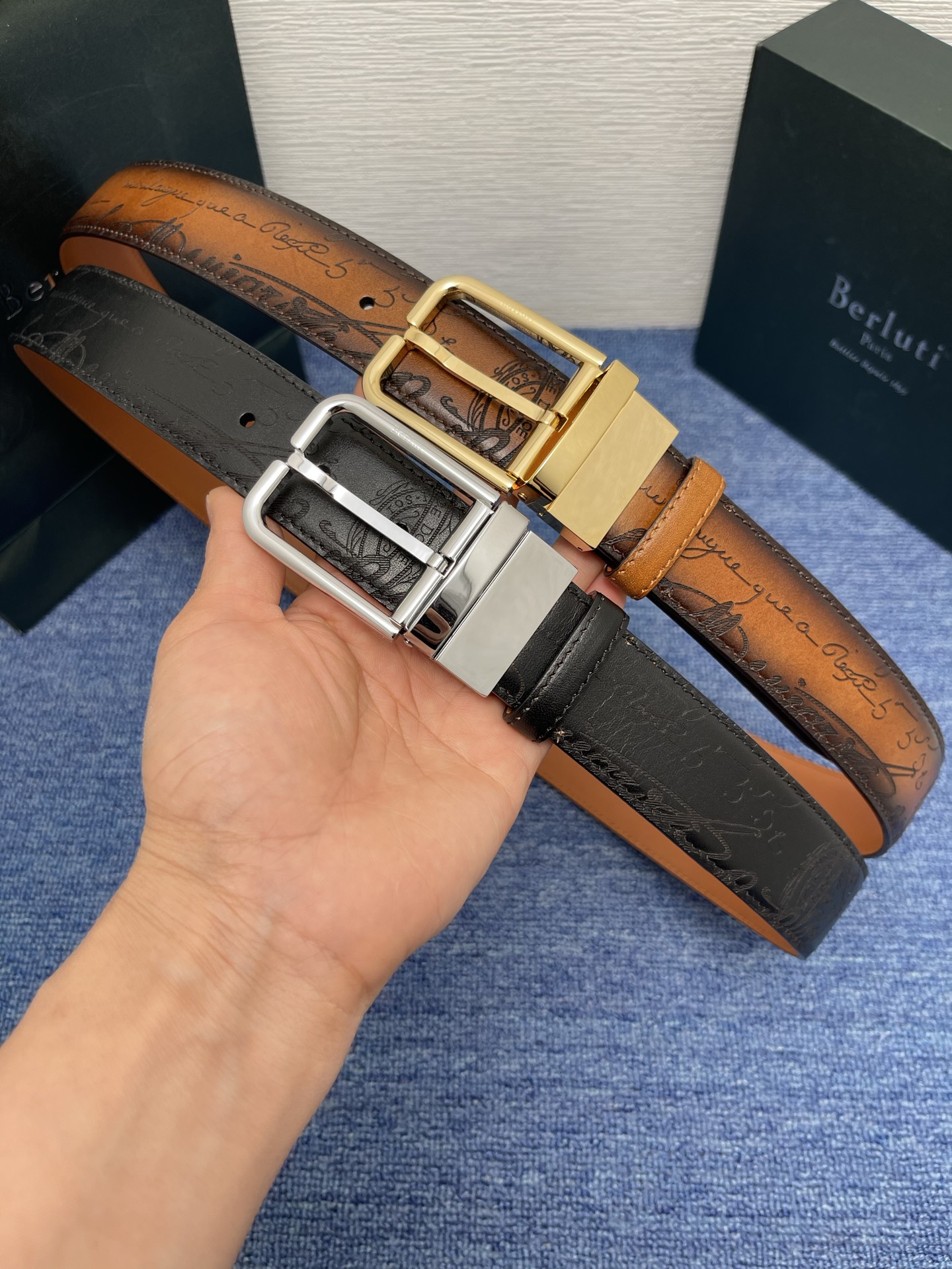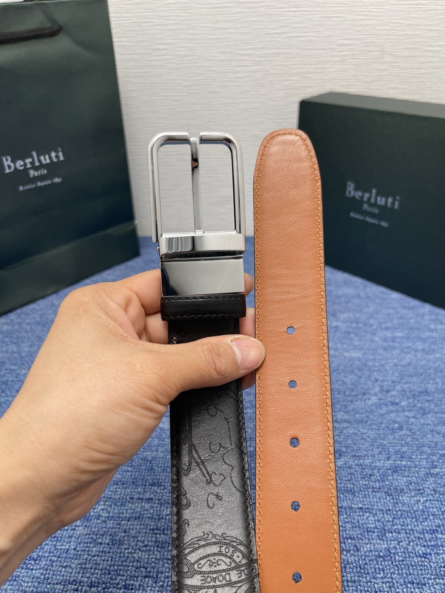 Tags: Berluti Leather Belt, Designer Leather Belt, Luxury Belt For Men, Patina Finish Belt, Steel Buckle Leather Belt, Venezia Leather Belt