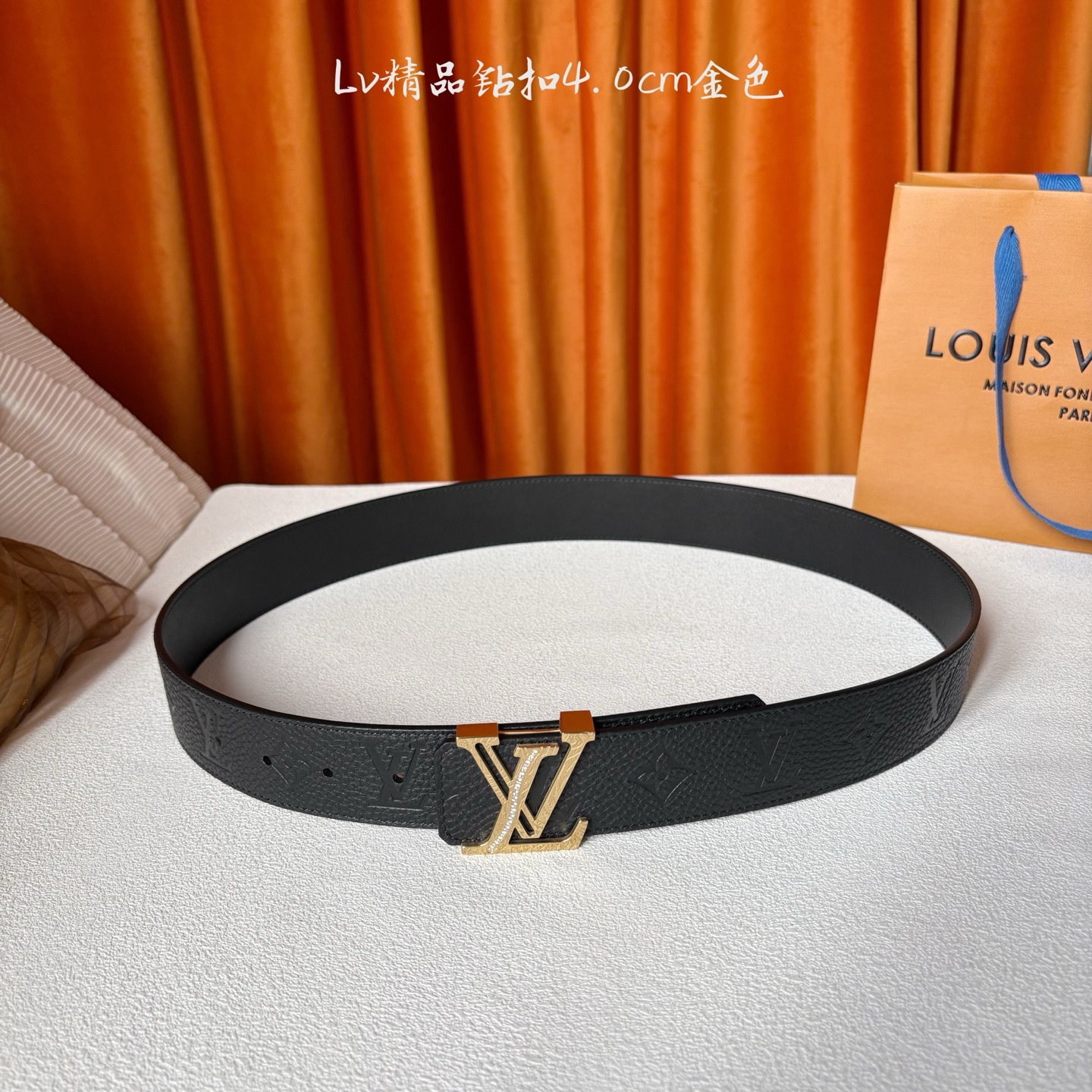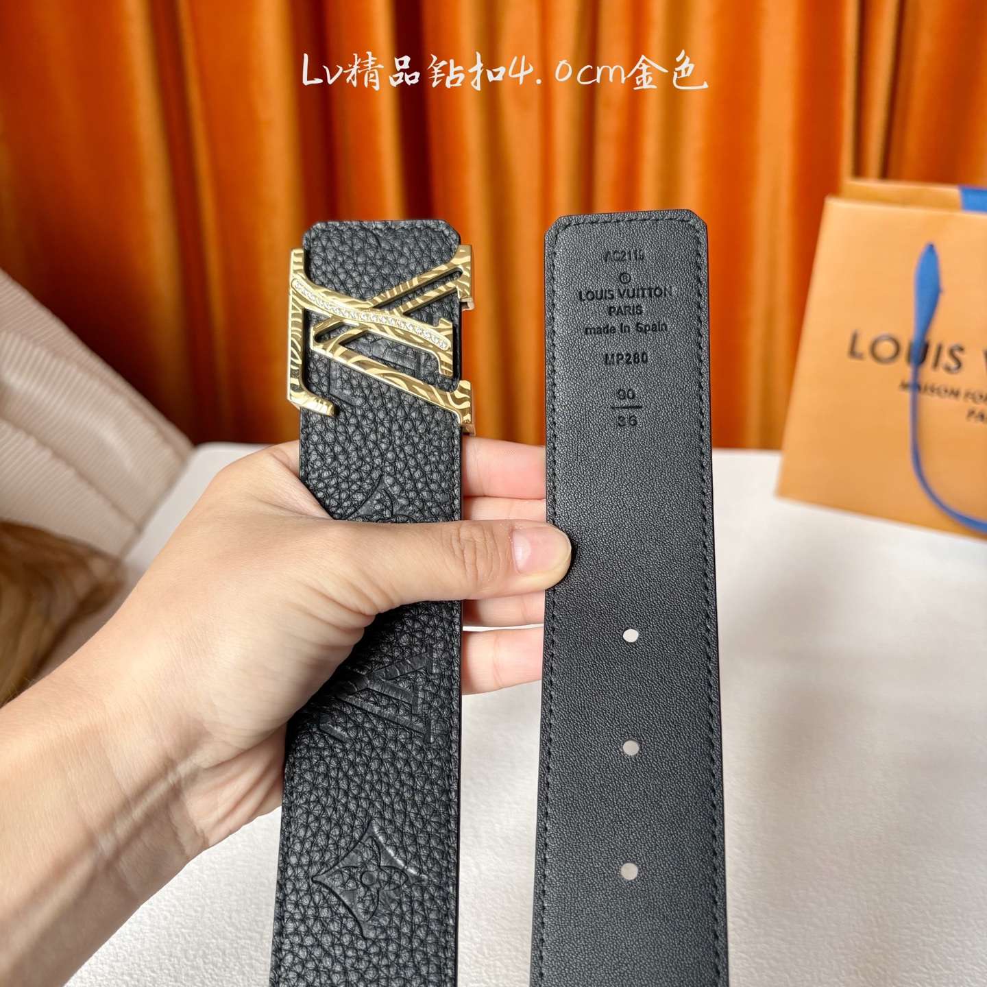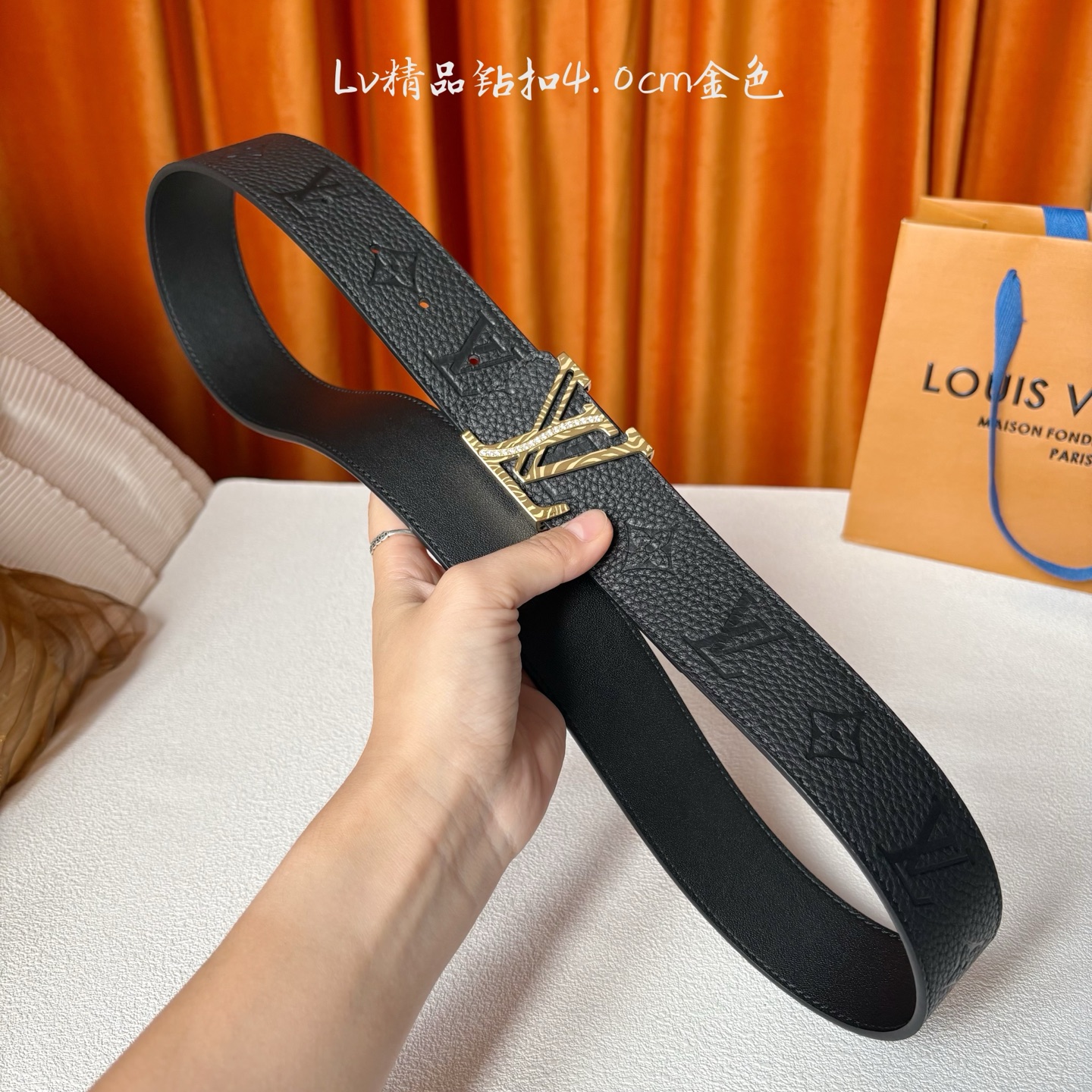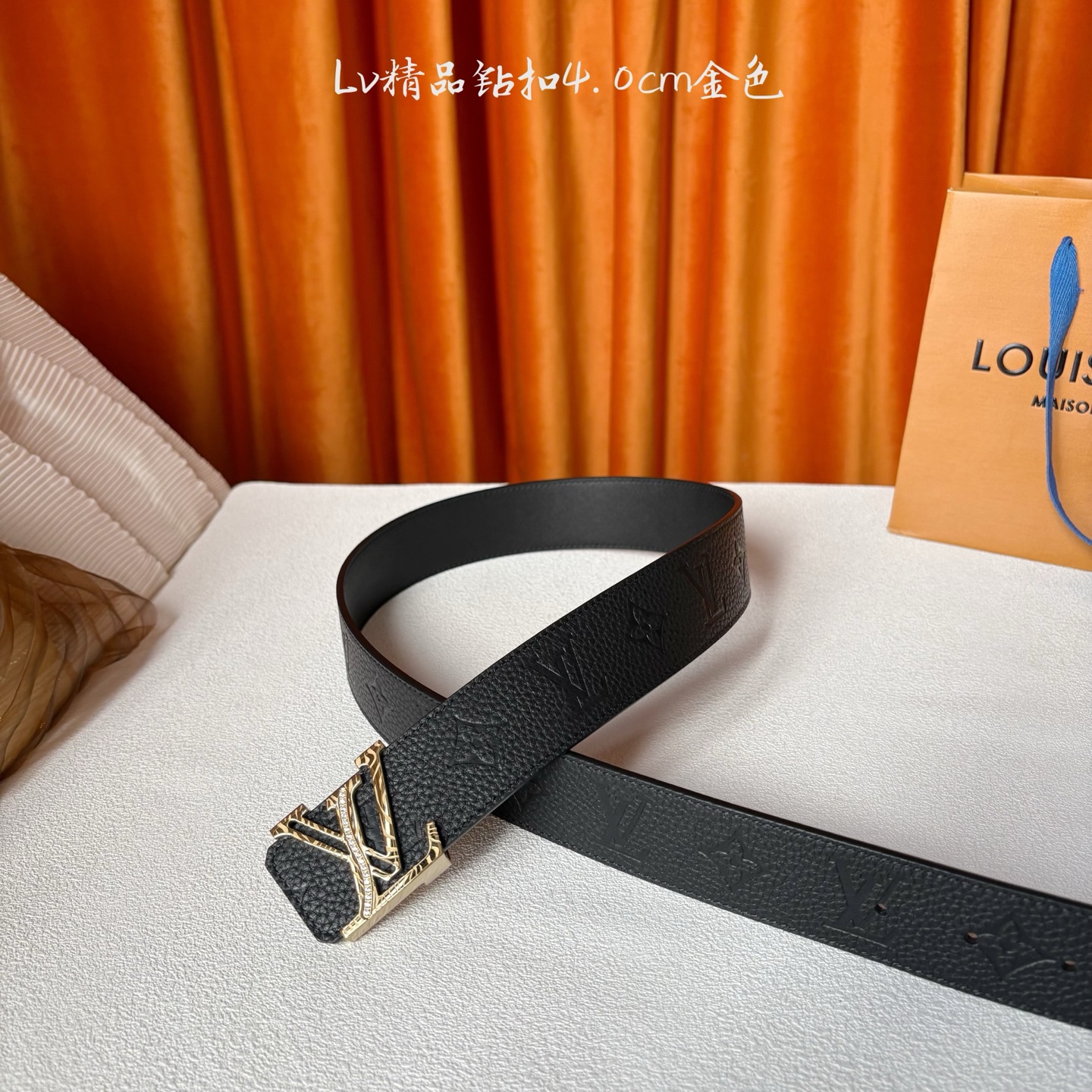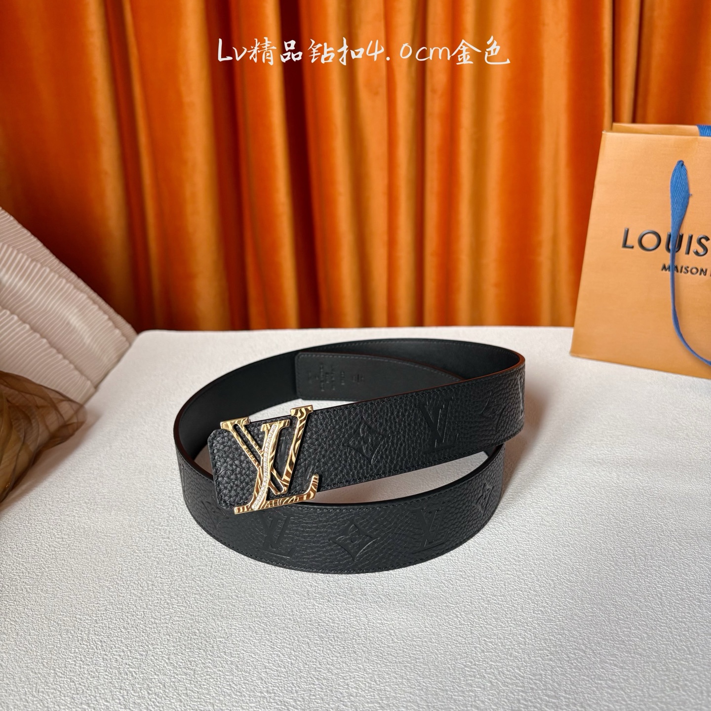 Elevate your style with this Louis Vuitton belt. Featuring embossed leather, a steel buckle, and a 4.0cm width, it's a luxurious accessory for any wardrobe.