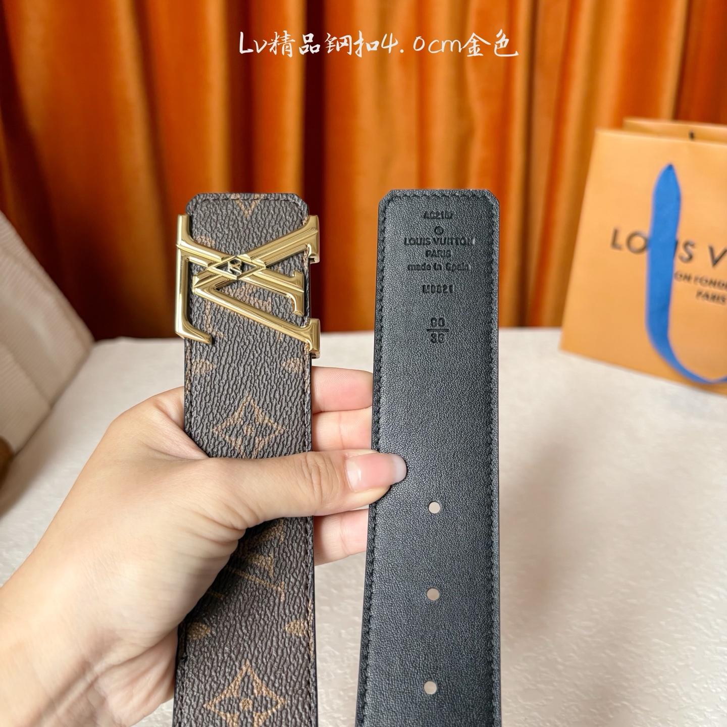 Elevate your style with this Louis Vuitton belt. Features a classic monogram, original steel buckle, and measures 4.0cm wide.