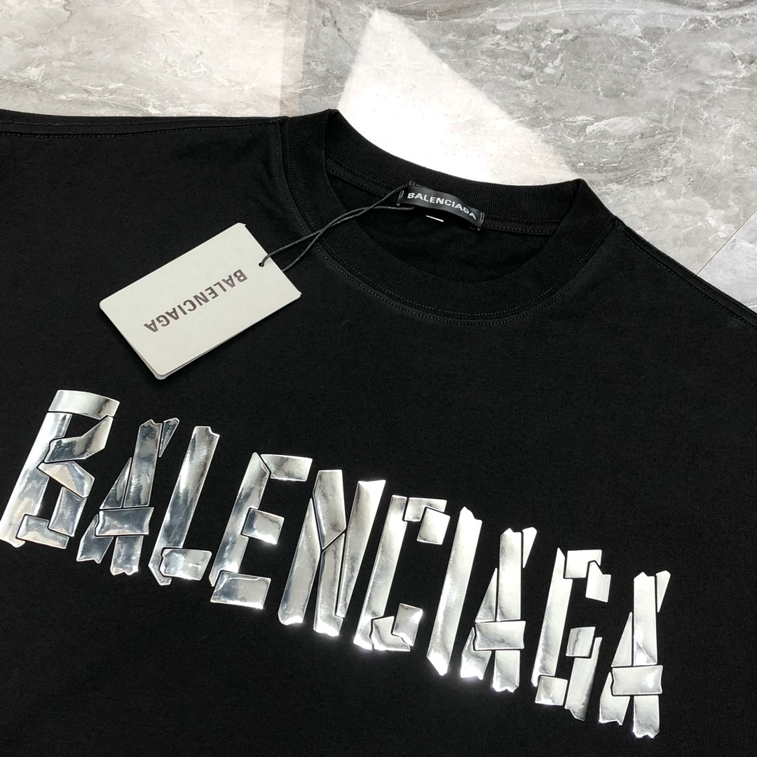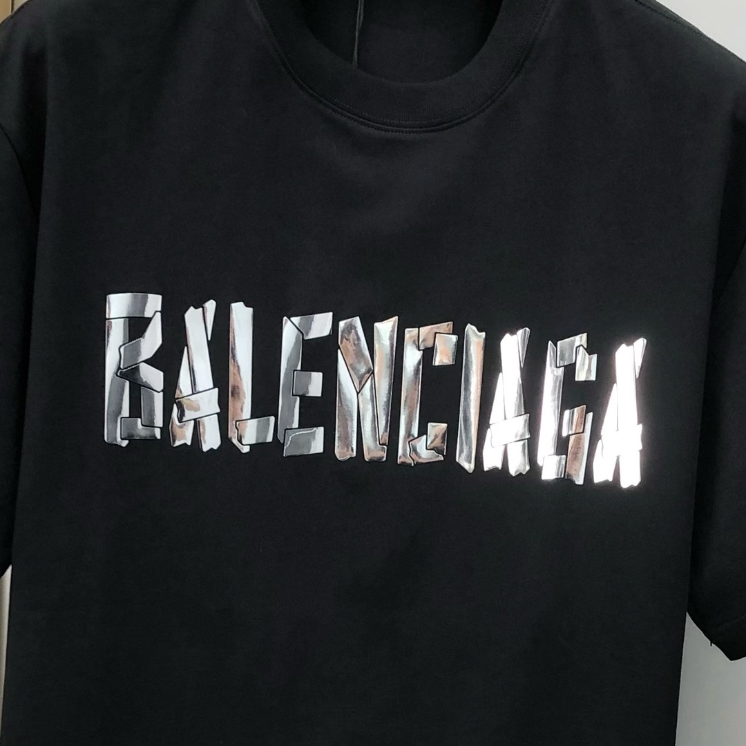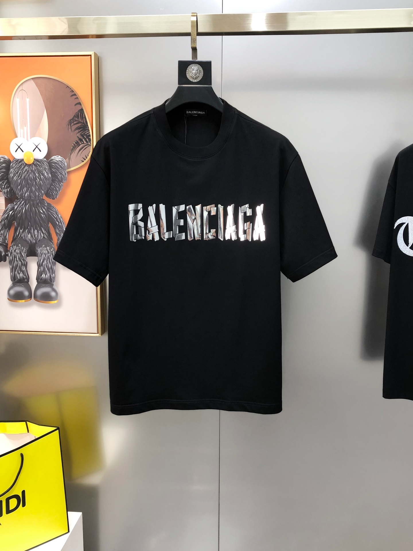 Tags: Balenciaga T-Shirt, Designer Cotton Tee, Luxury Menswear, Reflective Logo Shirt, Spring Summer Fashion