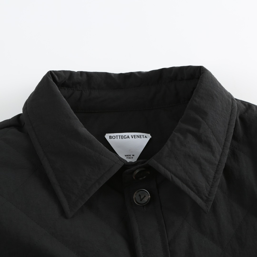 Tags: Bottega Veneta Quilted Jacket, Designer Cotton Blend Jacket, Luxury Outerwear Men, Modern Fit Quilted Jacket, Pocket Logo Patch Jacket