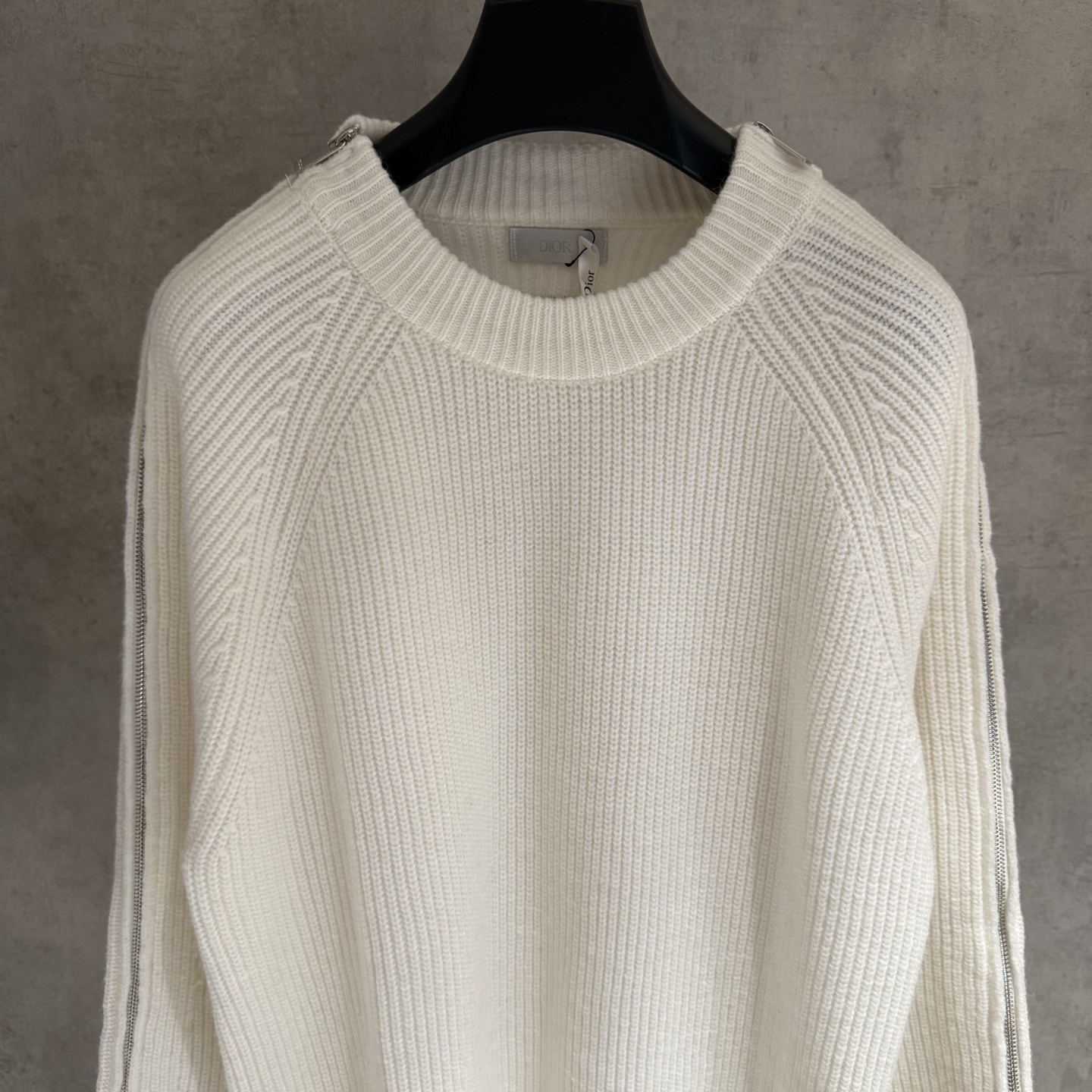 Elevate your wardrobe with this Dior men's knit sweater. Features a stylish zipper design on the sleeves. Perfect for a modern, comfortable look.