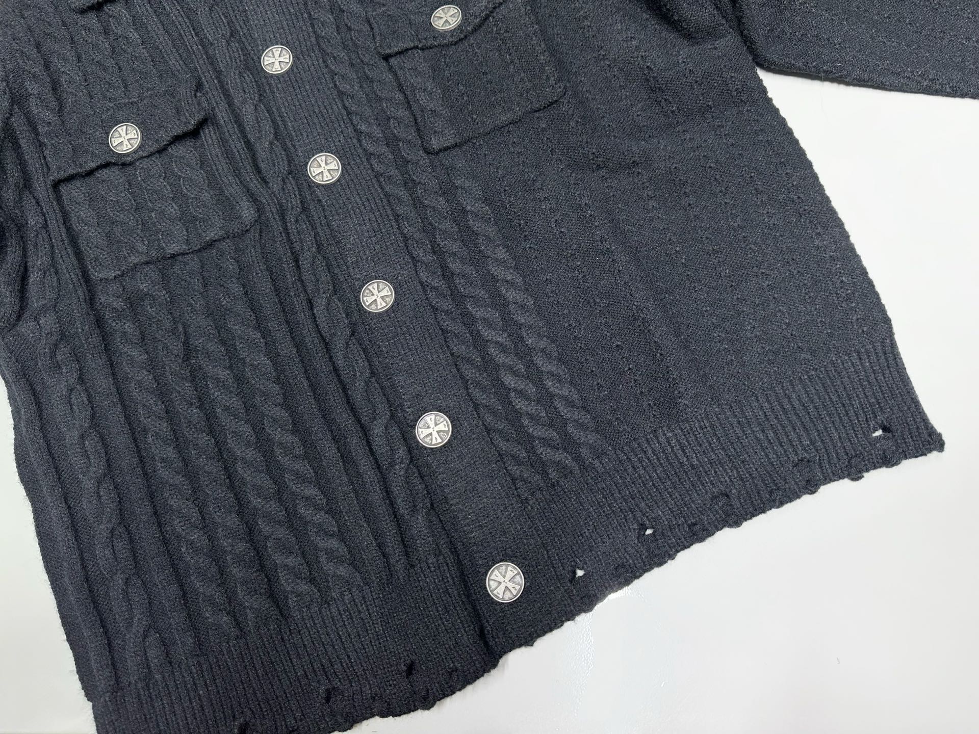 Tags: Button Front Sweater, Designer Knit Jacket, Luxury Outerwear, Relaxed Fit Cardigan, Wool Blend Cardigan