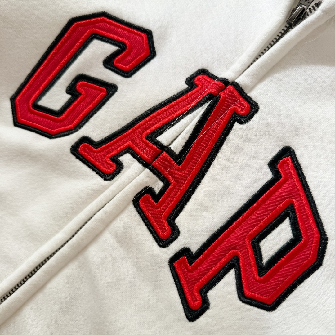 GAP Classic Embroidered Fleece Zip-Up Hoodie, Streetwear Style, Unisex Design