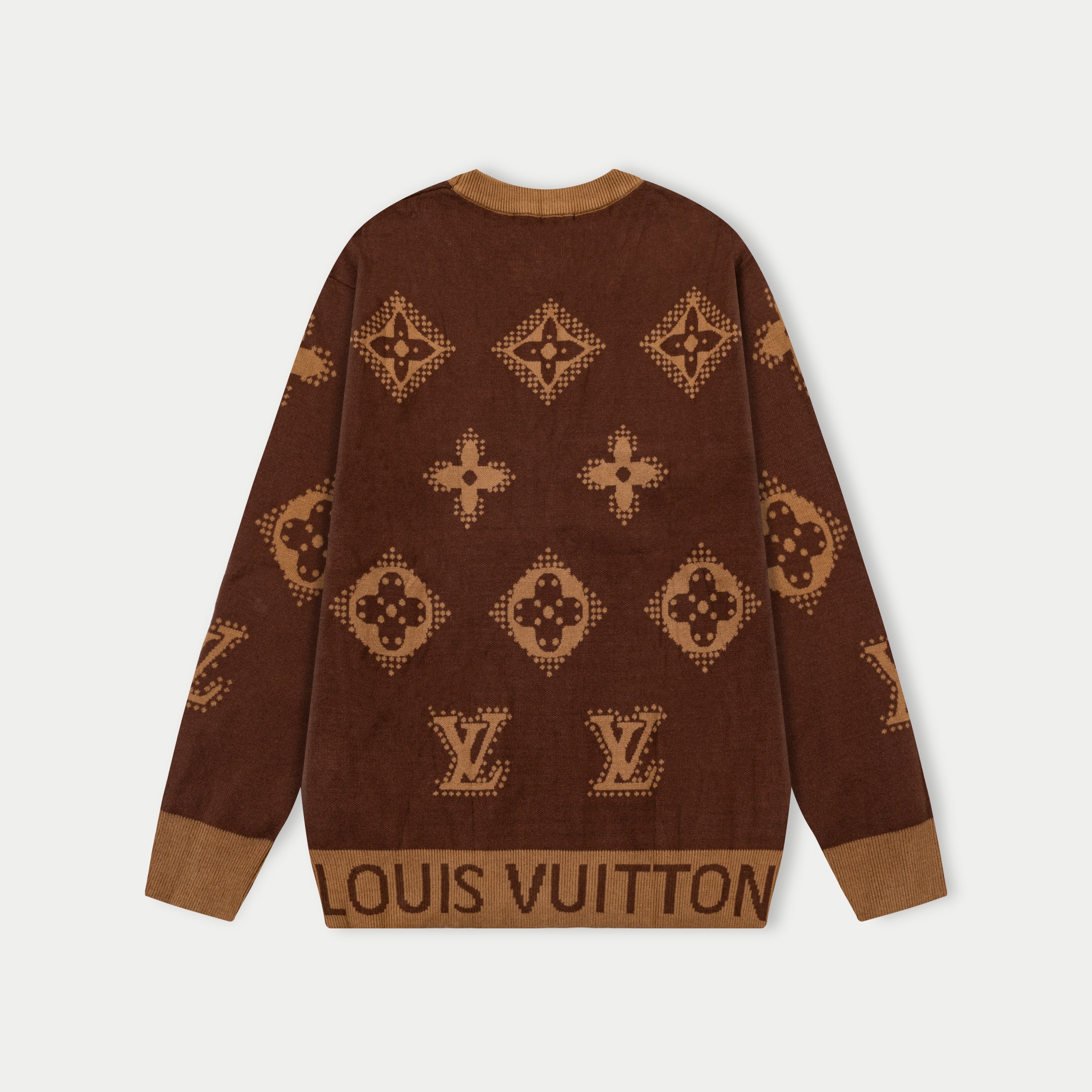 Louis Vuitton 25SS Brown Wool Blend Sweater with Monogram Pattern