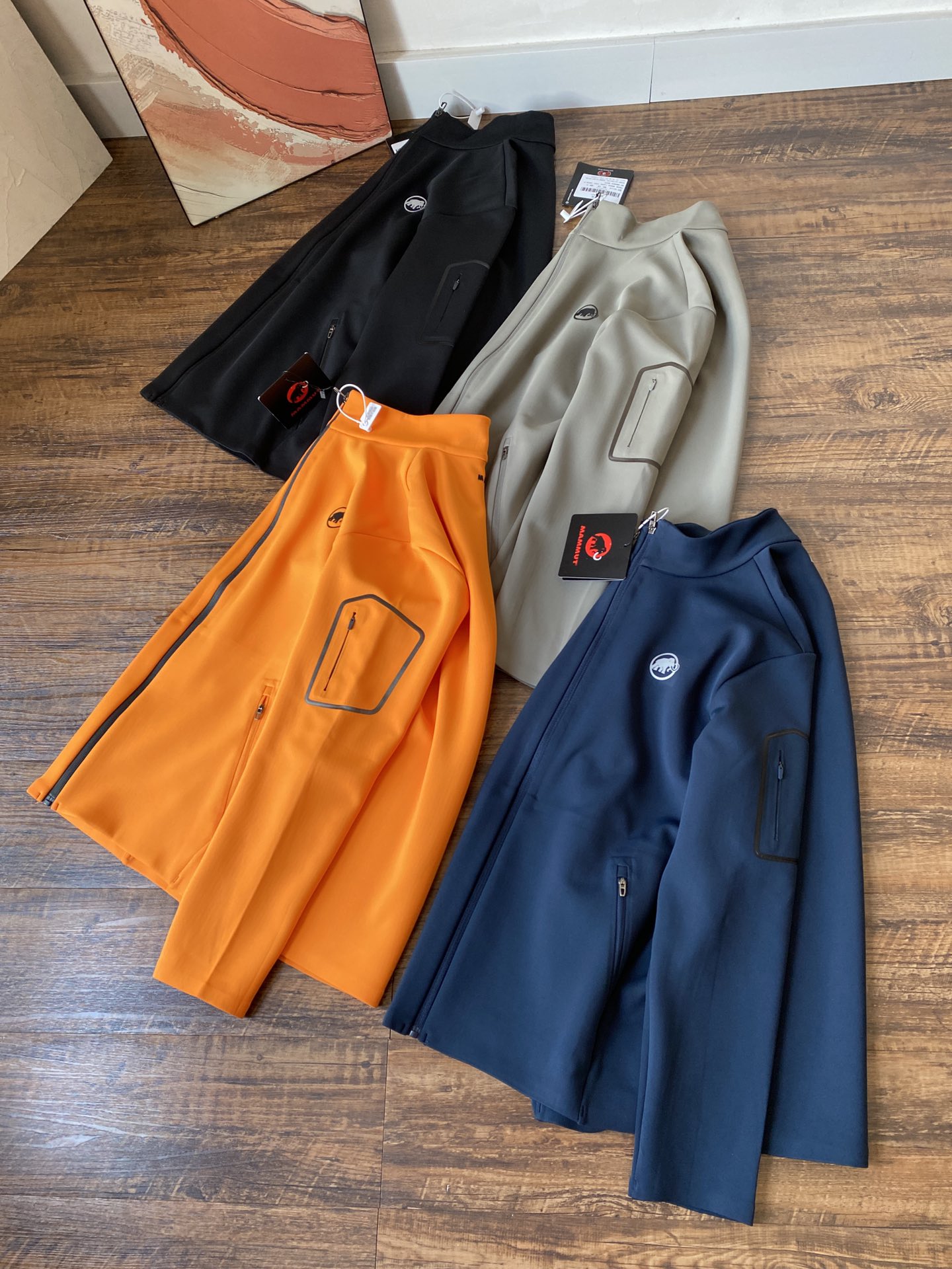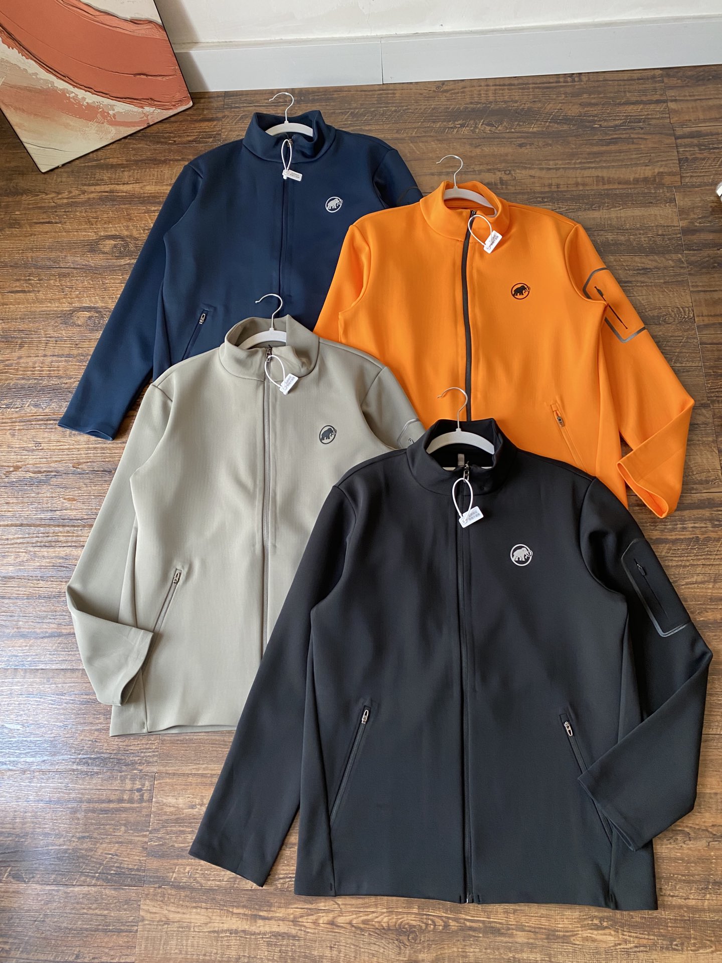 Low saturation jacket with a tailored fit. Features 3D mammoth logo on the front and back. Comfortable, loose fit. Available in multiple colors and sizes.