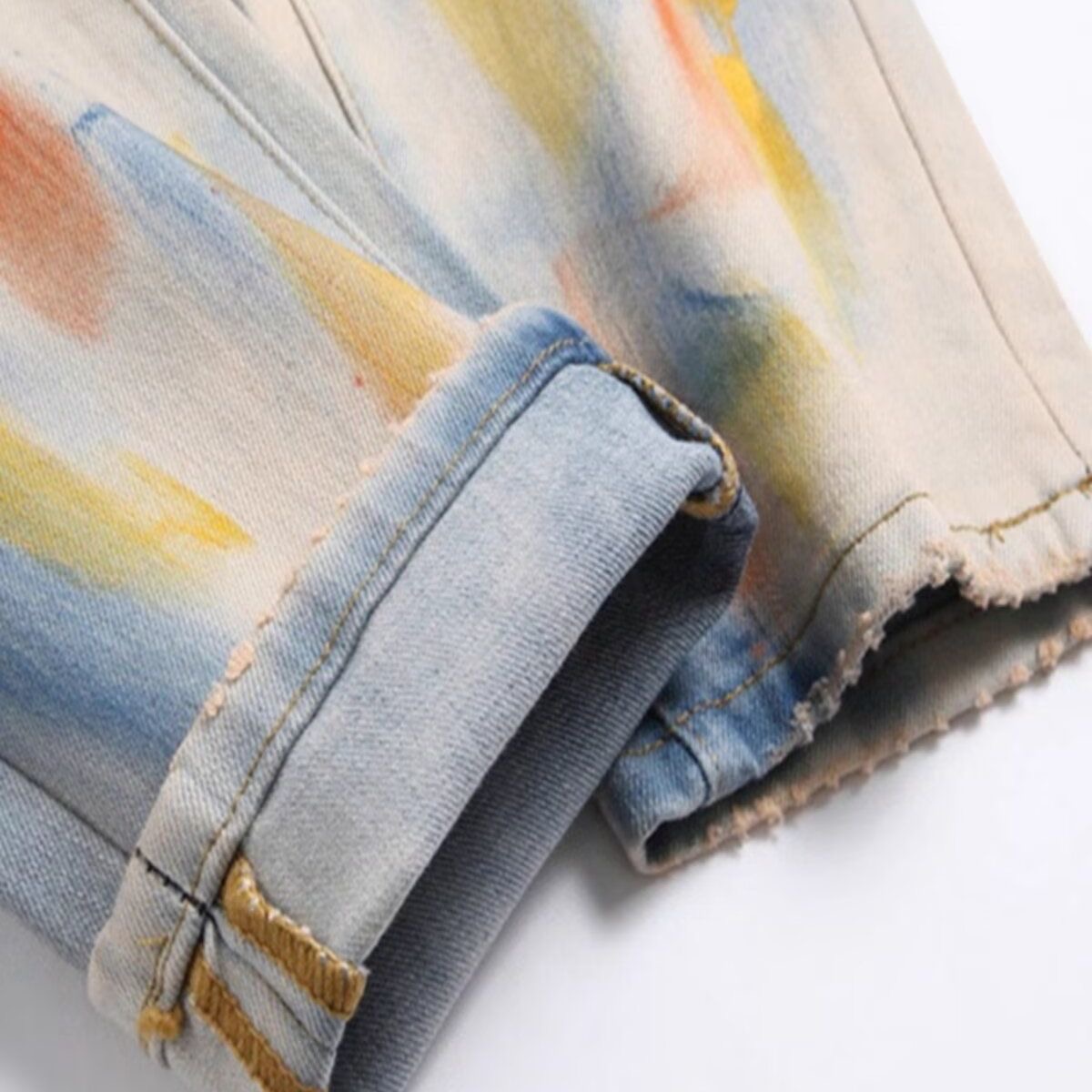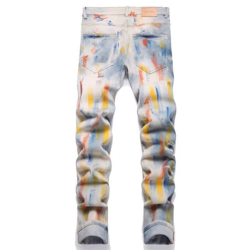 Step up your denim game with these trendy painted jeans. These jeans combine classic style with a modern, artistic touch.