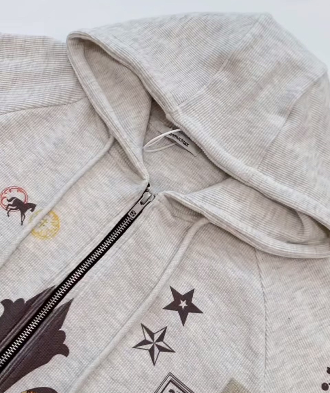 This Toomuchtax zip-up hoodie is a must-have for the fall season. Inspired by celebrity styles like Jennie, Bae Joo-hyun, and Won Bin, this hoodie features a unique graphic print and a comfortable, slightly fitted silhouette.