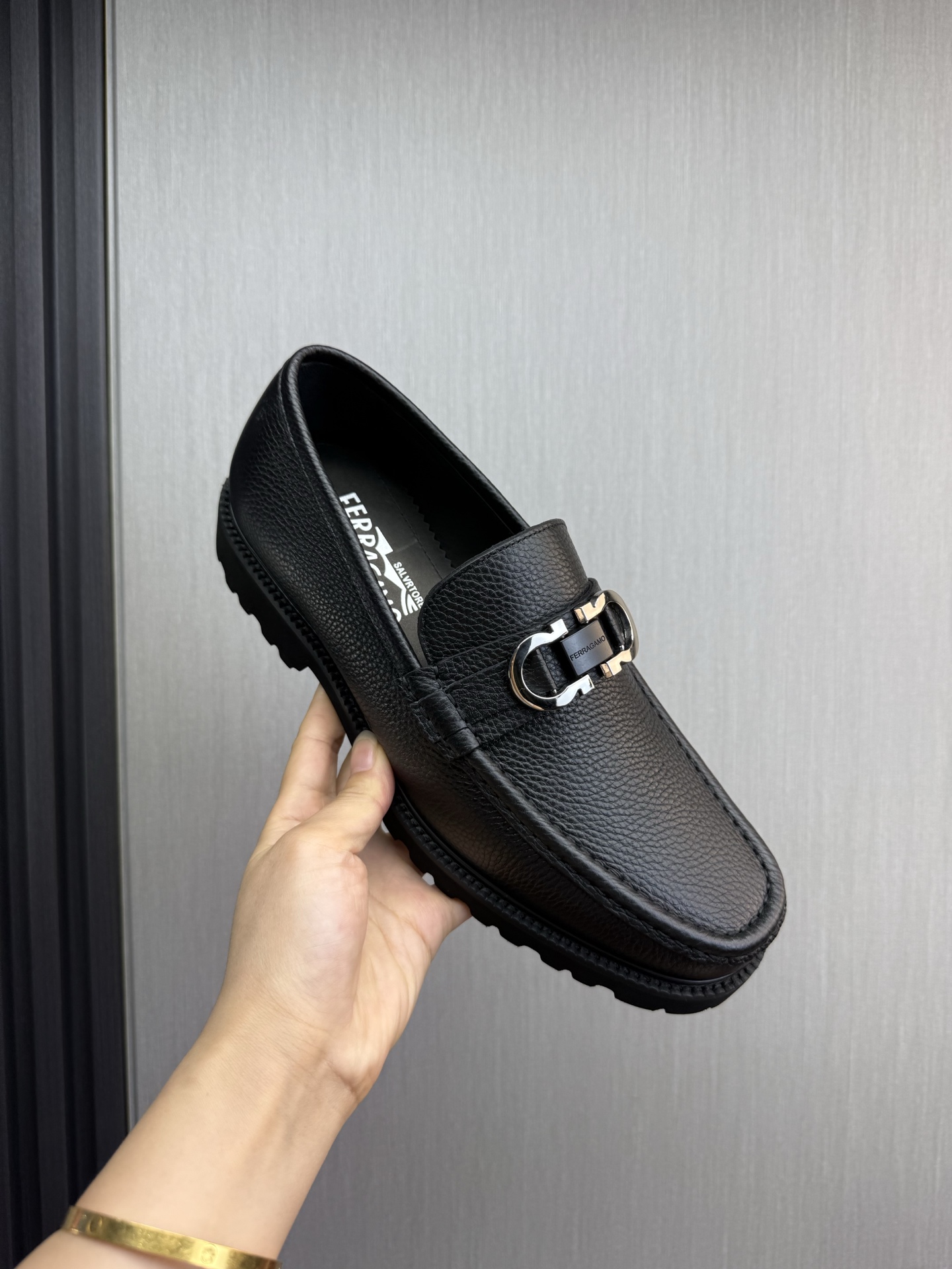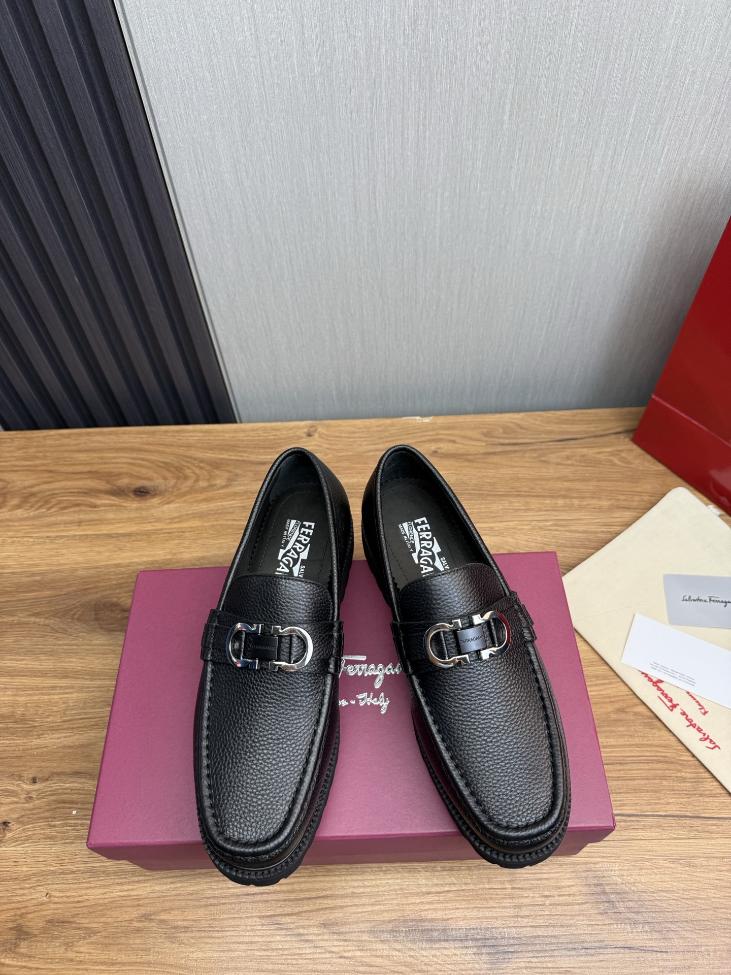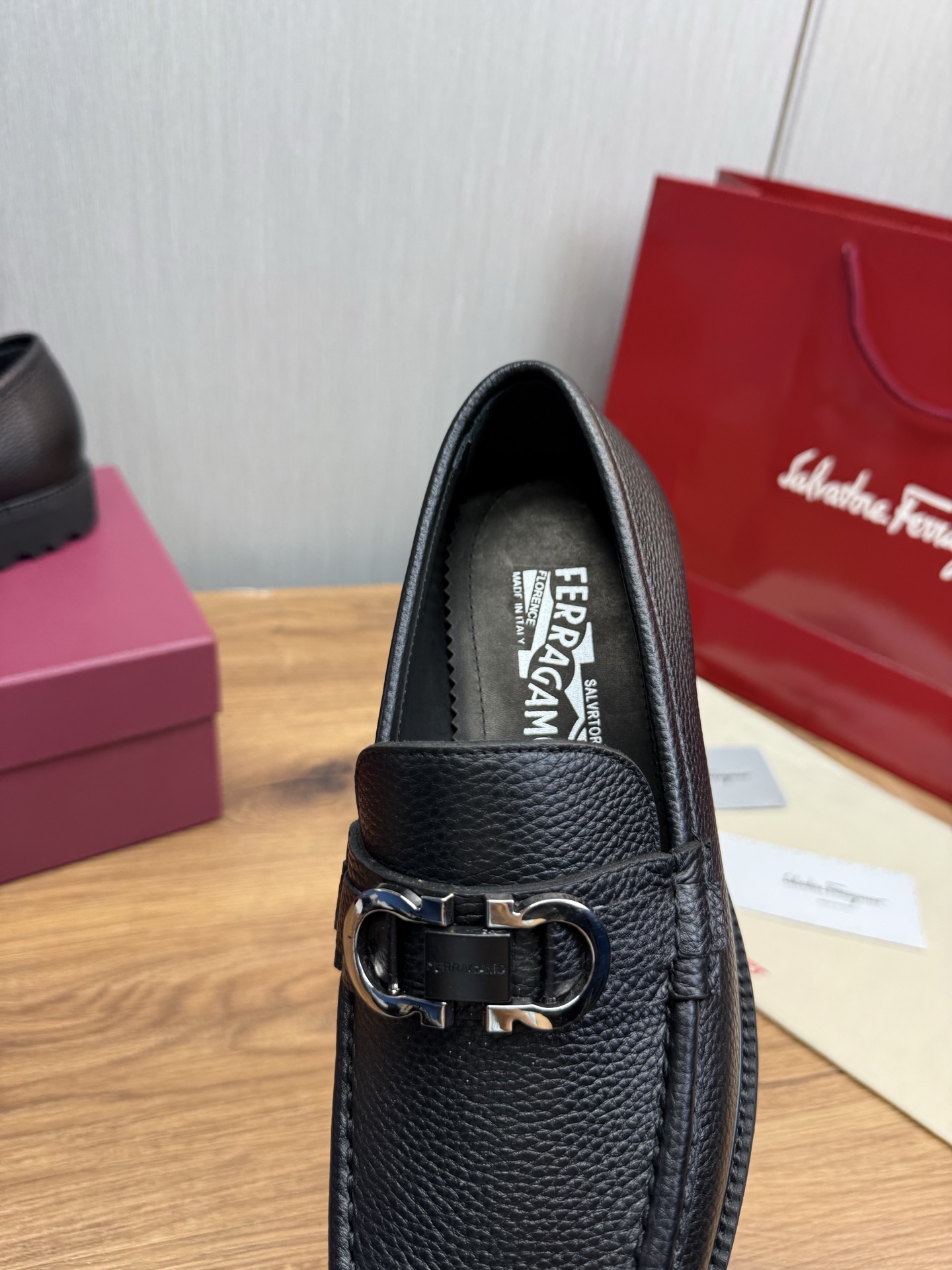 Tags: Black Leather Loafers Men, Ferragamo Leather Loafers, Luxury Leather Dress Shoes, Men's Business Casual Shoes, Slip On Leather Shoes
