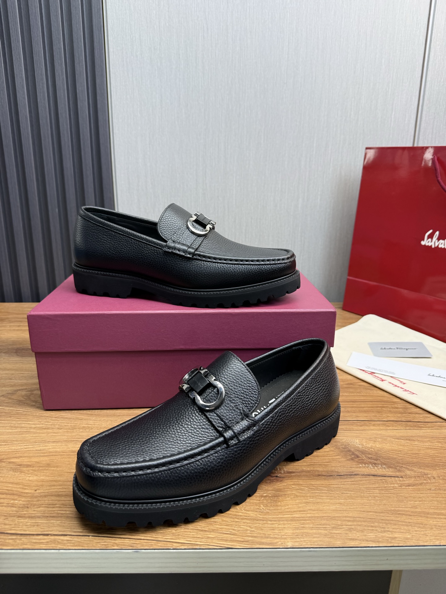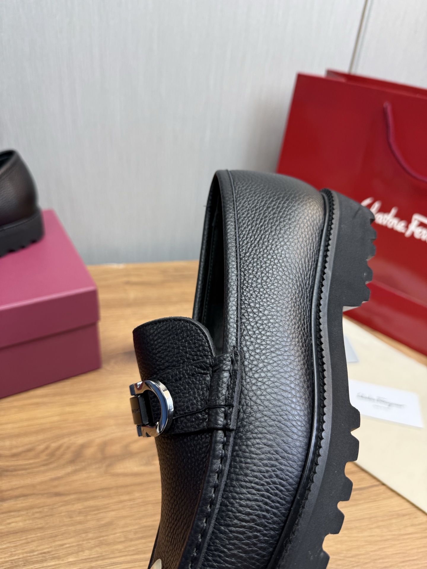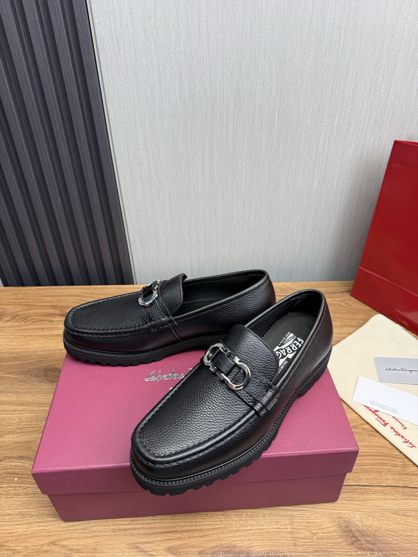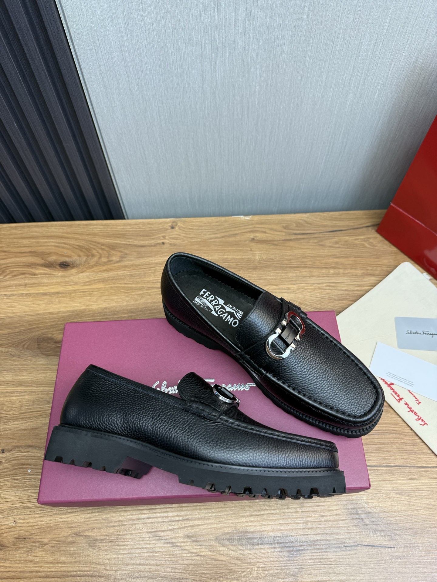 Tags: Black Leather Loafers Men, Ferragamo Leather Loafers, Luxury Leather Dress Shoes, Men's Business Casual Shoes, Slip On Leather Shoes