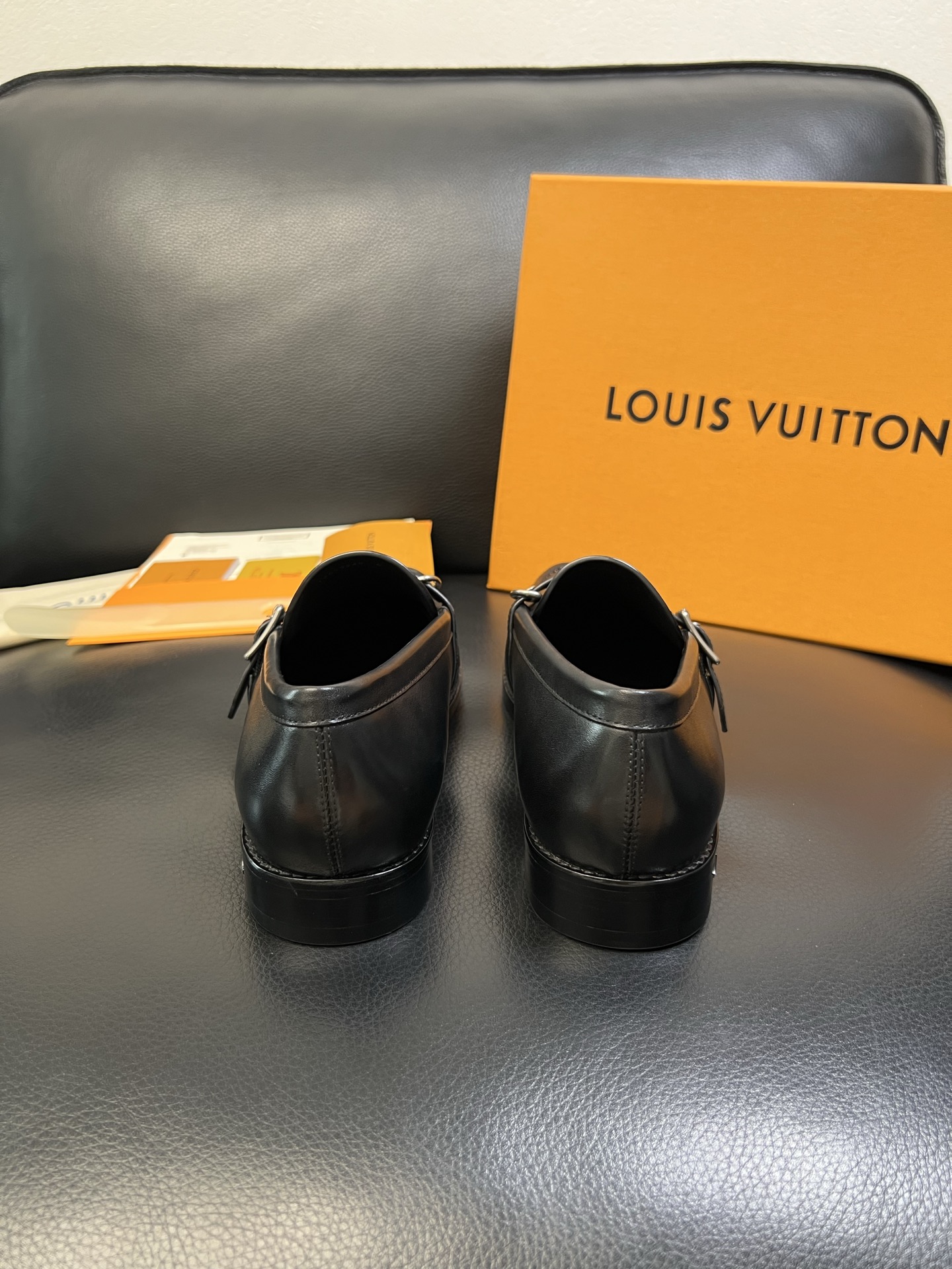 Experience the ultimate in style and comfort with these Louis Vuitton leather loafers. Elevate your everyday look with a touch of luxury.