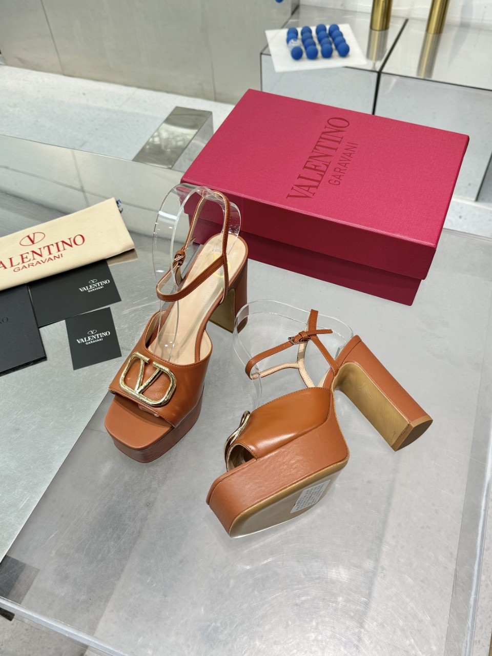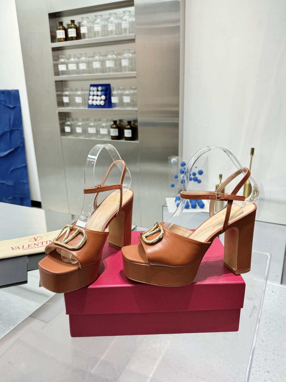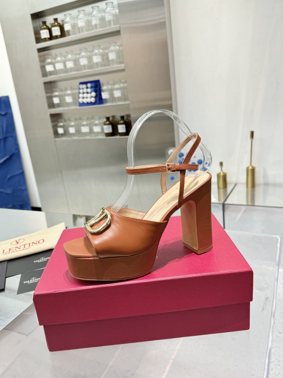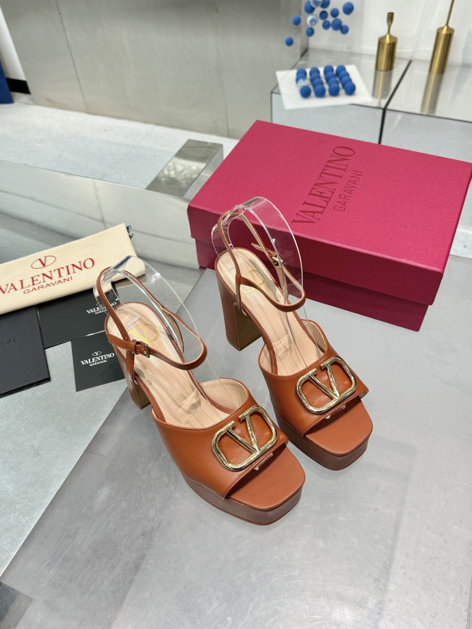 Valentino 2025SS Metal Logo High Platform Sandals,Italian Leather, Size 35-41