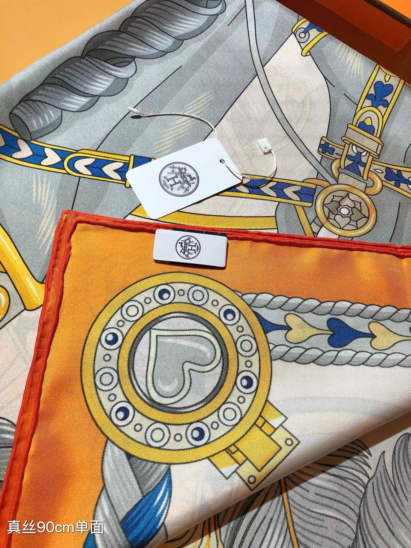 🌼SHMS2490🌼Original Hermès [Sweet Saddle] 90cm Silk Square Scarf👍 A print created in 1804, Daiske Nomura injected a touch of knightly romance into it. Two centuries later, the loving horse put on the heart-shaped saddle and bridle, dressed up, and hurried to the tender date. Made of twill silk + hand-curled cutting-edge technology, it is soft, light and easy to wear. Can be used all year round‼ ️Quantities are limited, place your order early💟【Specifications of this model: 90x90cm 100% twill silk】