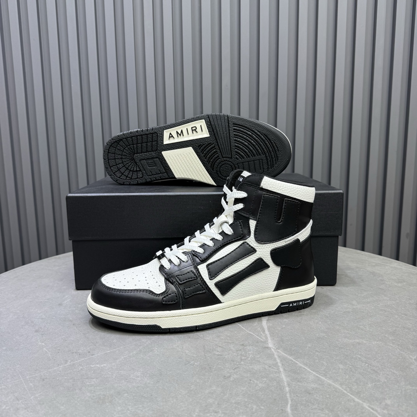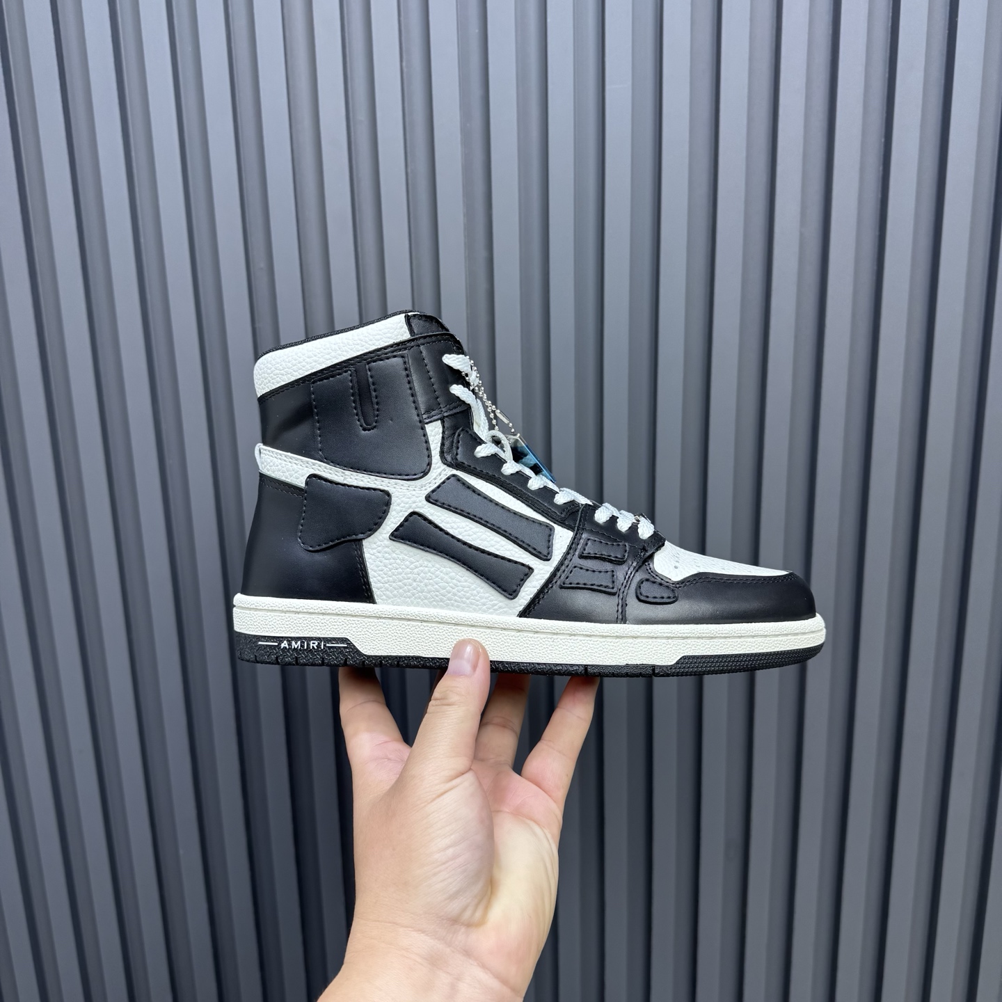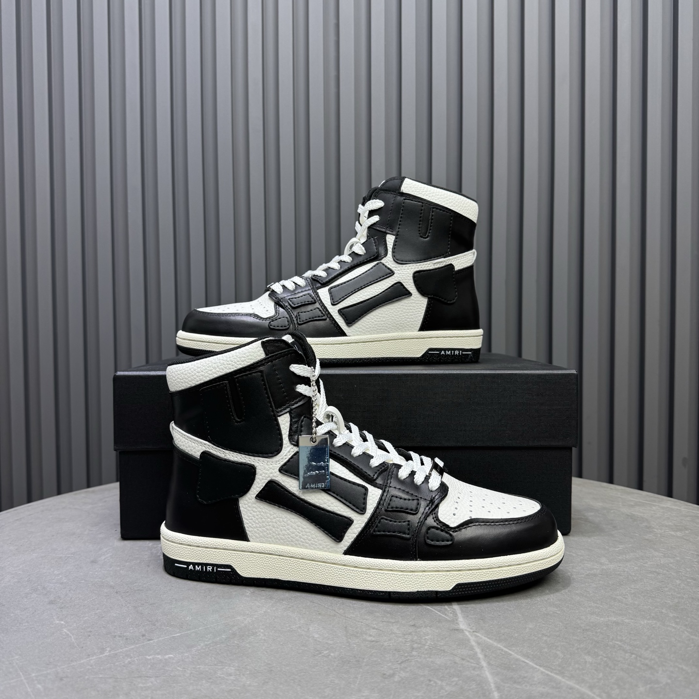 Amiri Skel Top High Sneakers - Black & White Leather Designer Shoes