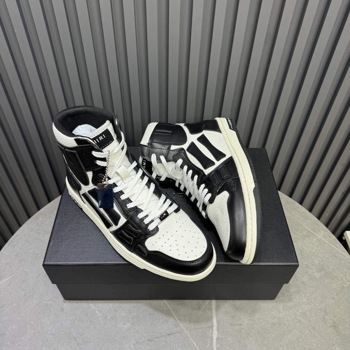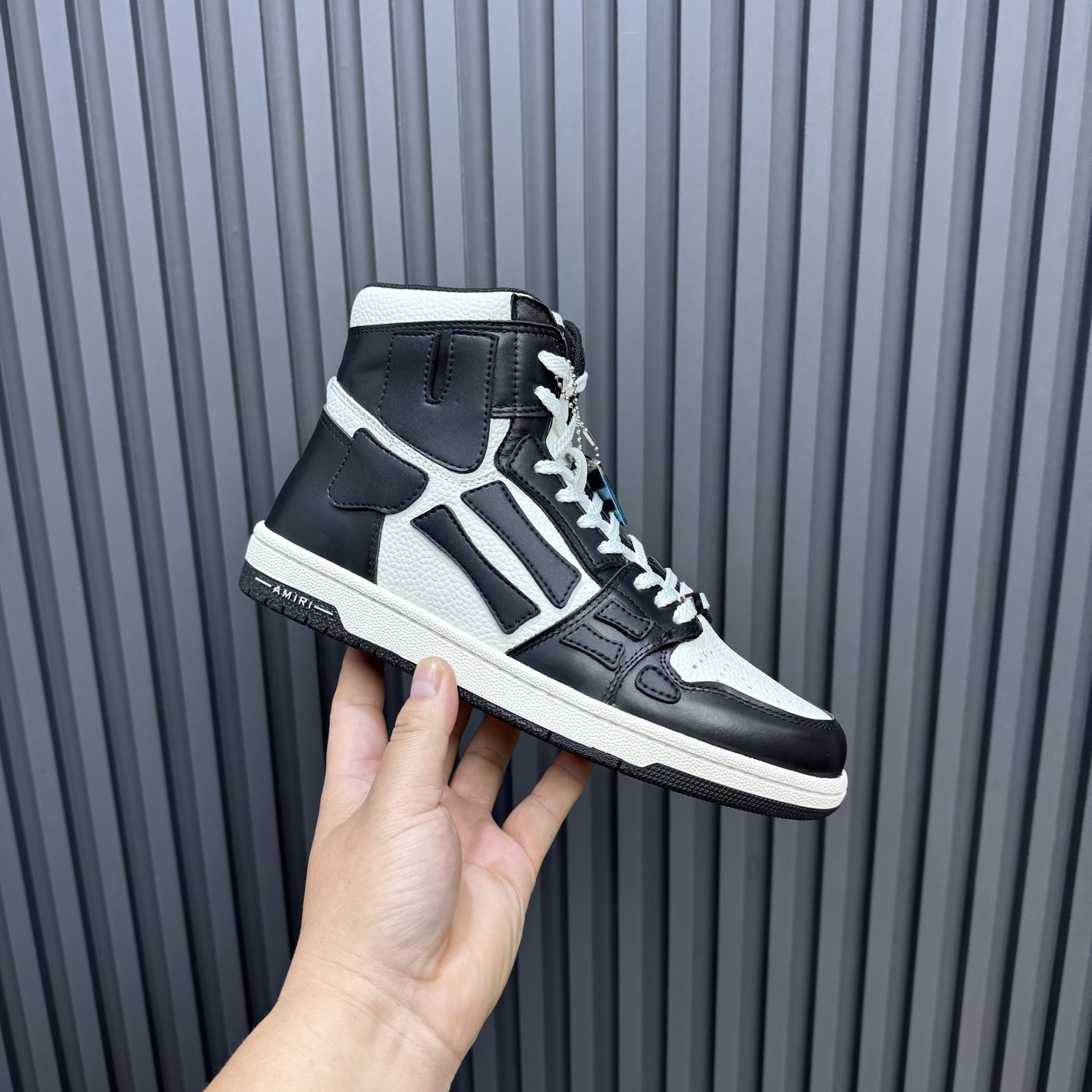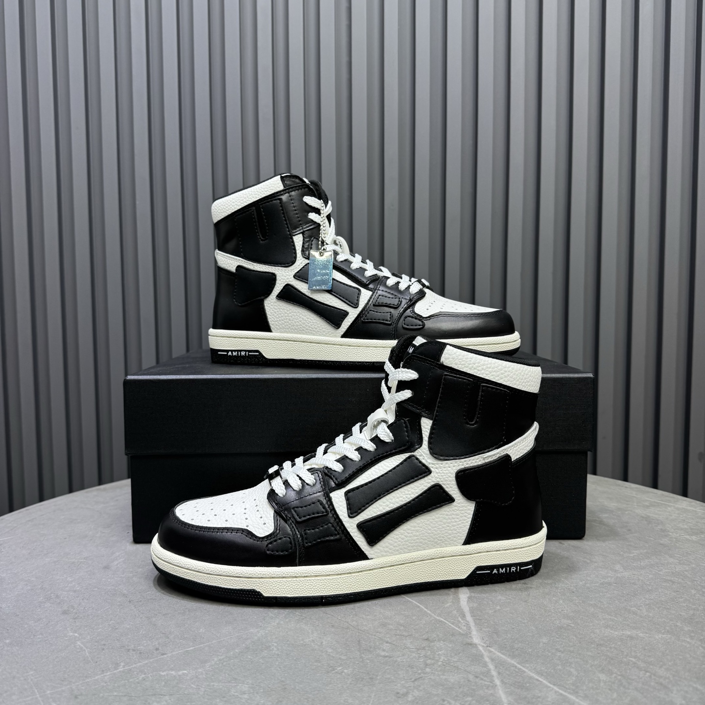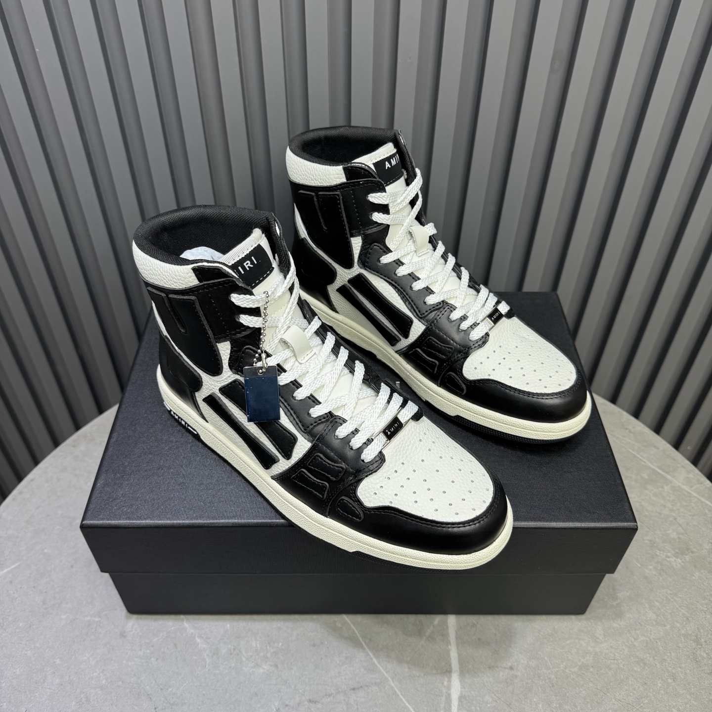 Amiri Skel Top High Sneakers - Black & White Leather Designer Shoes