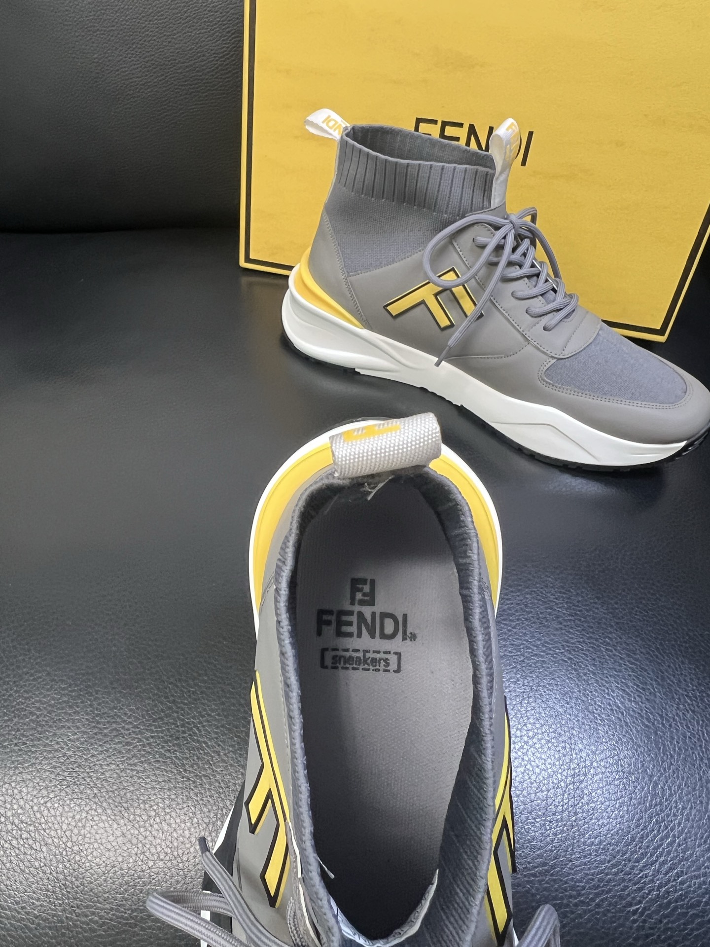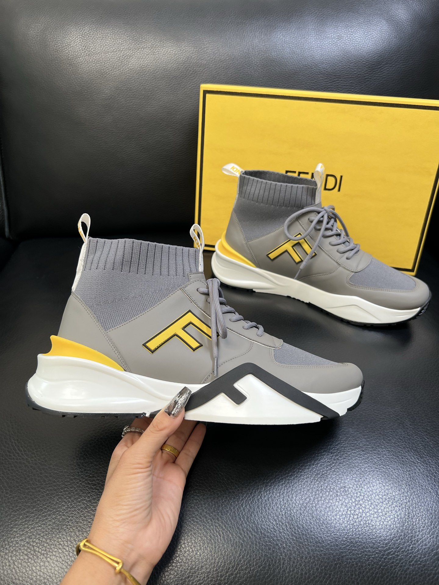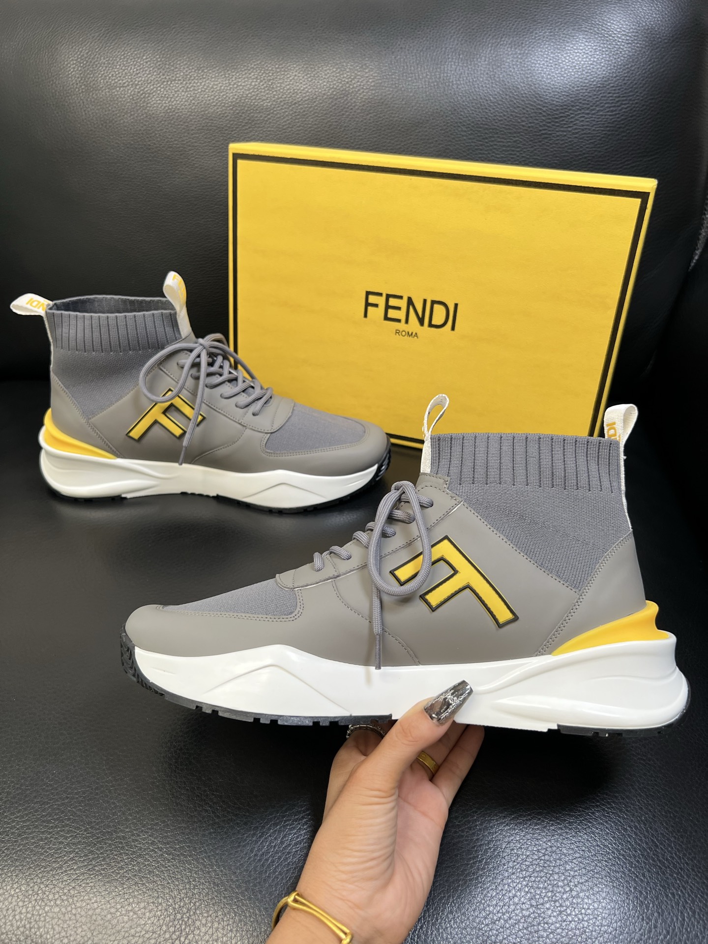 - Stylish high-top design with signature Fendi detailing