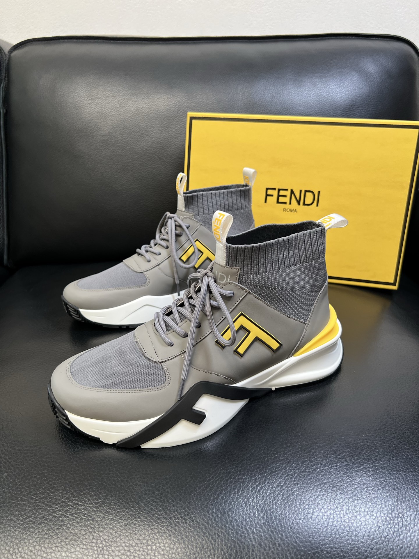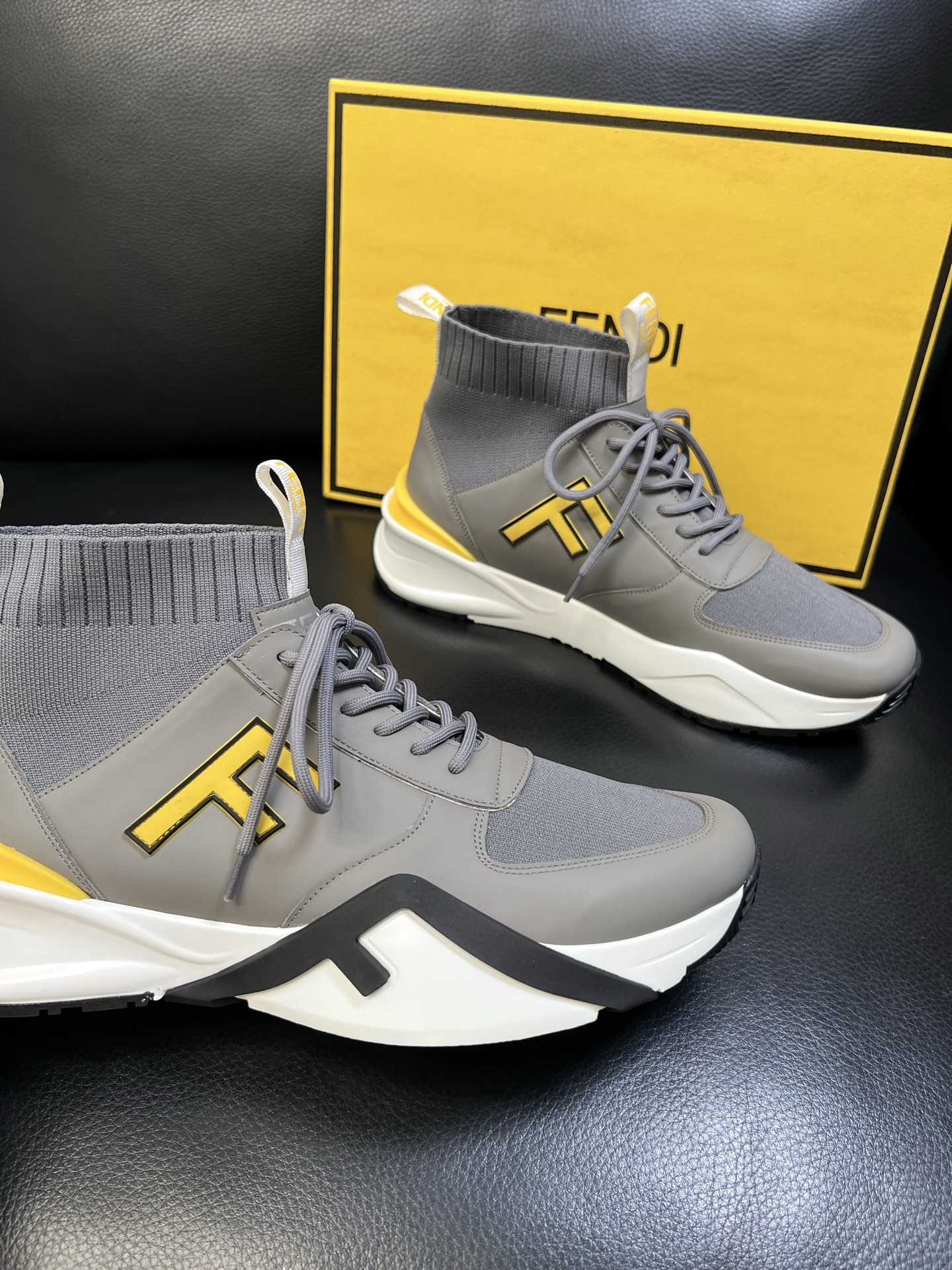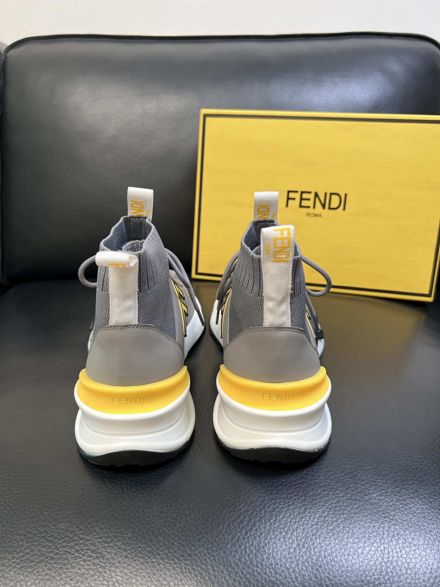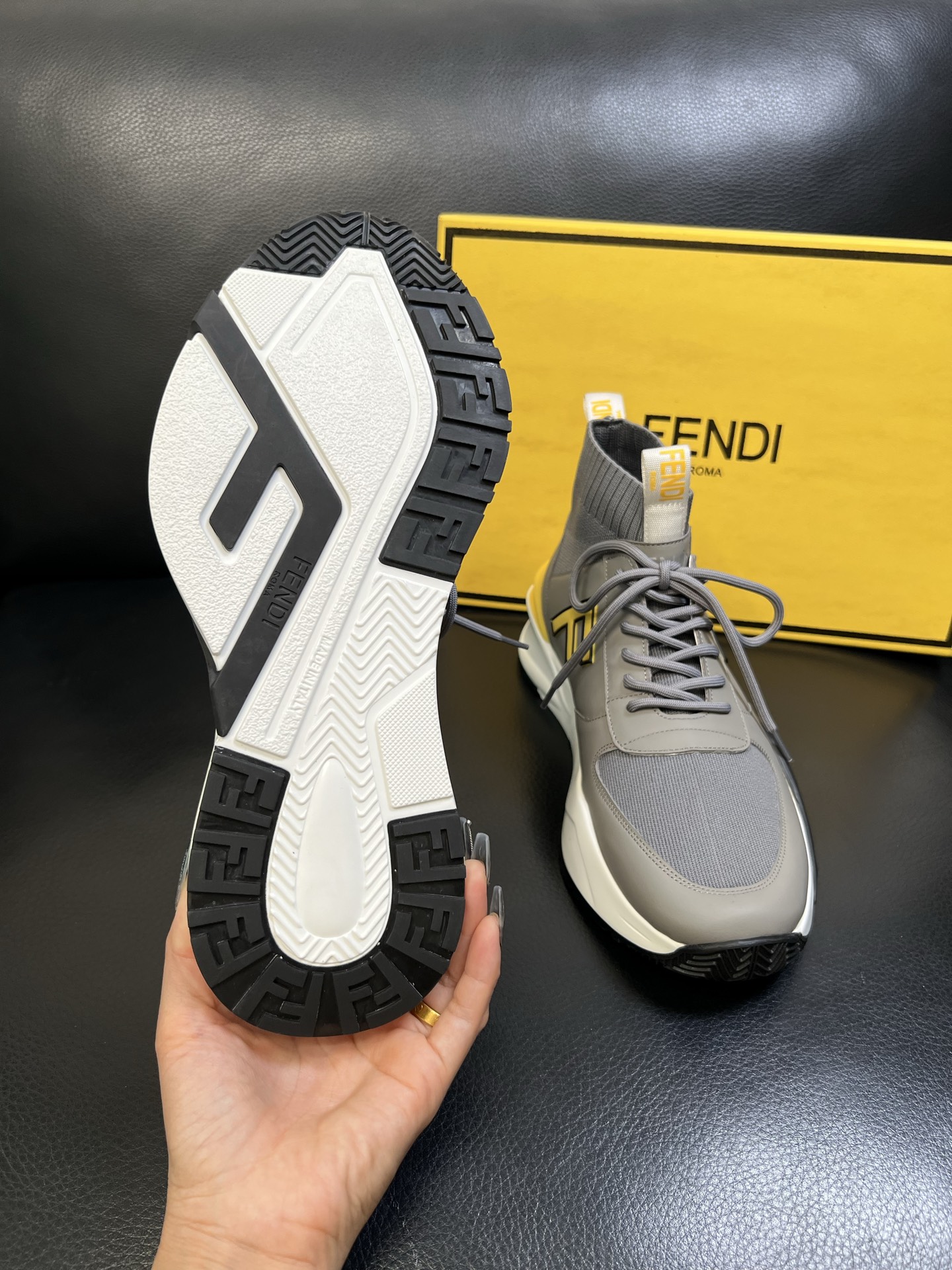 - Stylish high-top design with signature Fendi detailing