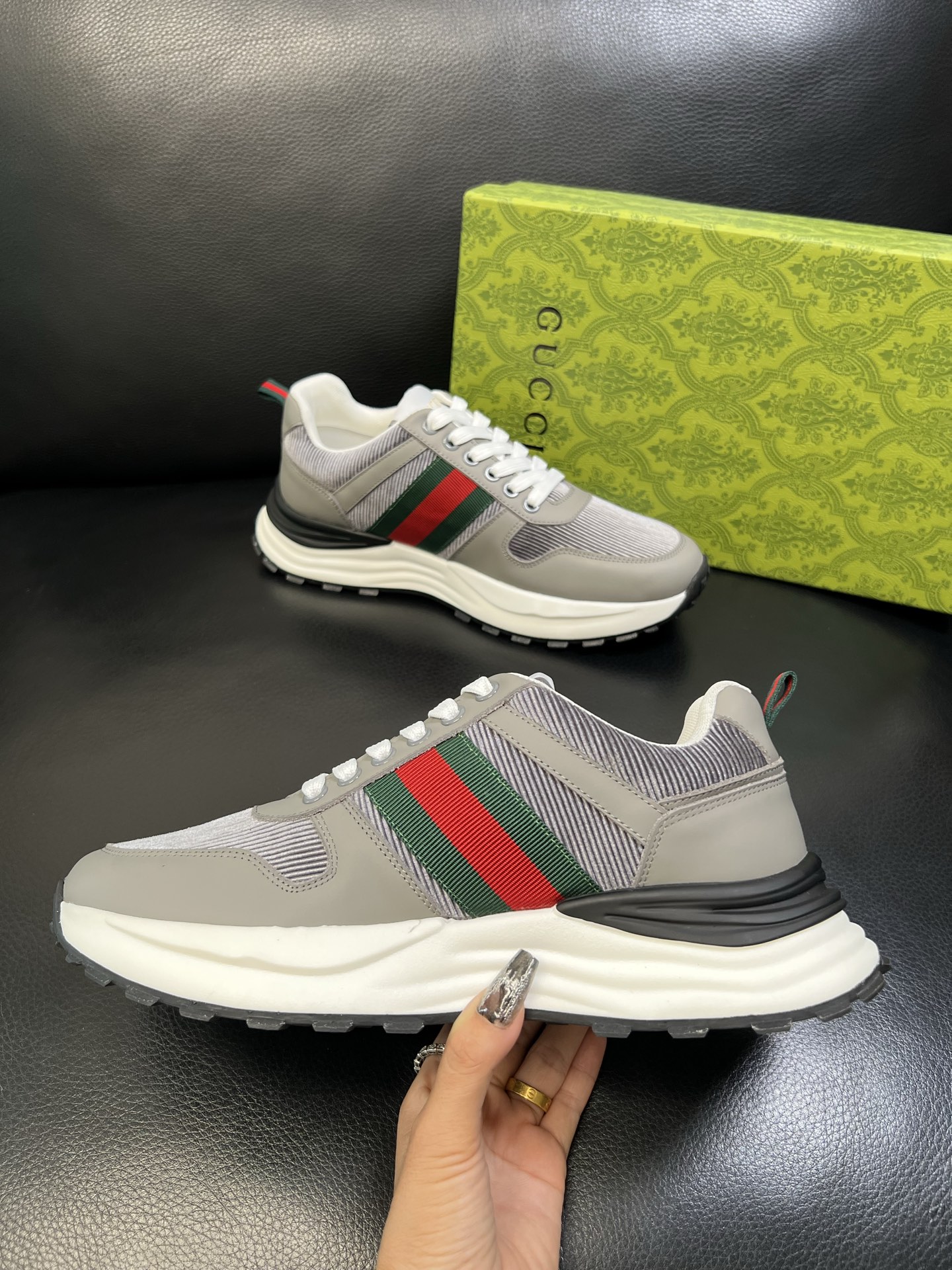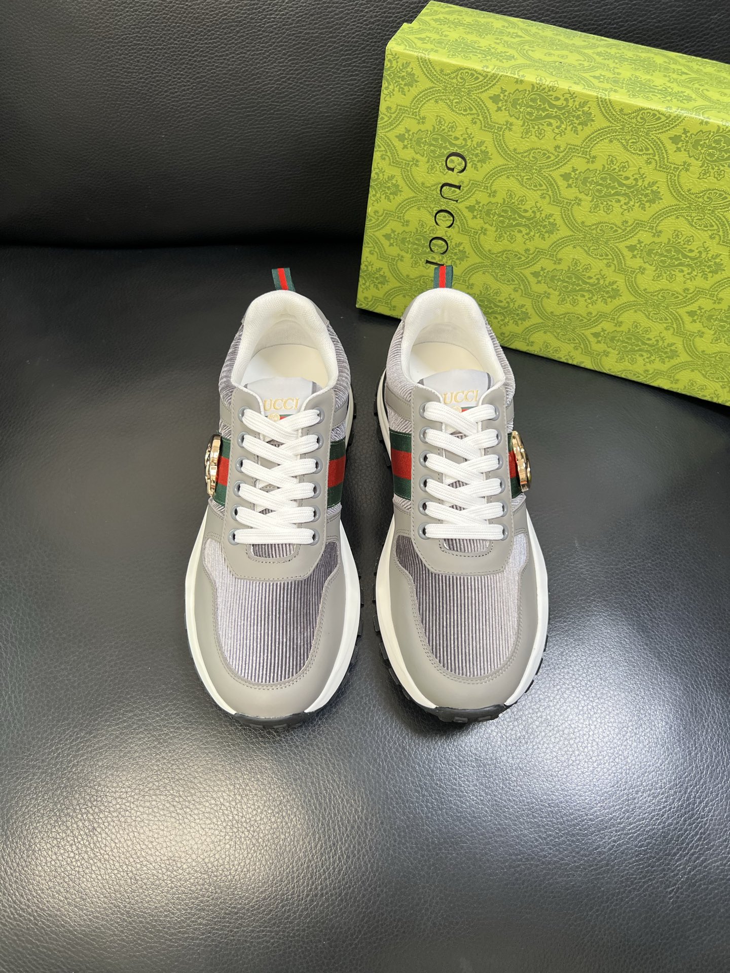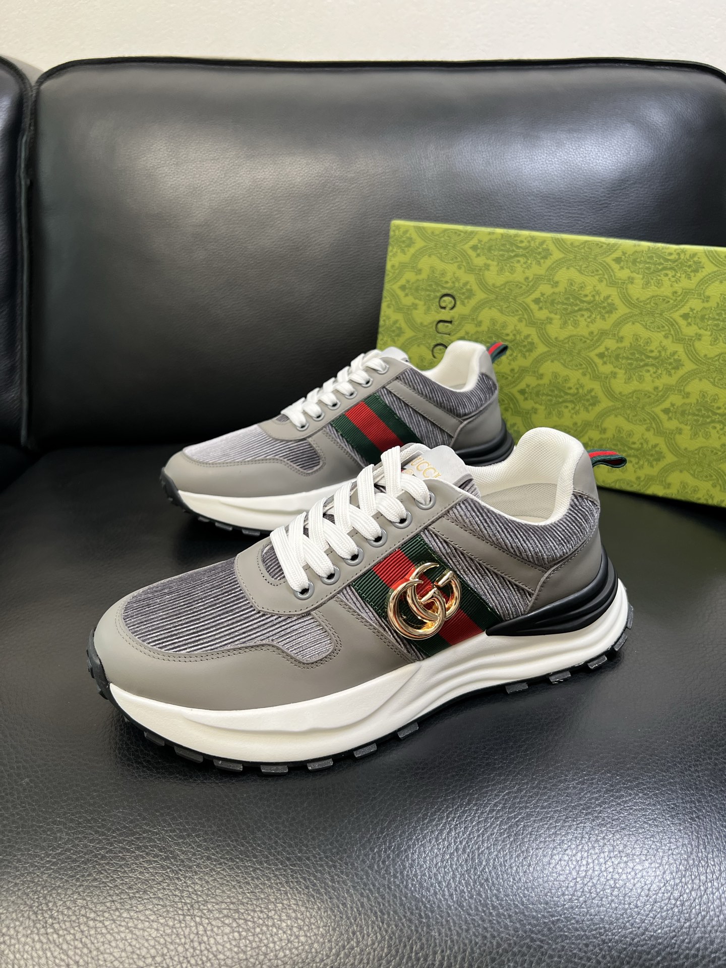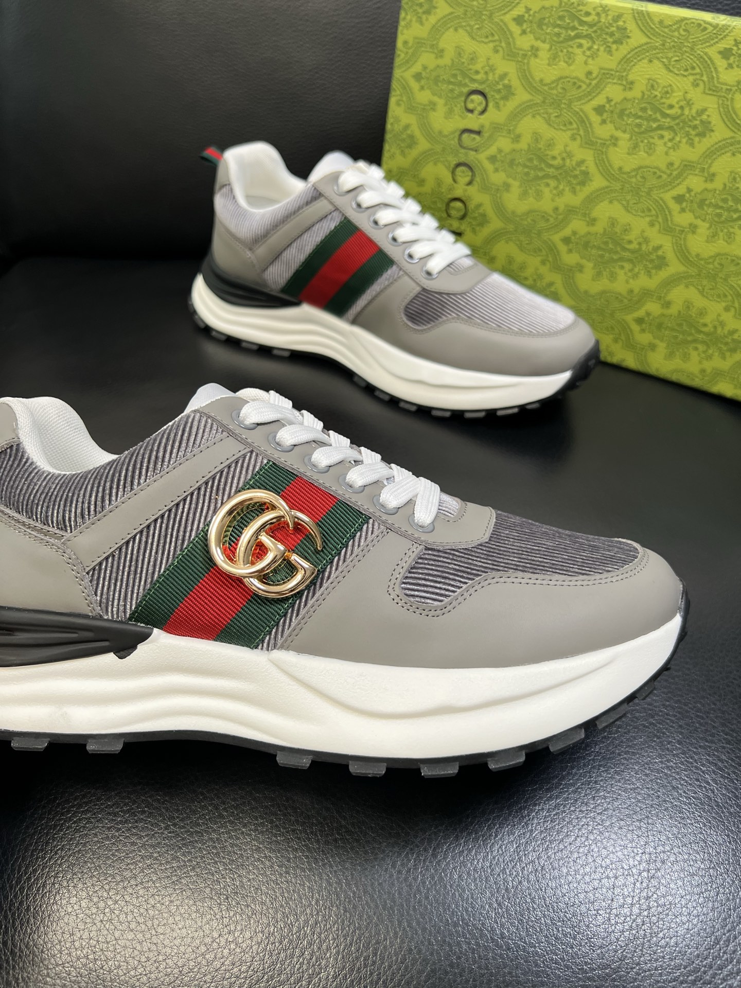 Gucci Men's Gray Leather & Fabric Sneakers with Iconic GG Logo Size 39-44