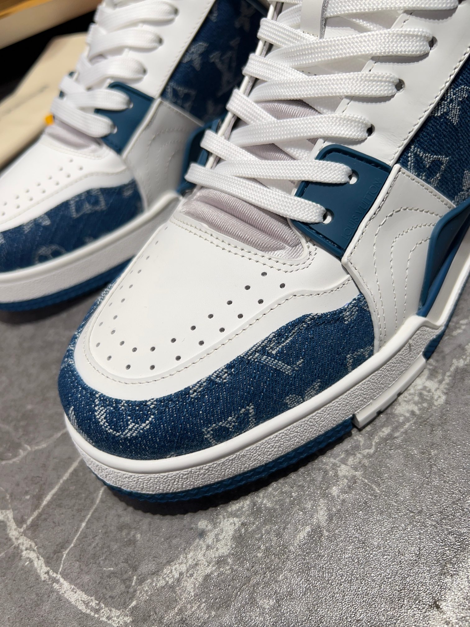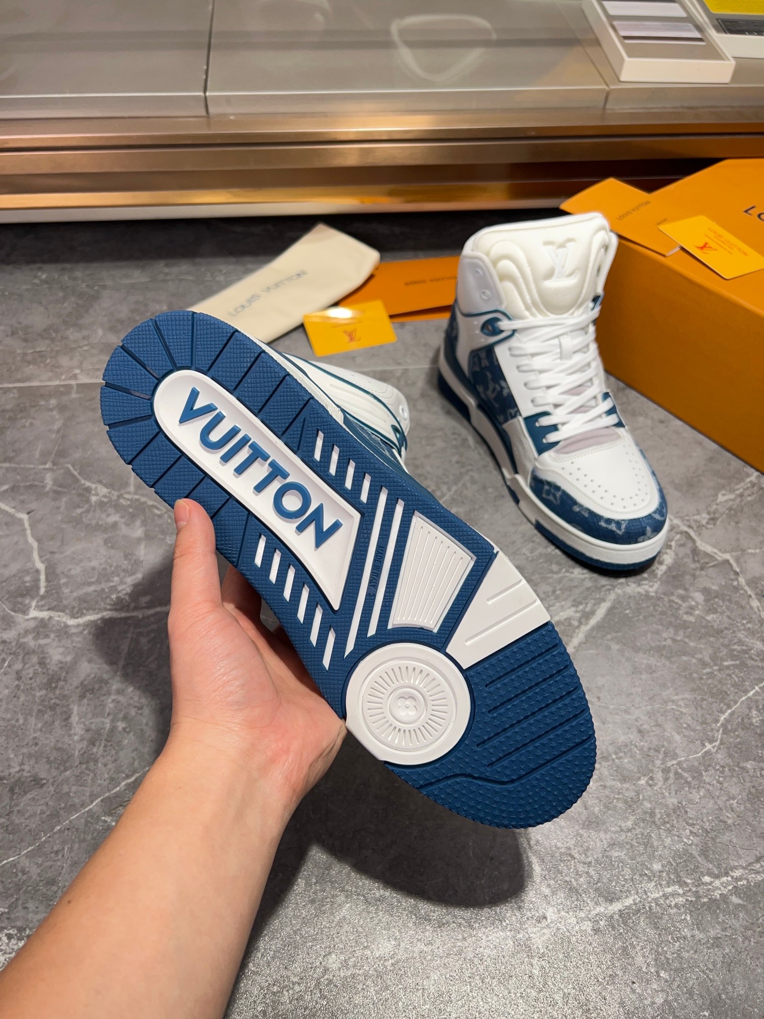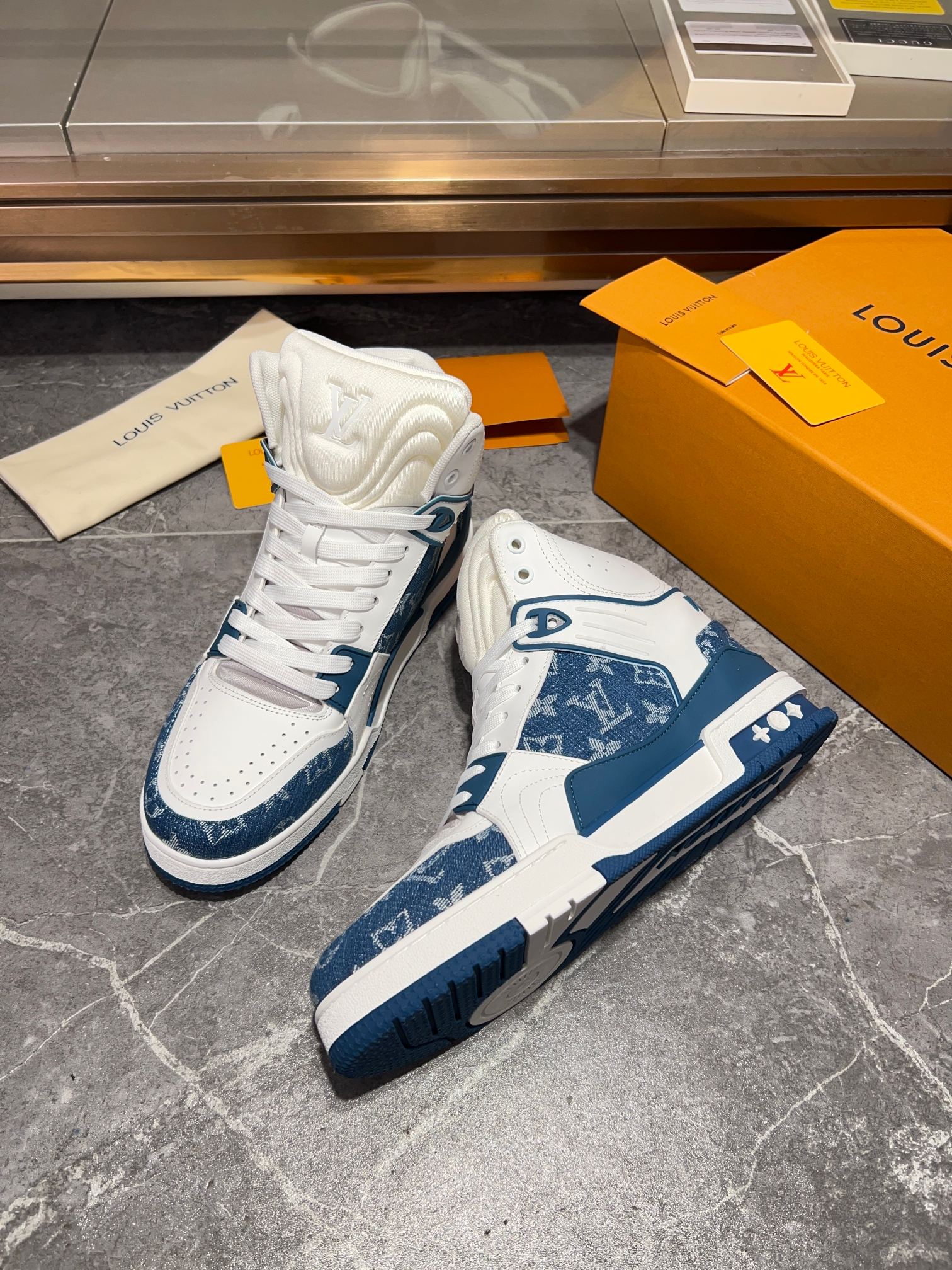 These Louis Vuitton high-top sneakers are a blend of luxury and casual style, perfect for the modern man.