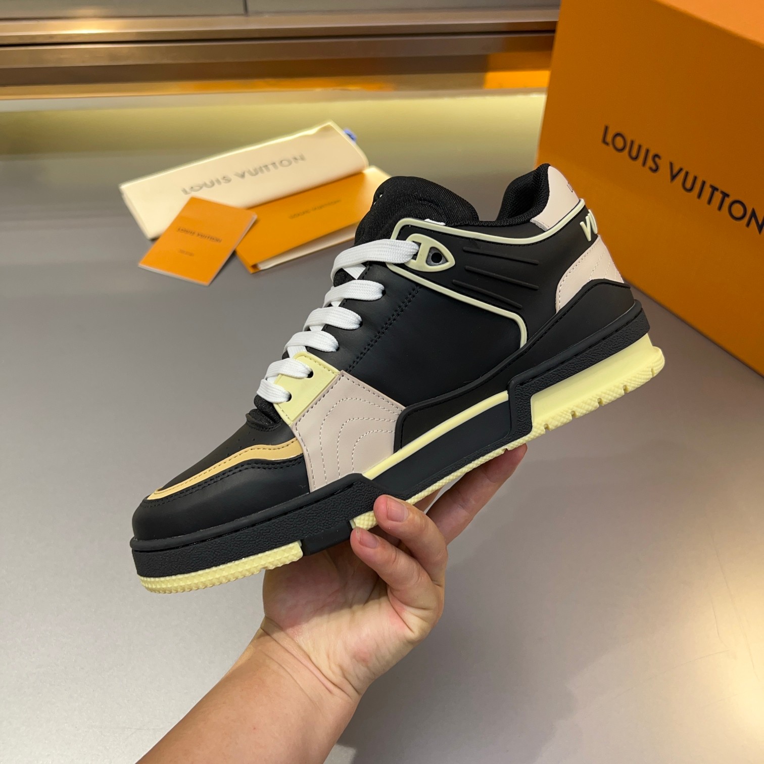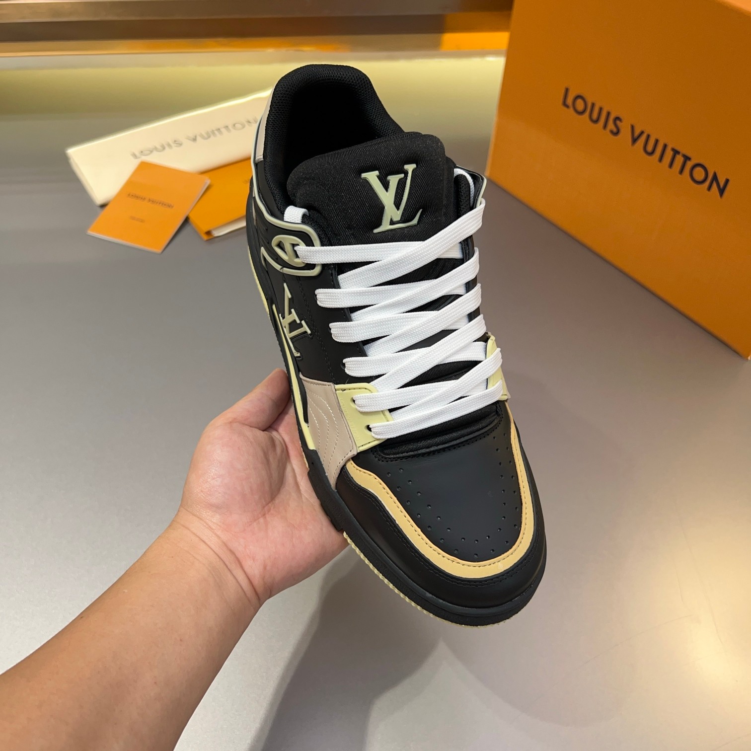 Tags: Designer Sneakers, Leather Sneakers, Louis Vuitton Trainer, Luxury Footwear, Monogram Sneakers