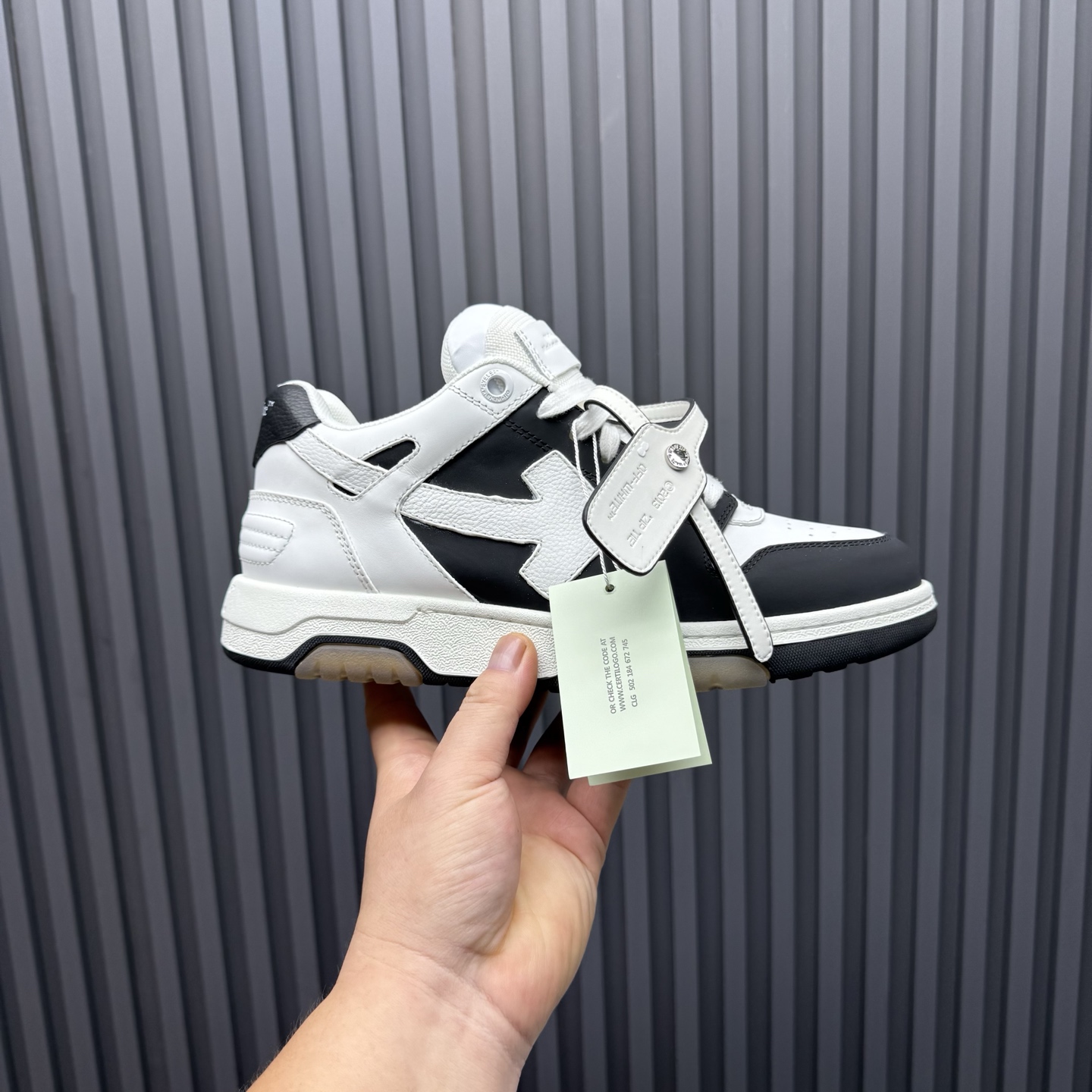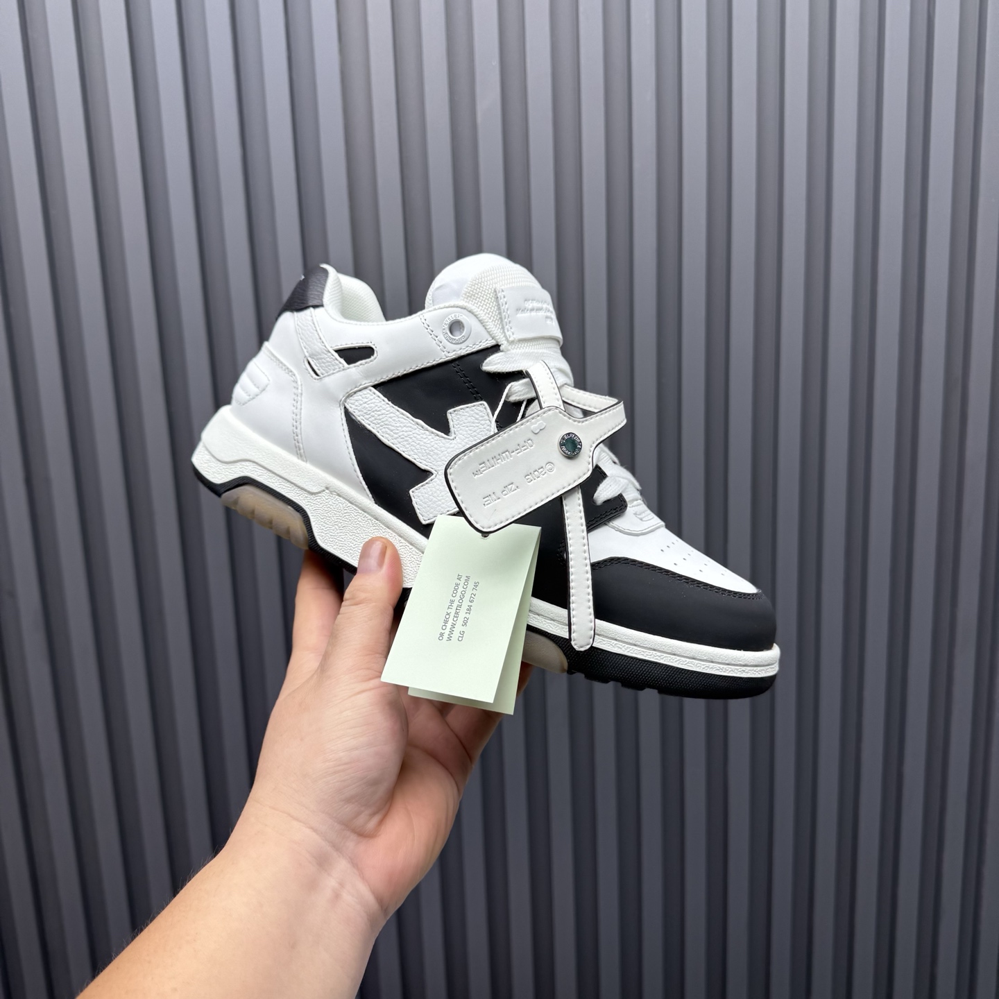 - Signature Off-White arrow detailing on the side.