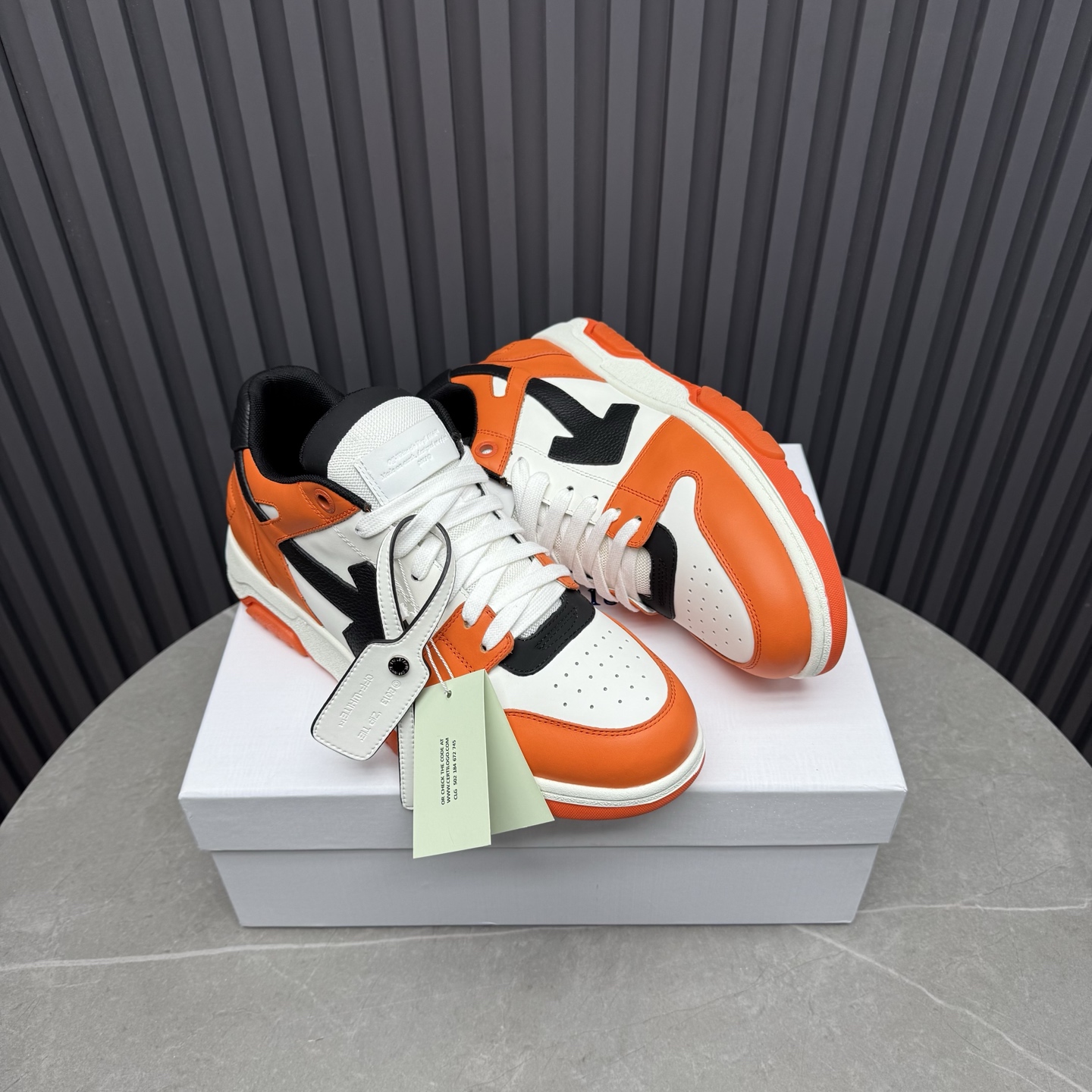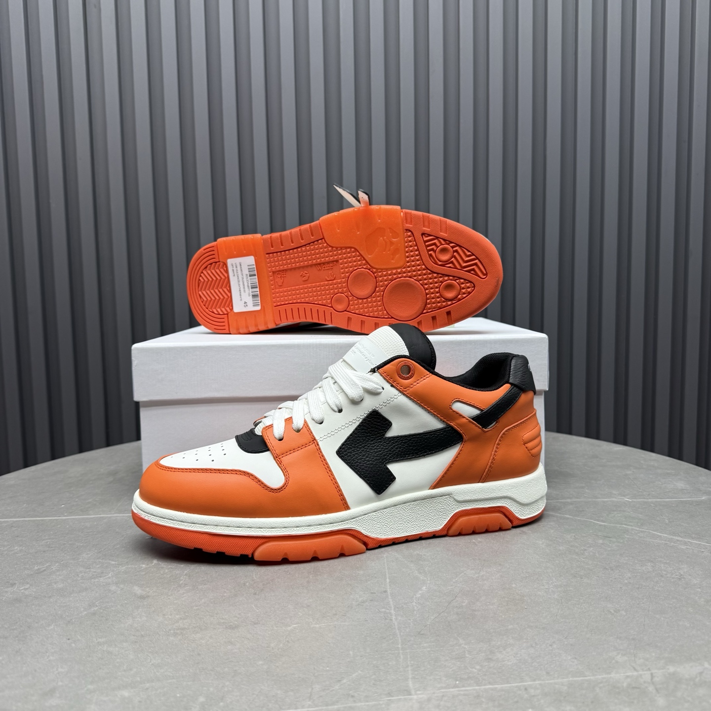 Tags: Casual Sneakers, Designer Sneakers, Leather Sneakers, Off-White Sneakers, Orange Sneakers, Out Of Office Shoes