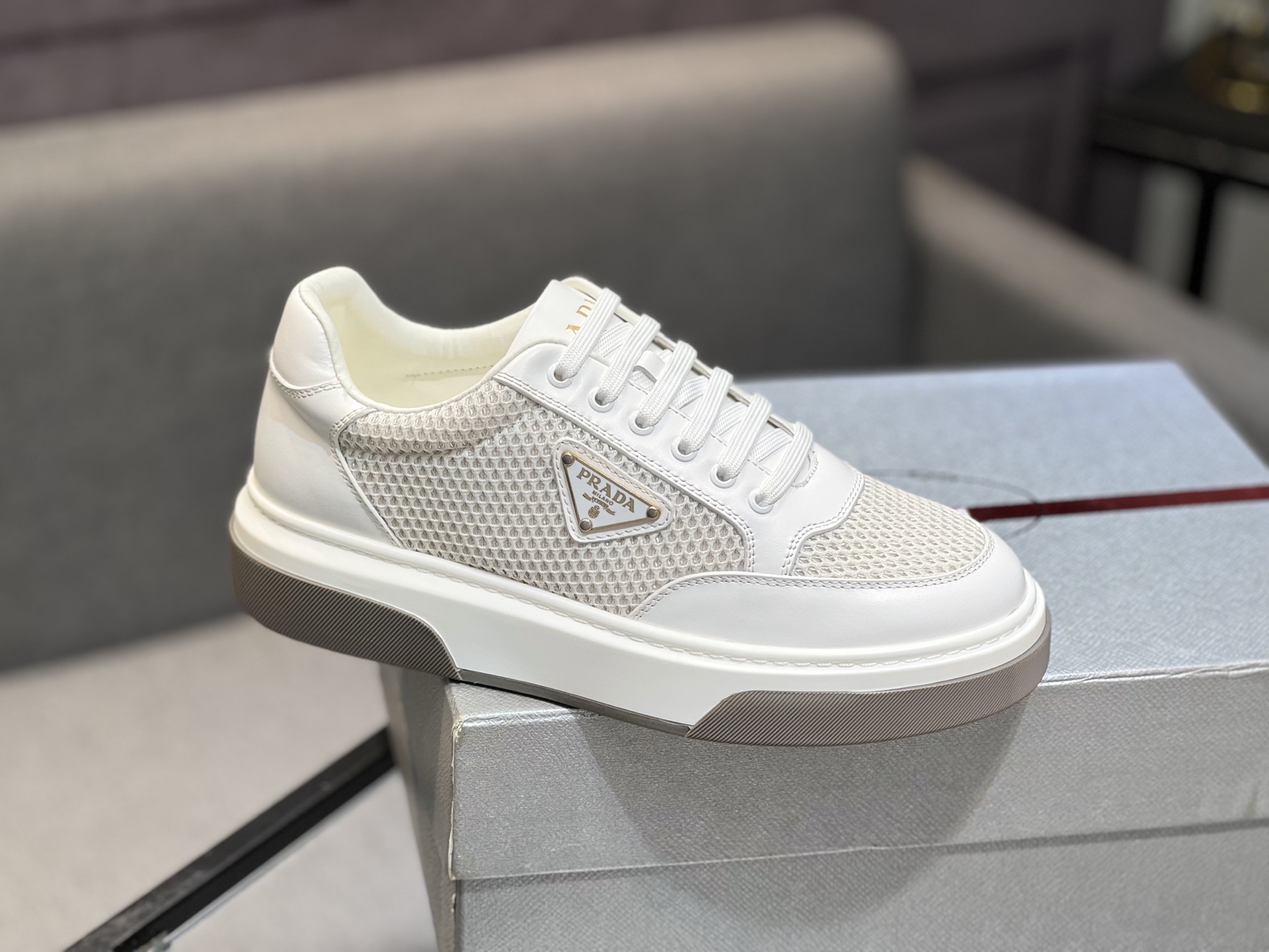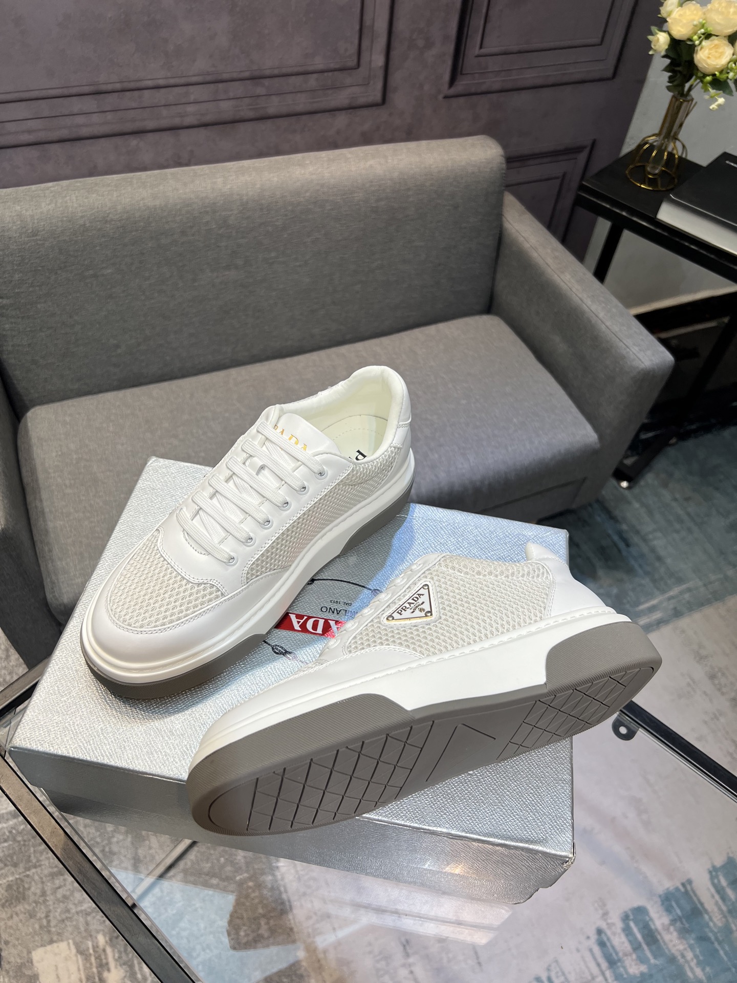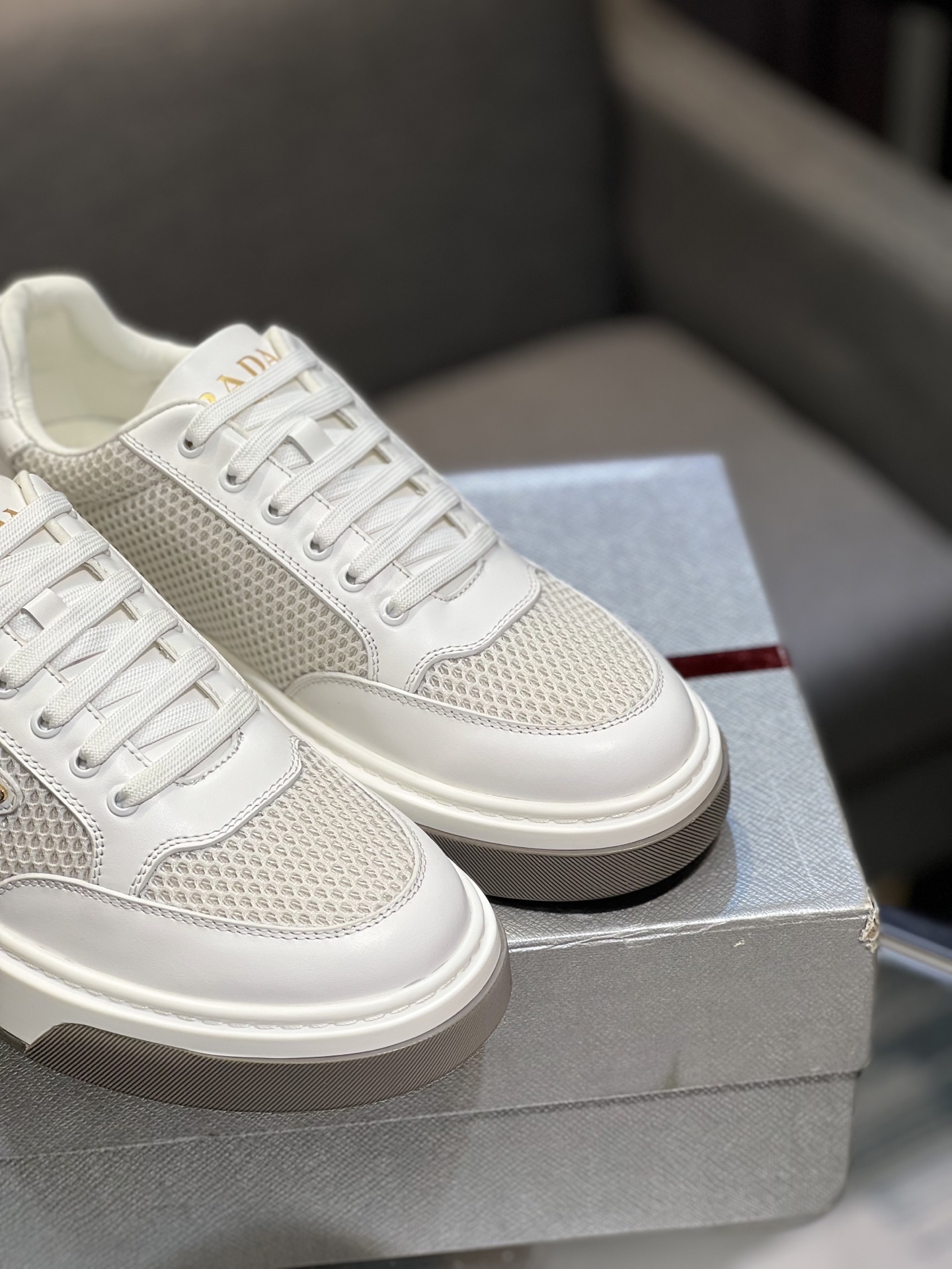 Tags: Breathable Sneakers Men, Designer Men Footwear, Mesh Low Top Shoes, Prada Men Sneakers, White Leather Sneakers