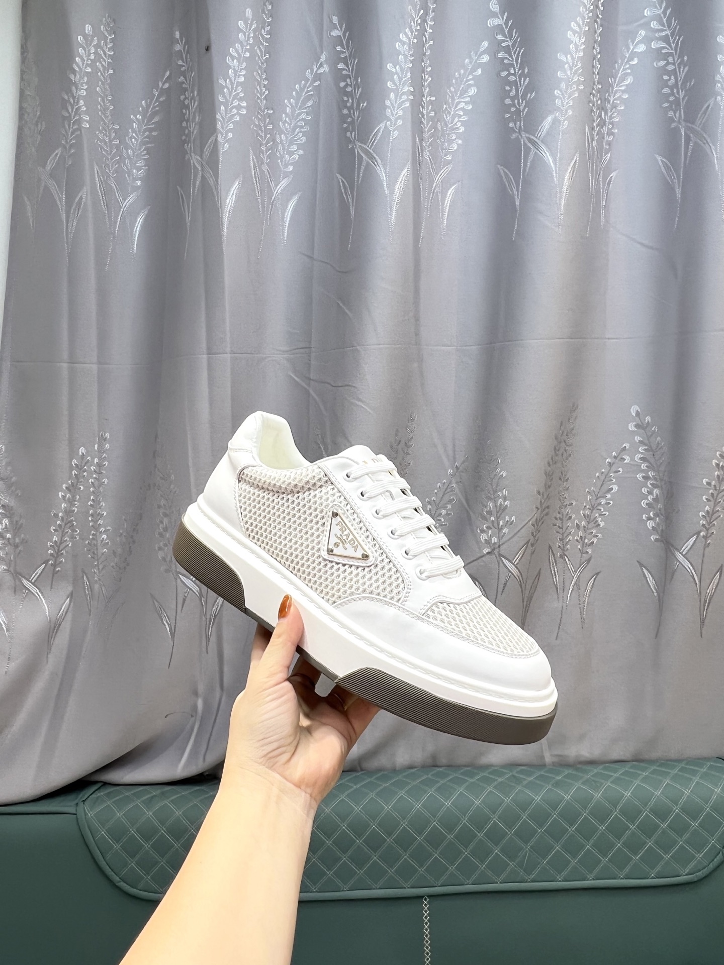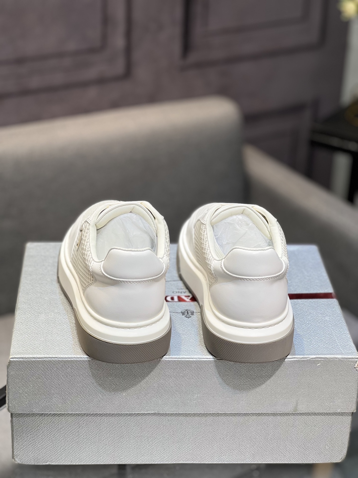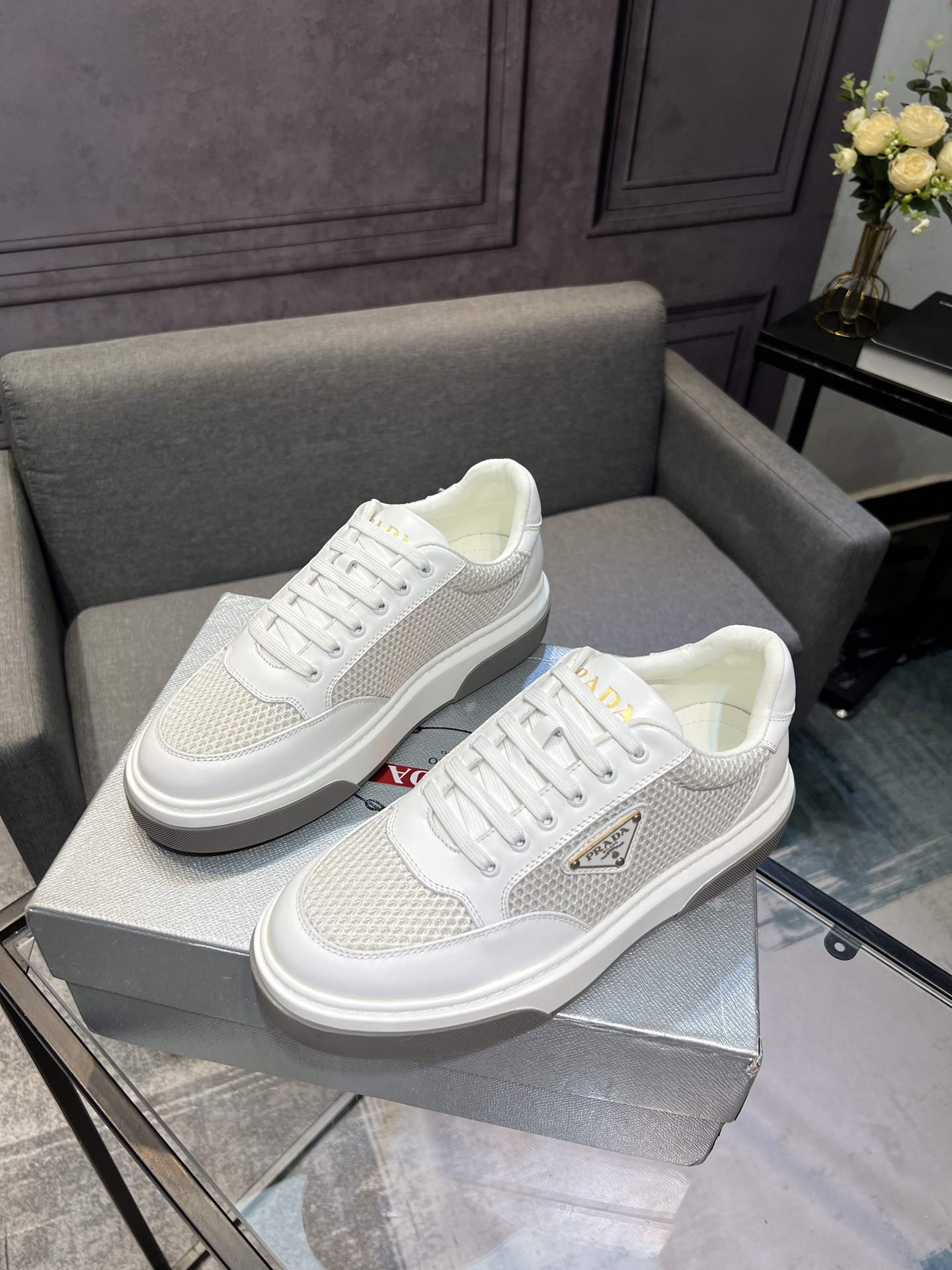 Tags: Breathable Sneakers Men, Designer Men Footwear, Mesh Low Top Shoes, Prada Men Sneakers, White Leather Sneakers